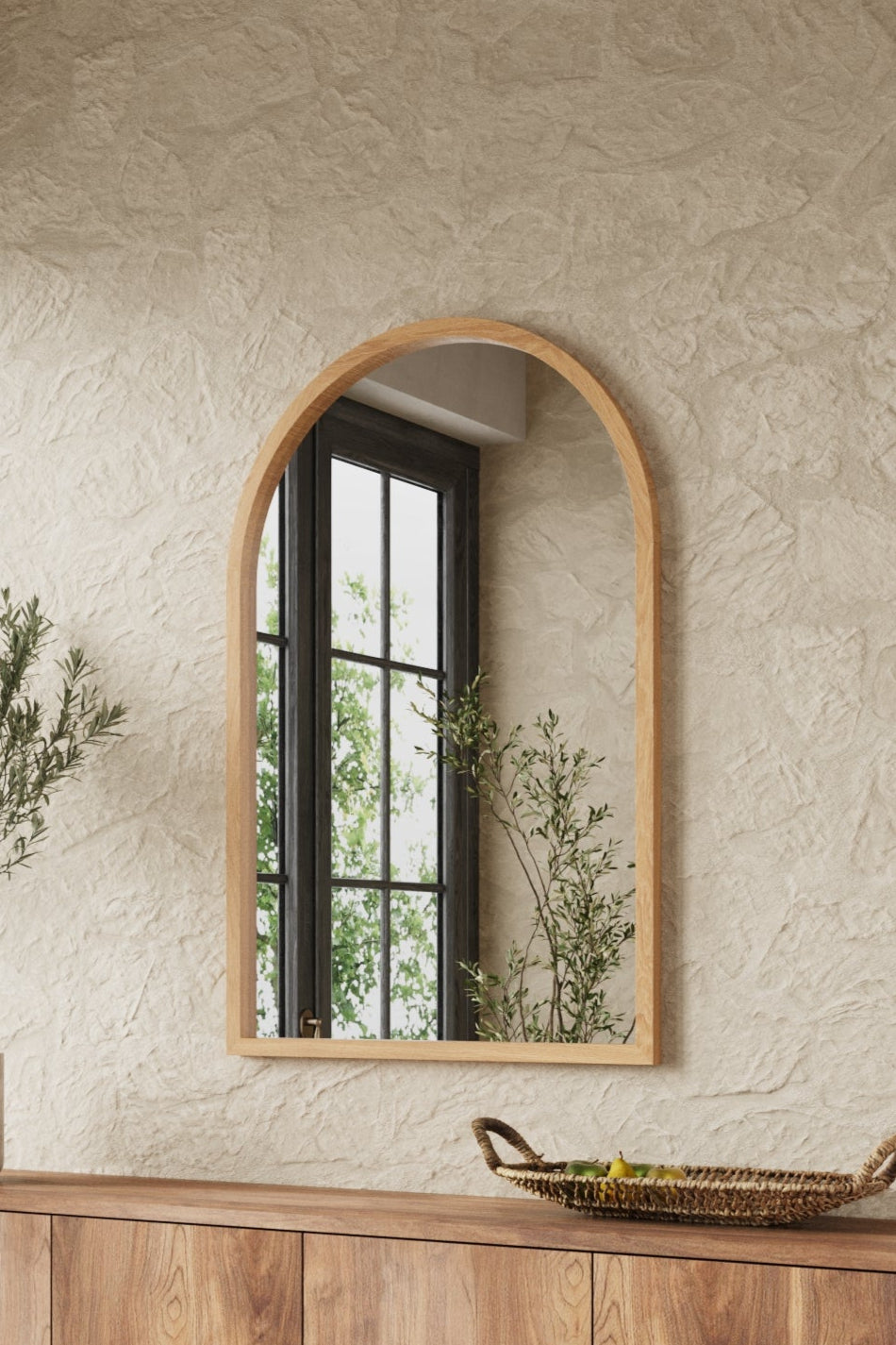 Eleanor Light Wood Arch Wall Mirror (90x60CM)
