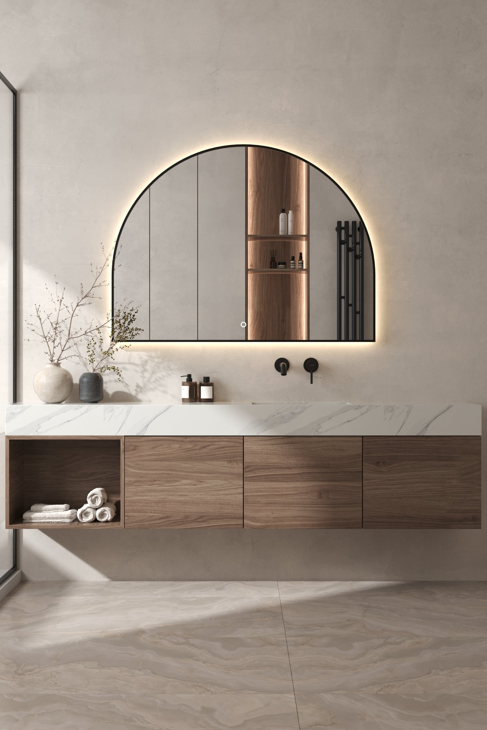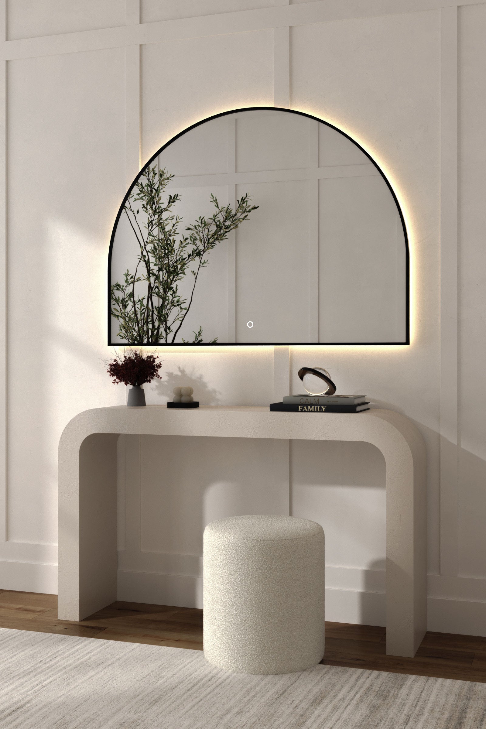 Bring timeless elegance and contemporary function to your bathroom with our Black Arched Backlit Mirror. Designed with a sleek black frame and a graceful arch, this mirror exudes minimalist sophistication. The built-in LED backlighting softly illuminates your space, offering a warm glow that’s perfect for morning routines or evening relaxation. Ideal for both modern and classic interiors, the mirror seamlessly mounts above any vanity, enhancing the ambiance with its subtle luminance. Crafted with premium materials for durability and style, it’s a statement piece that blends functionality with refined aesthetics. Whether for a master bath or guest powder room, this mirror adds a designer flair that transforms your daily rituals.