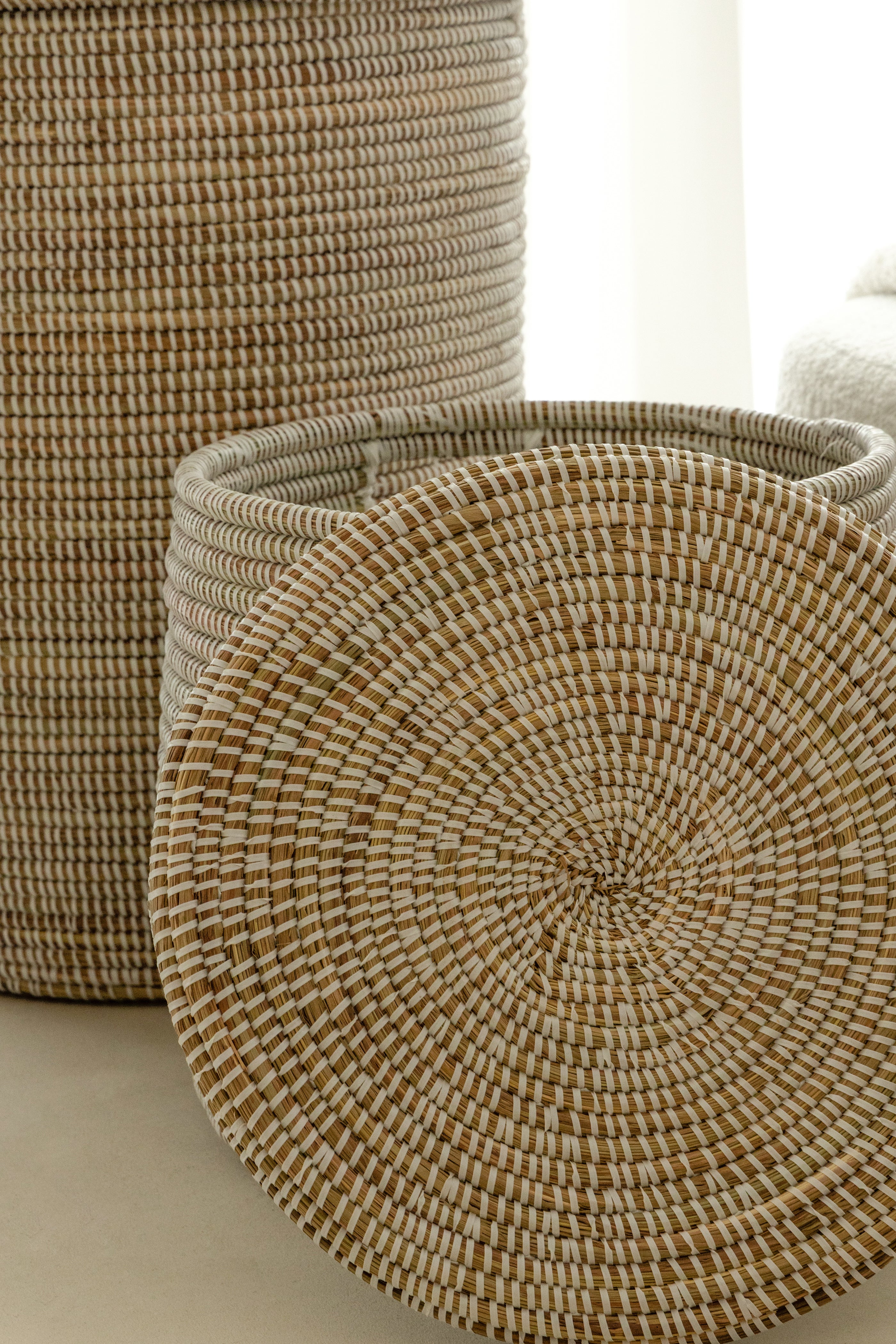 These baskets are handwoven by a group of women living in villages in Senegal. Made out of dried local grass and eco friendly PP plastic.
