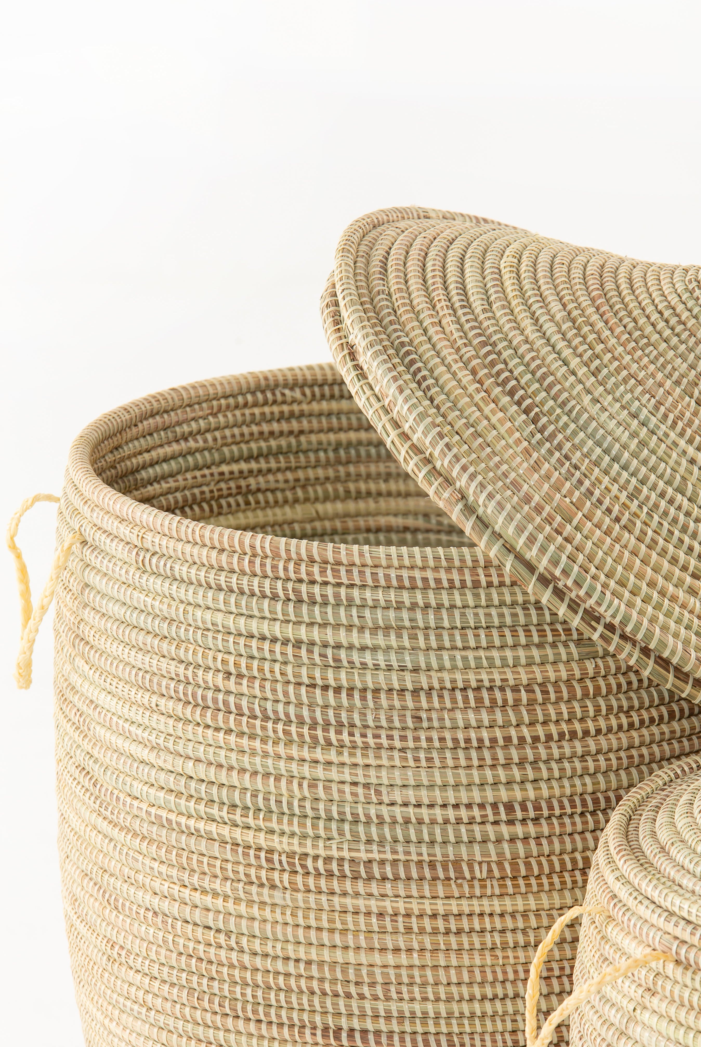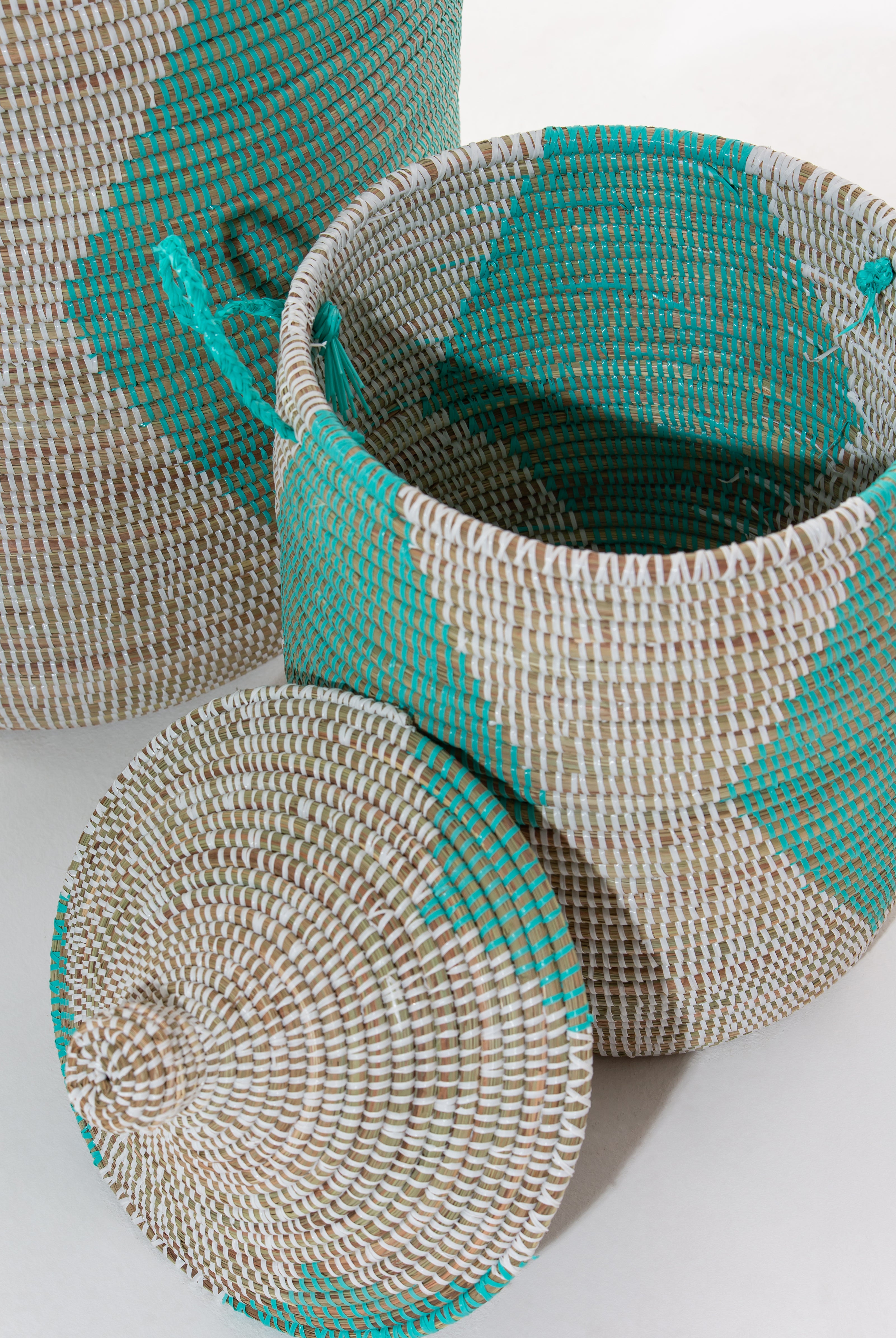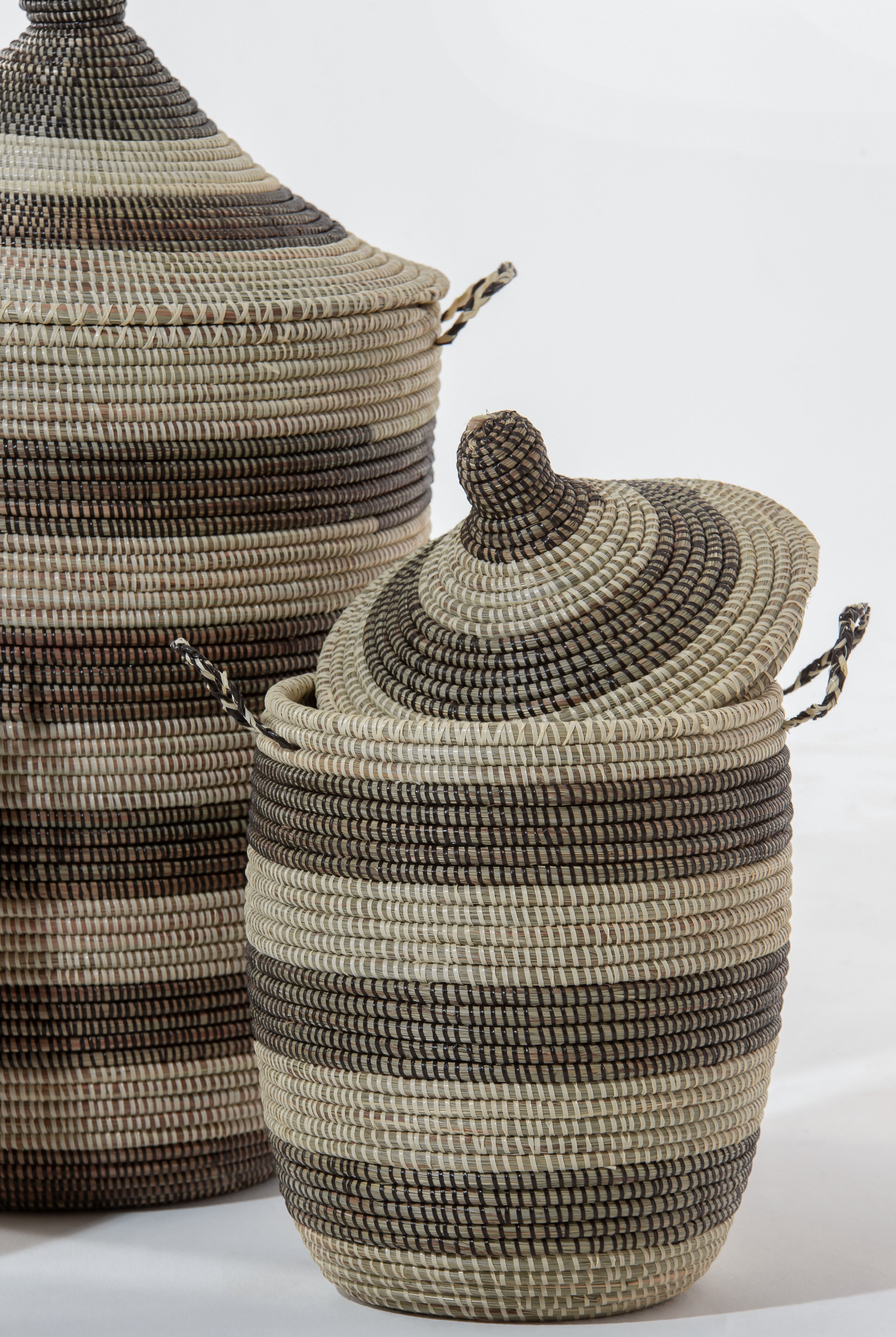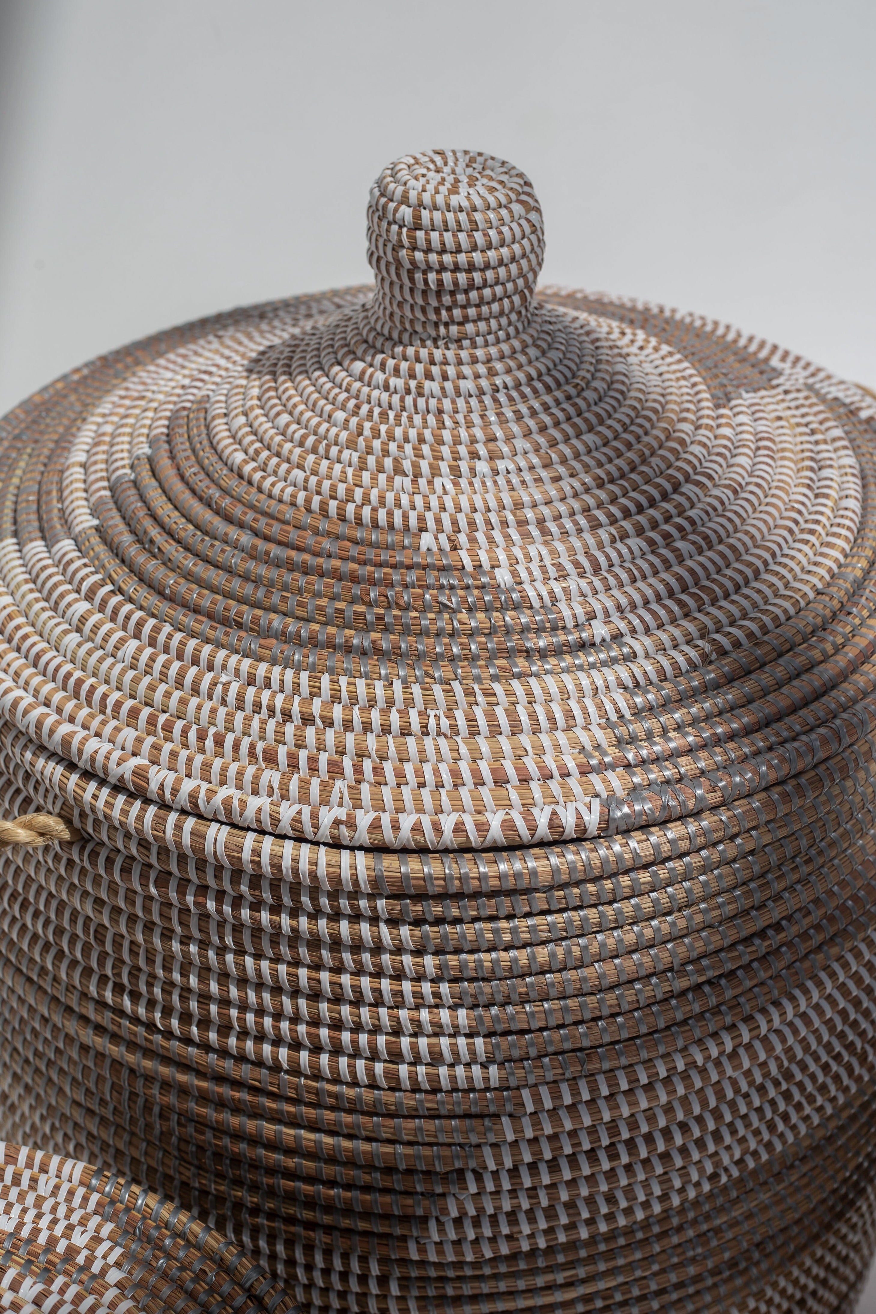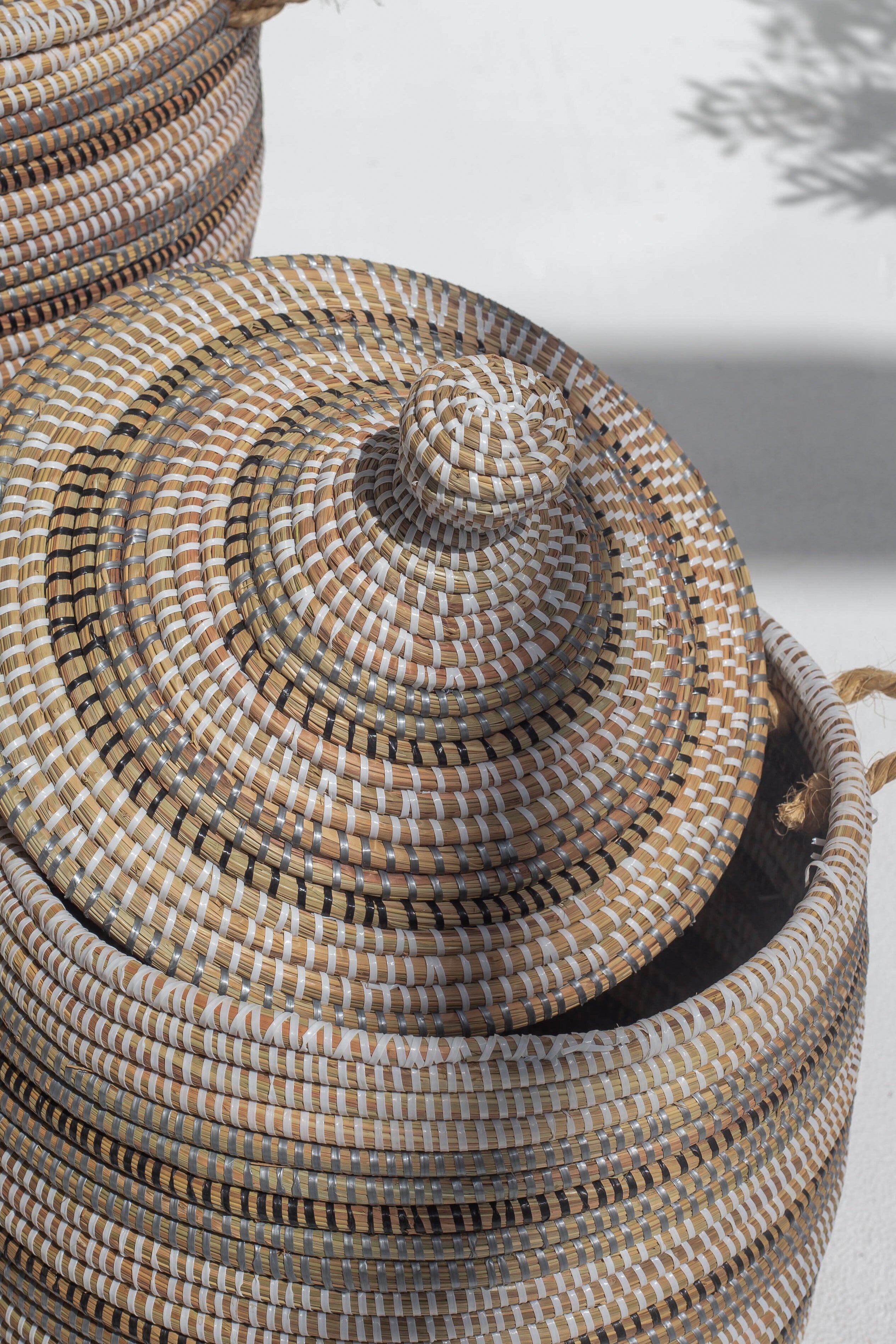 Fair trade, handmade storage solutions woven by African artisans using time-honored techniques.