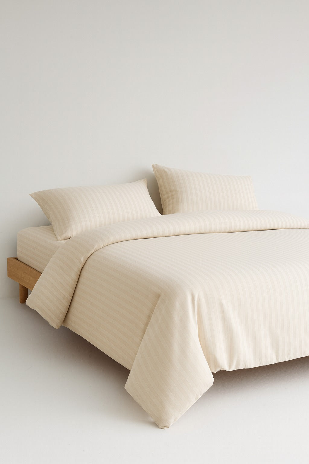 Cream Striped Bed Sheet, Duvet Cover & Pillowcase Set (6 Pieces)