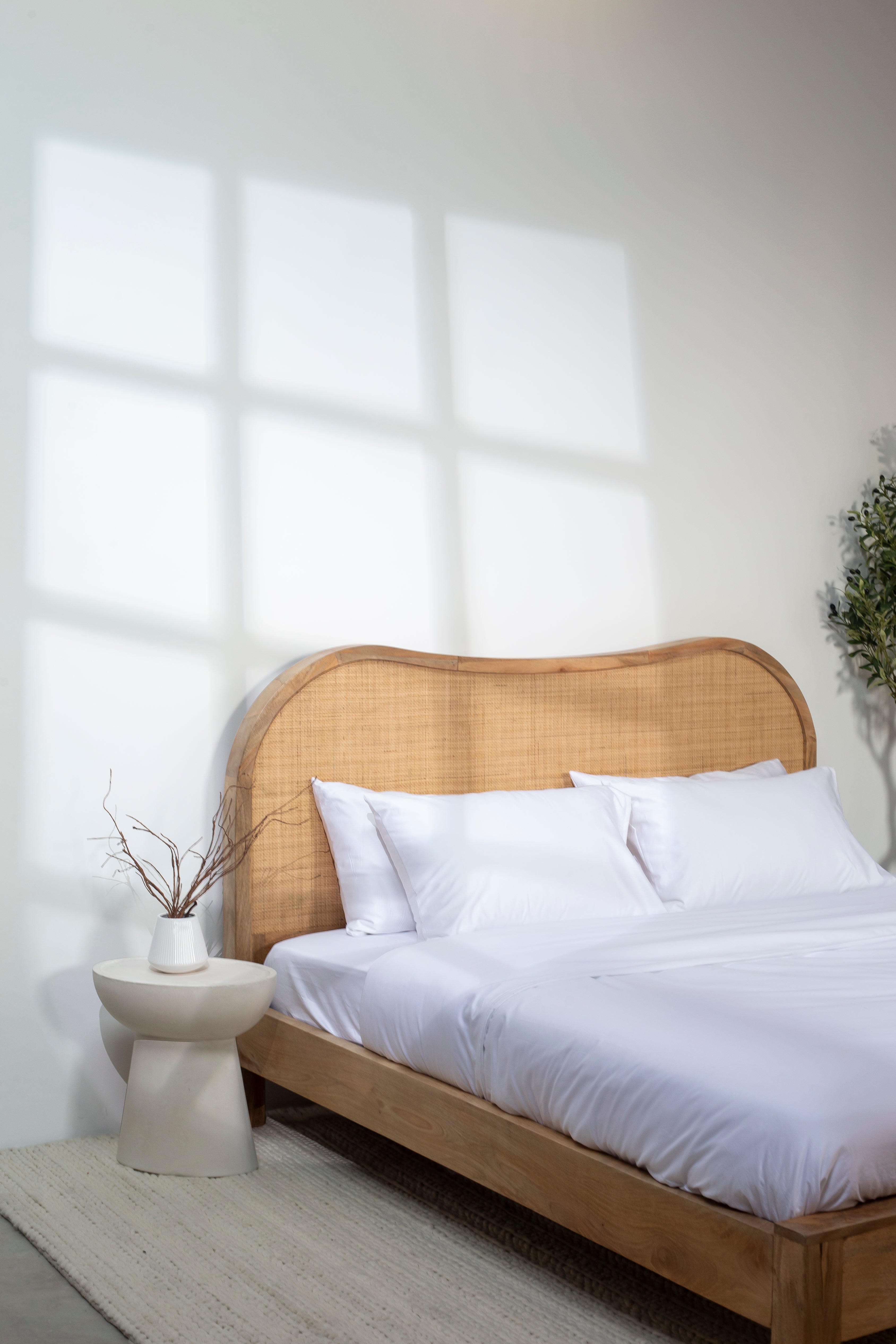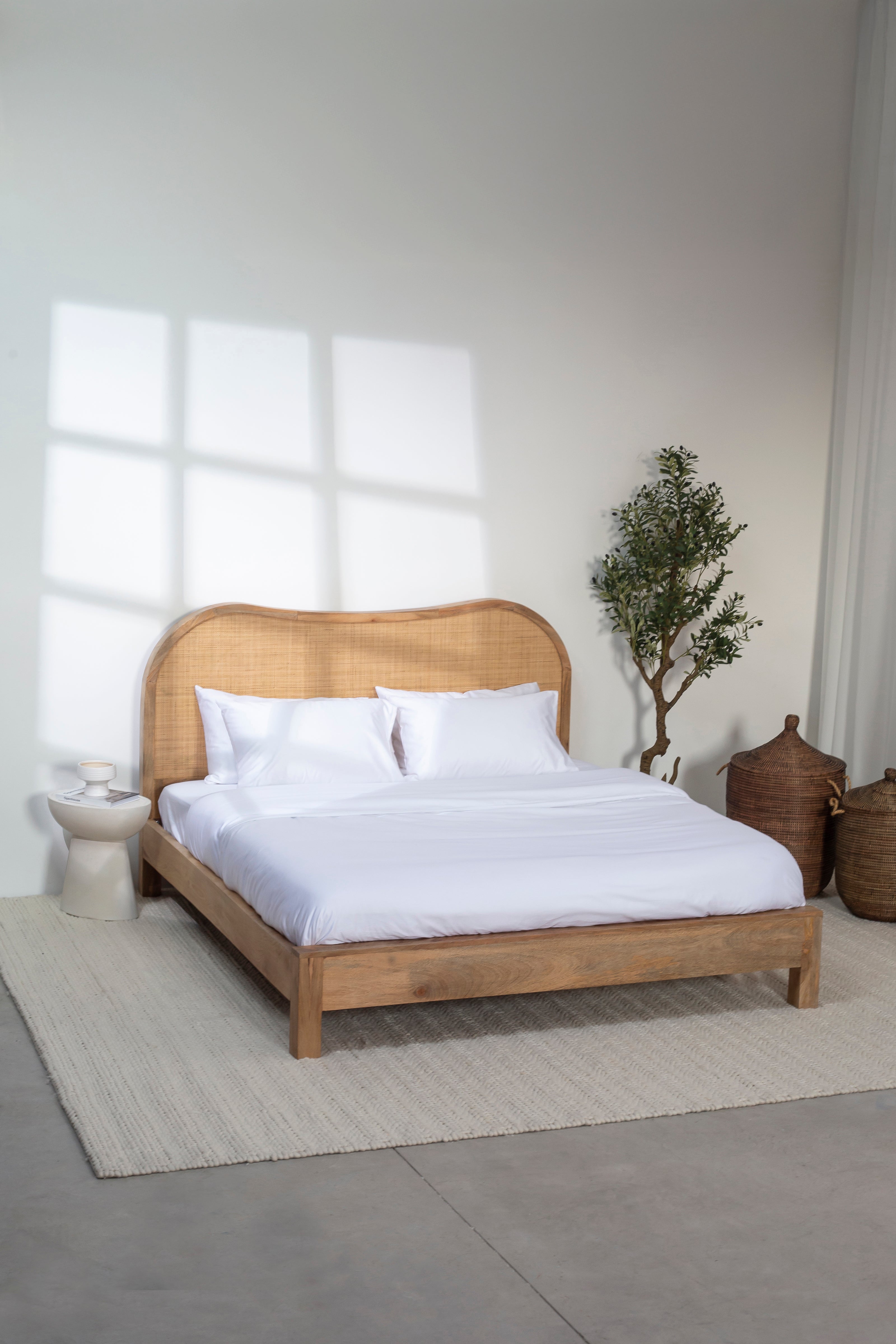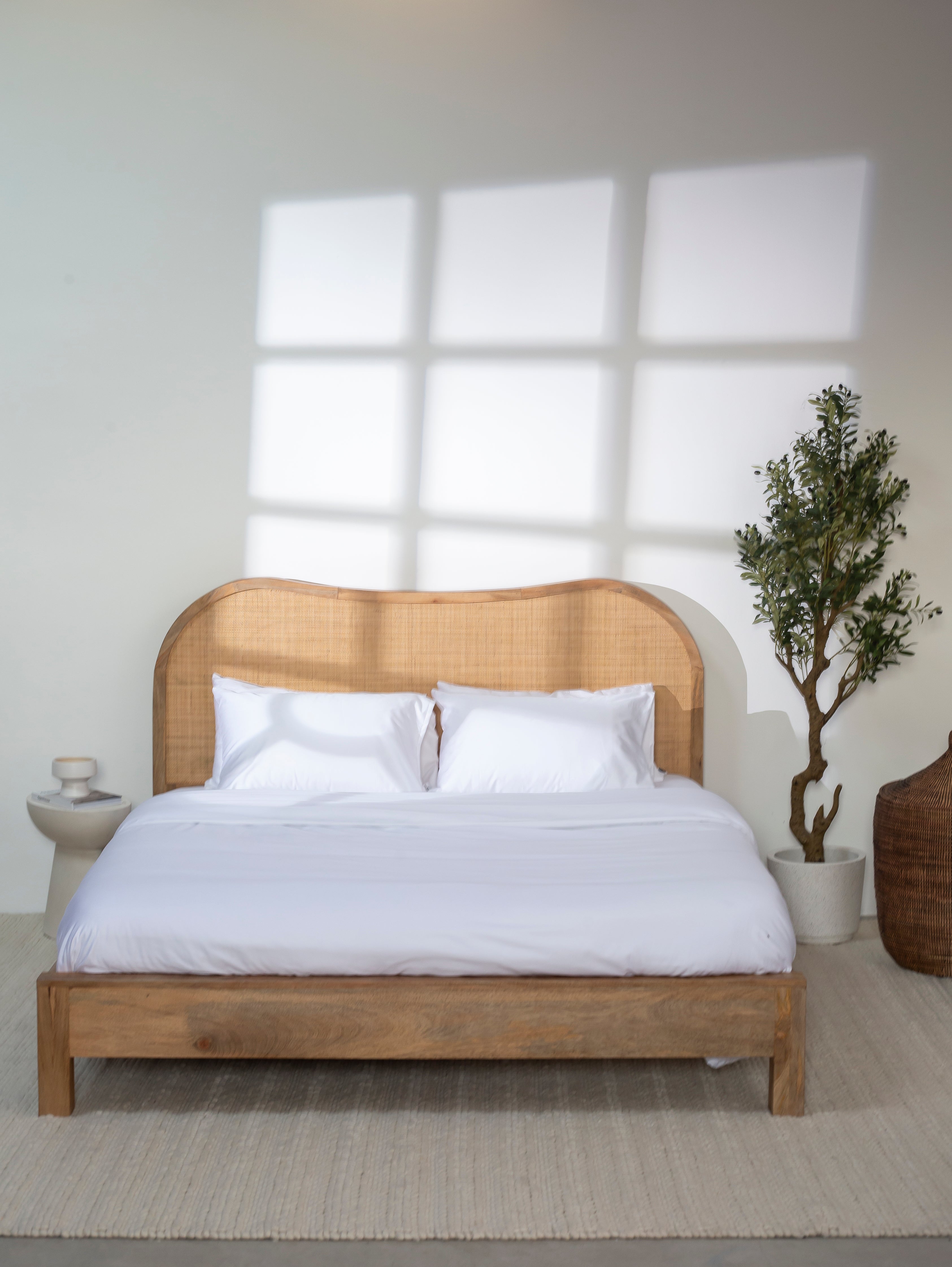 The Béryl Rattan Mango Wood Bed blends natural charm with timeless craftsmanship. Featuring a gracefully arched rattan headboard framed in solid mango wood, its light honey tones and intricate texture bring warmth and sophistication to any bedroom. The sturdy frame boasts smooth wood grains and a minimalist silhouette, making it perfect for boho, modern, or rustic interiors. Designed to celebrate the natural beauty of mango wood and rattan, this bed offers an eco-friendly, stylish retreat that enhances your space effortlessly.
