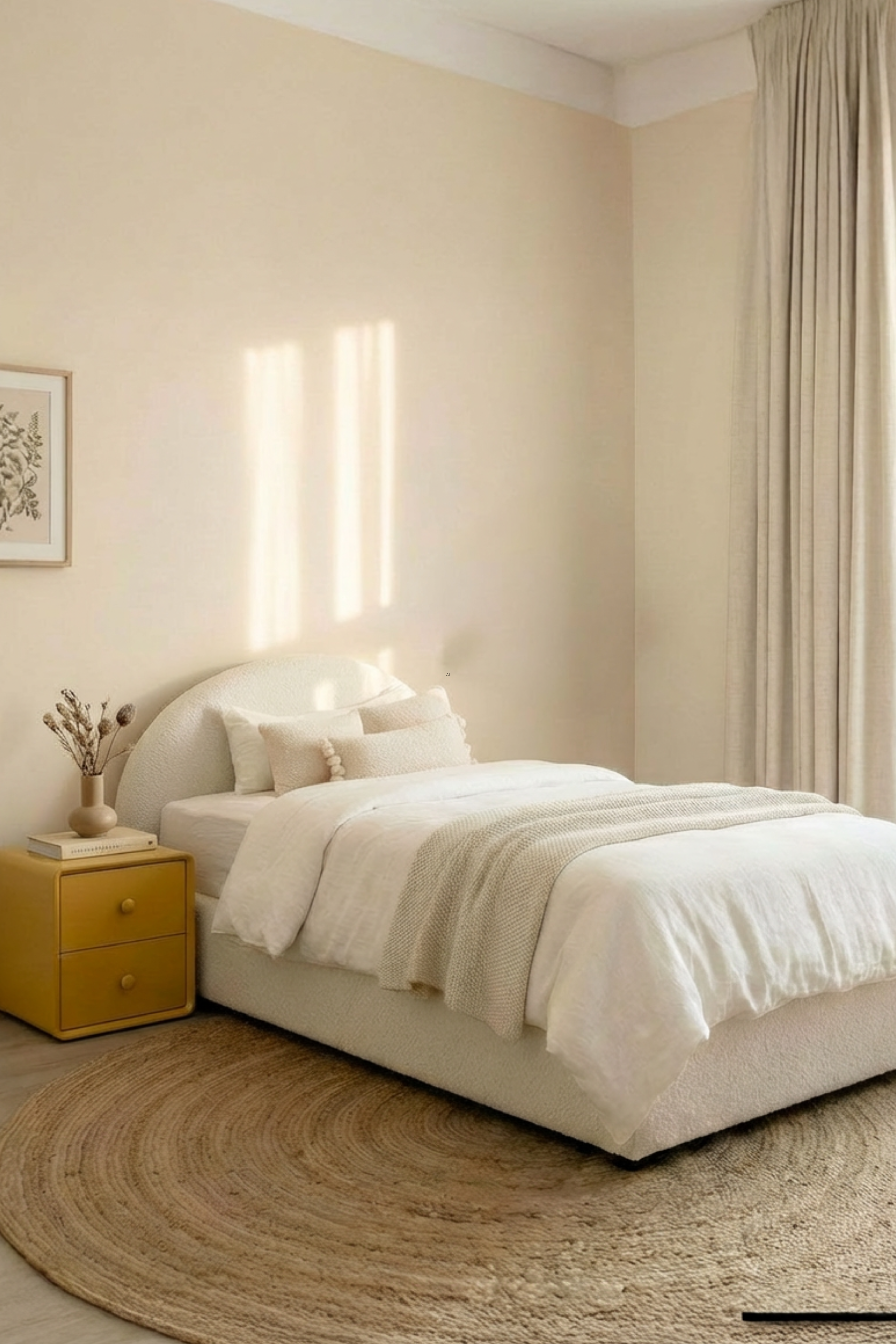 Unwind in elegance with a bed that blends sculptural design and modern comfort. Upholstered in soft off-white boucle, the arched headboard creates a graceful rounded silhouette that pairs seamlessly with the gently curved base. Its low-profile frame enhances a sense of space and airiness, making it ideal for contemporary interiors. With its balance of form and function, this bed becomes a timeless centerpiece, transforming your bedroom into a serene retreat of style and relaxation.