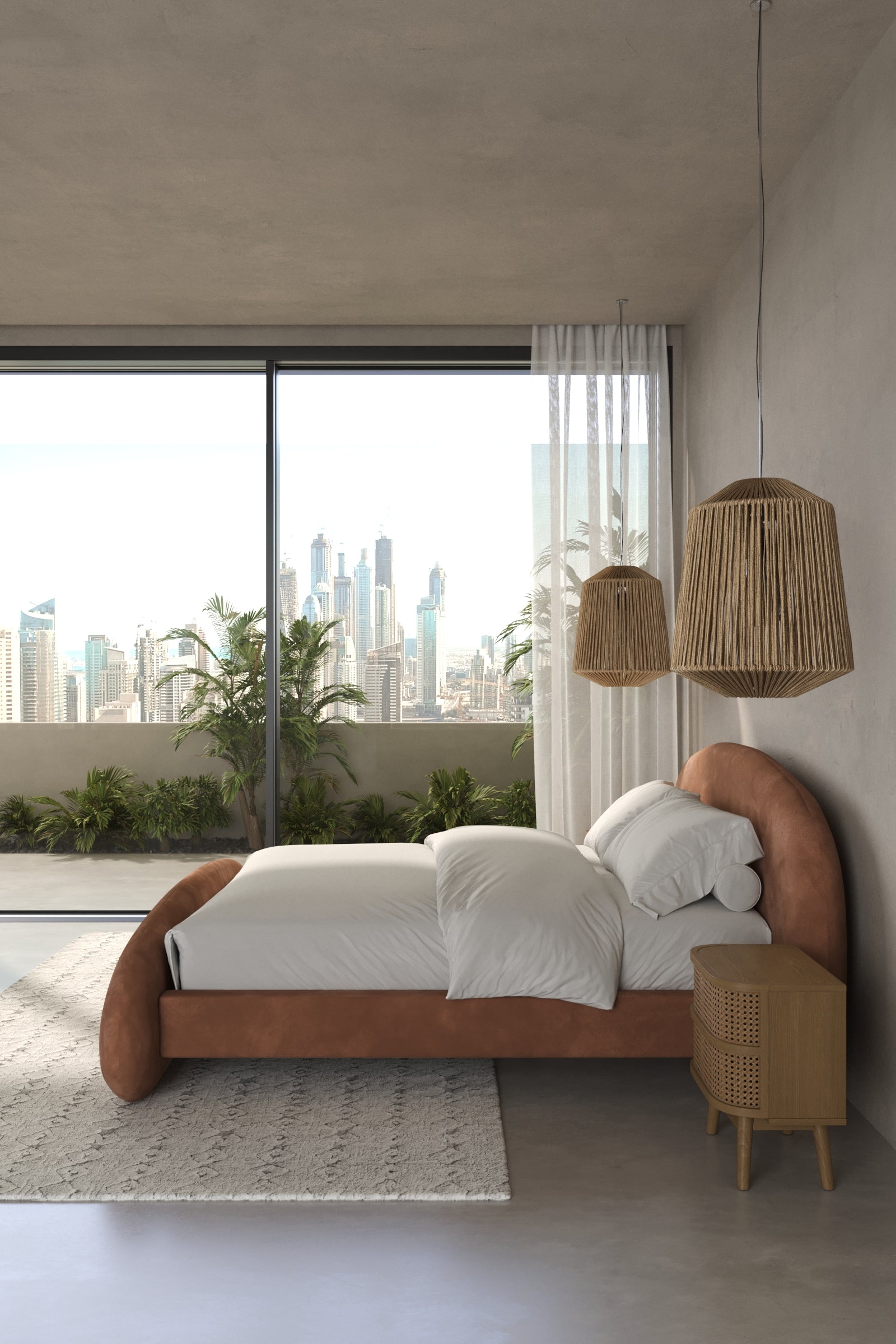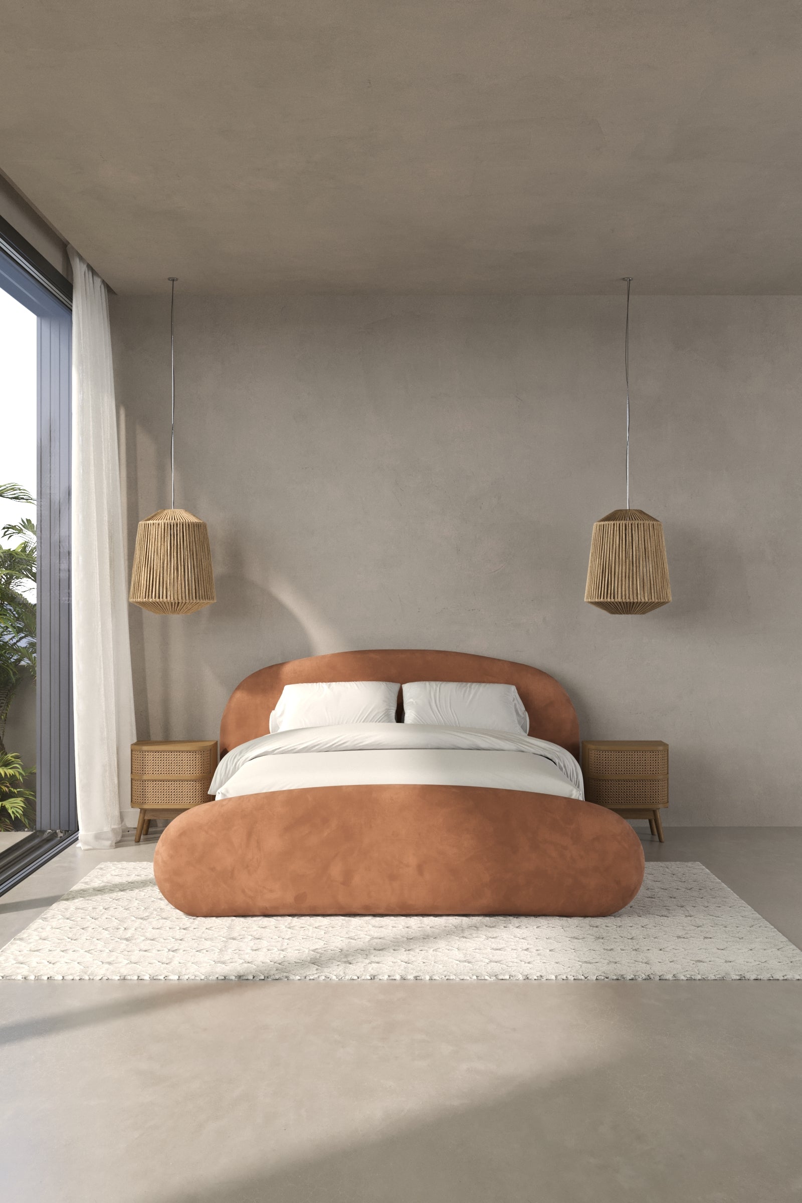 Make your nights warm and inviting with a bed that’s designed around you. Its curved frame and rounded edges create a cloudlike softness, beautifully enhanced by the rich Caramel Suede finish. The suede-like texture offers a luxurious touch, while the earthy tone complements natural or modern décor. This bed blends comfort and sophistication seamlessly, transforming your space into a cozy sanctuary.