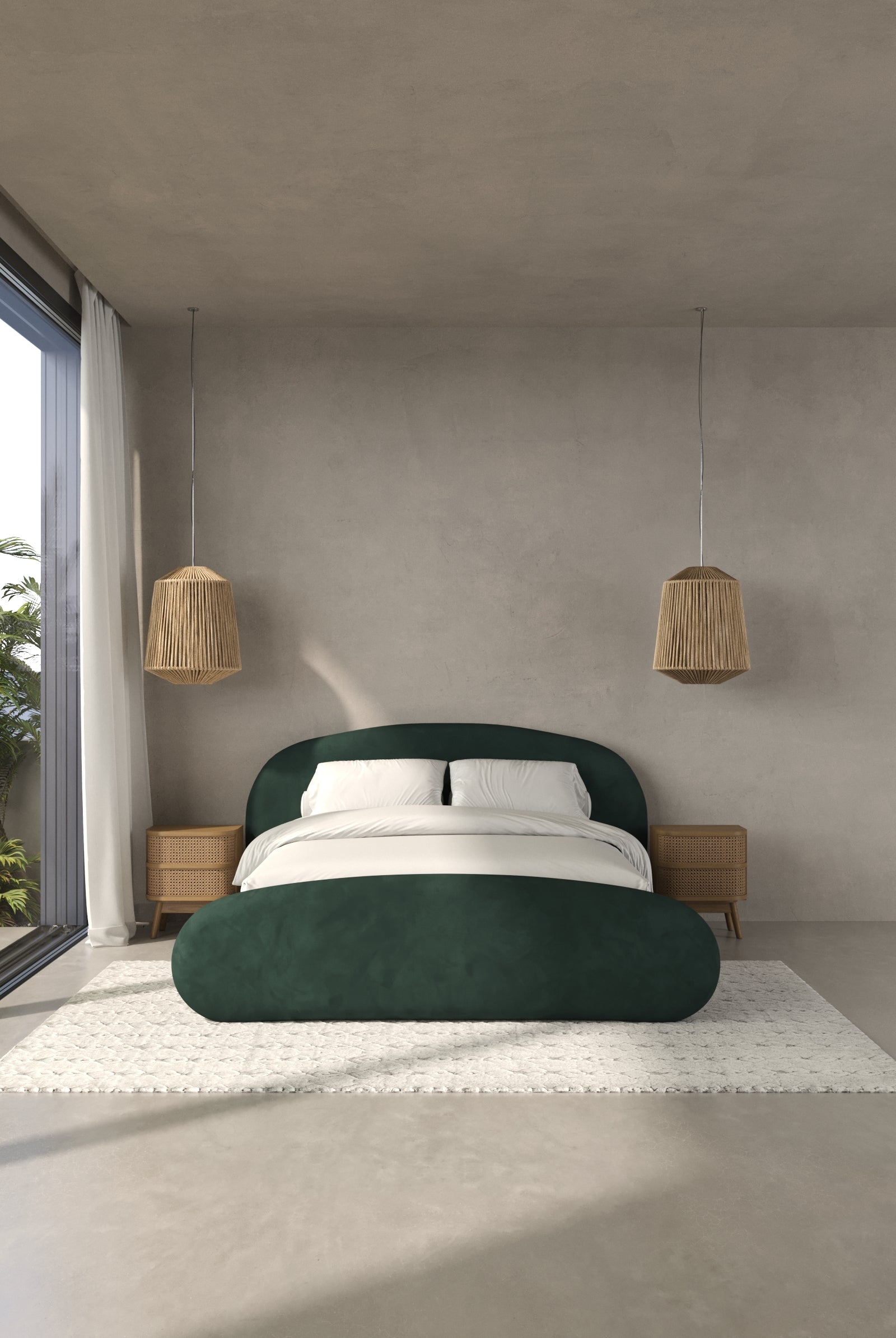 Experience unparalleled comfort and modern elegance with our Polyester Velvet Bed, featuring a stylish rounded headboard. This bed is upholstered in luxurious polyester velvet, celebrated for its soft texture, rich sheen, and sophisticated appearance. The rounded headboard design adds a touch of contemporary charm, making it a standout piece in any bedroom setting.