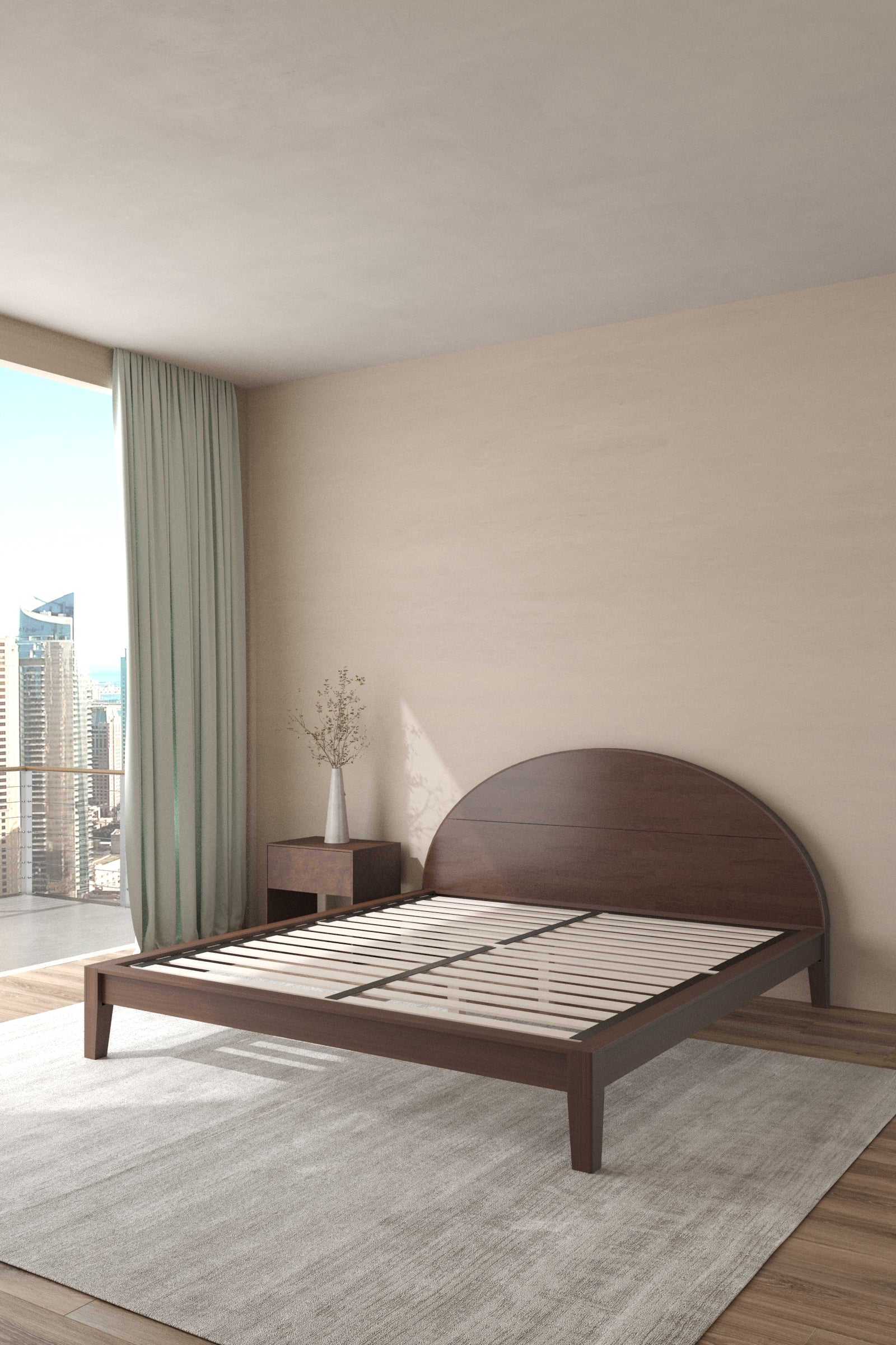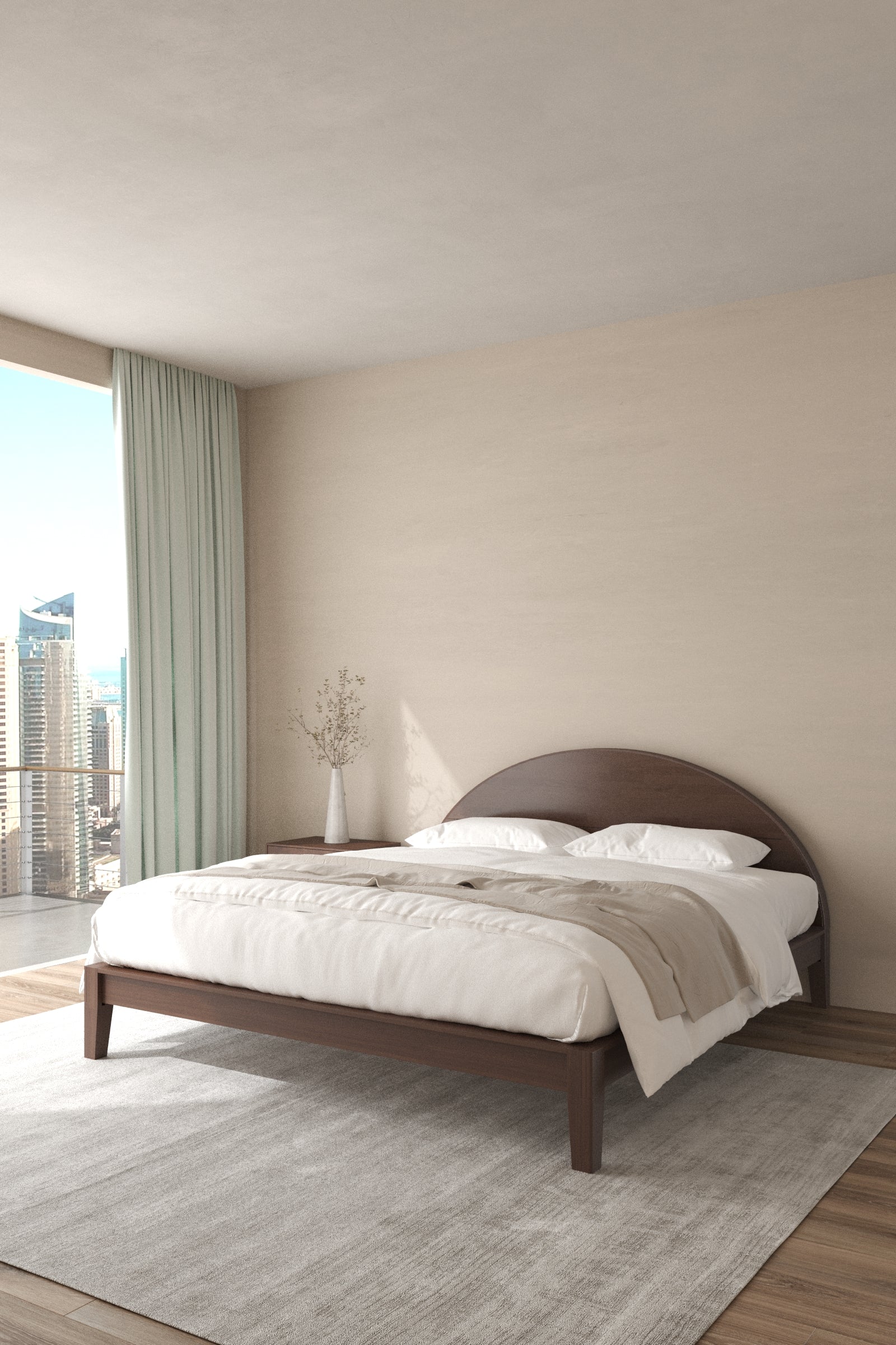 Find yourself enveloped in quiet sophistication as you rest against a smooth arch headboard finished in a deep, dark brown tone that radiates warmth and depth. The wood’s fine texture reveals natural grains that shimmer subtly under soft light, inviting a touch of nature into your space. Each curve and line is shaped with precision, reflecting the mastery of Japanese joinery for lasting stability and beauty. Solid legs ground the design while keeping a light, graceful presence in your room. Perfect for modern, Japandi, or contemporary interiors, this piece transforms your bedroom into a haven of balance and refinement.