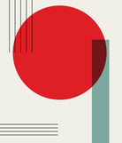 A striking modern abstract design featuring a bold crimson red circle intersected by a tall, muted teal rectangle on an off-white backdrop. Fine black lines add a rhythmic balance, creating a Bauhaus-inspired geometric composition that blends contemporary minimalism with timeless artistry. Imagine this vivid pop of color and precise shapes drawing every eye, elevating your living room, office, or studio with texture, contrast, and visual intrigue—making you the curator of a truly sophisticated space.