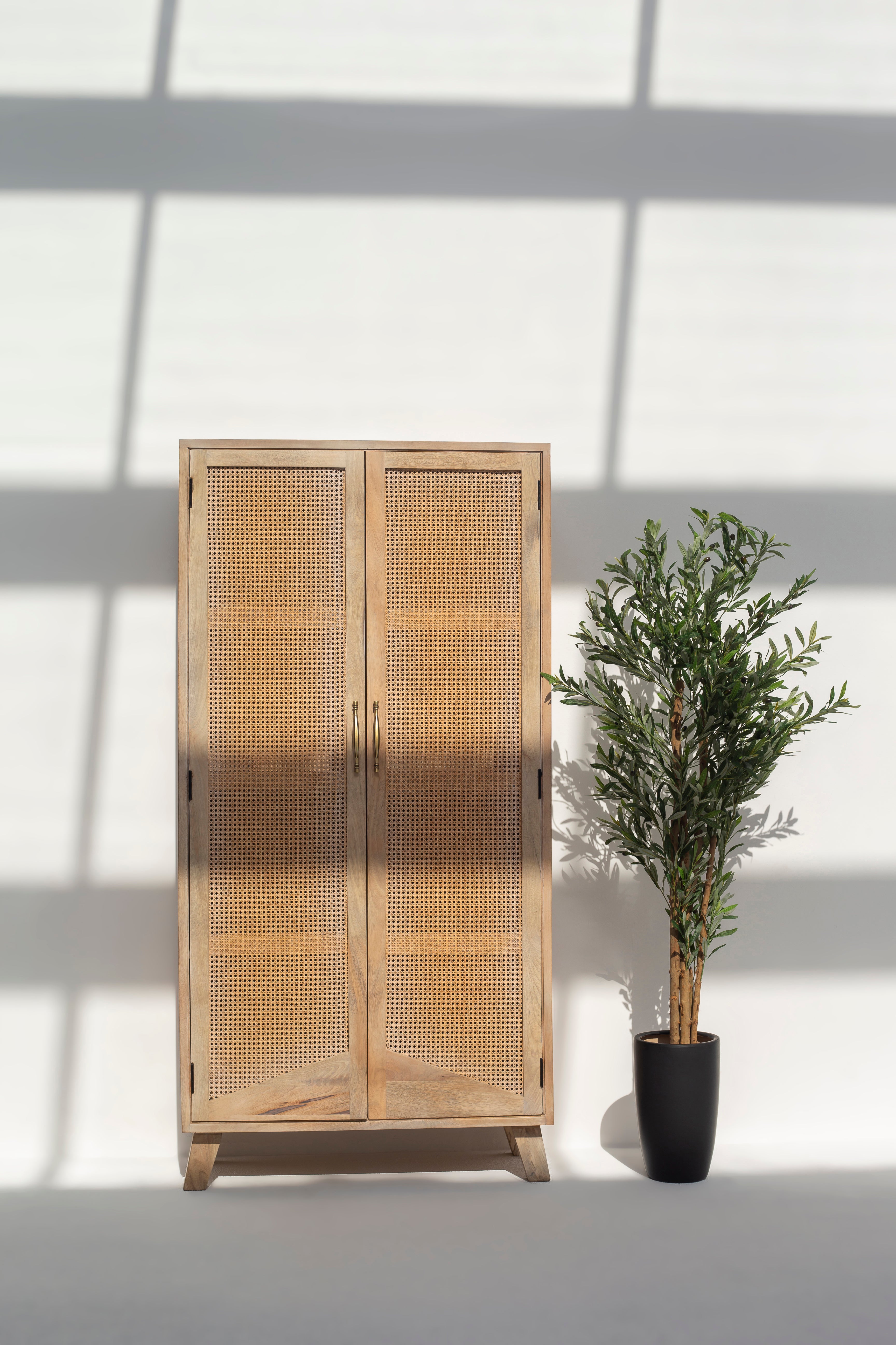 Introducing the Cali Rattan Doors Closet, a stylish and functional addition to any home. This 2 door cabinet is crafted from durable mango wood, ensuring long-lasting quality.