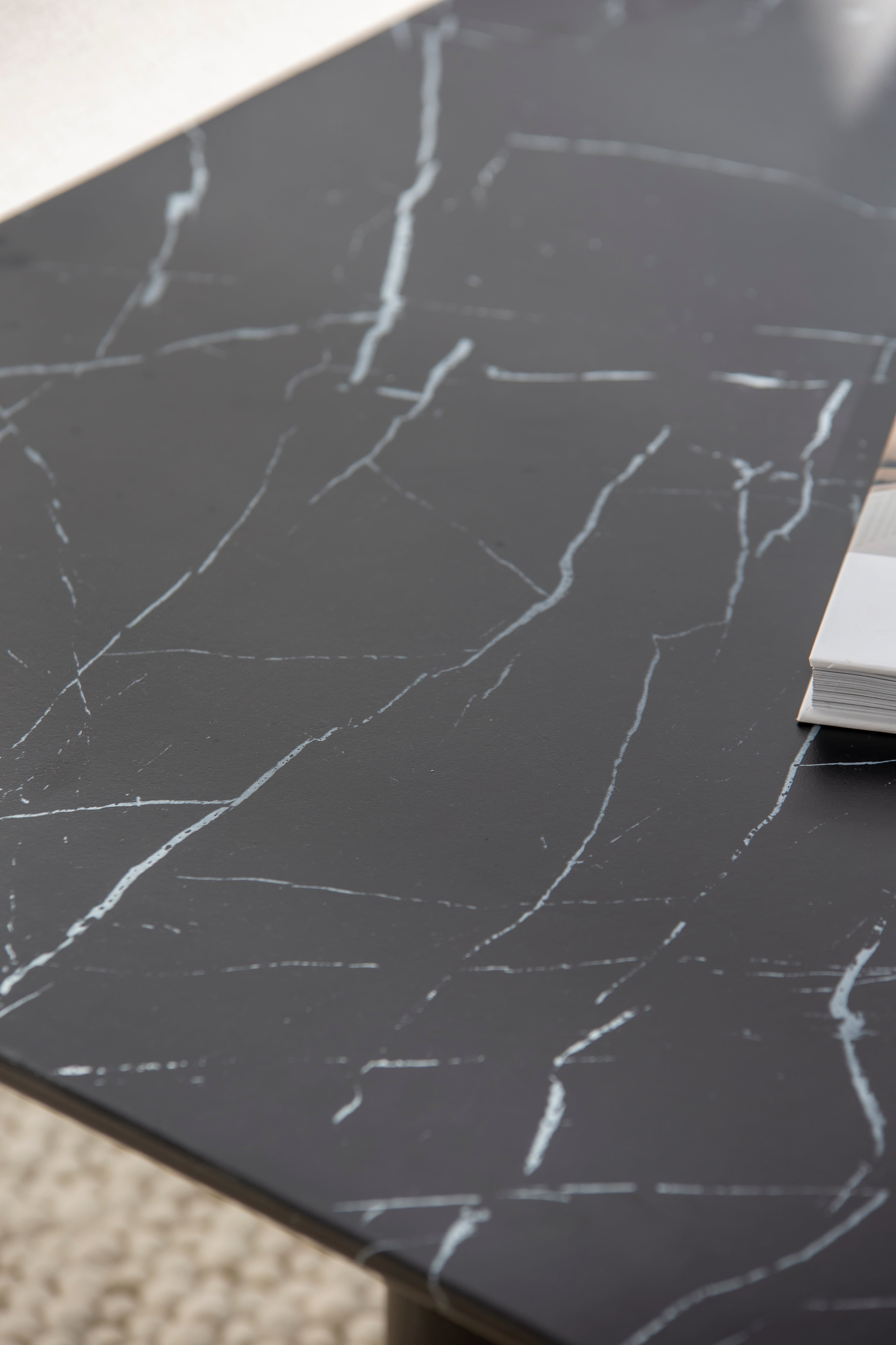 Designed to elevate your living space, this coffee table's marble-inspired surface delivers a refined aesthetic with a smooth, polished texture. Its dramatic black and white contrast provides a chic and versatile style that harmonizes beautifully with a variety of decors. Ideal for displaying decor, books, or simply serving as a striking focal point, this piece encapsulates luxury and practicality for contemporary homes.