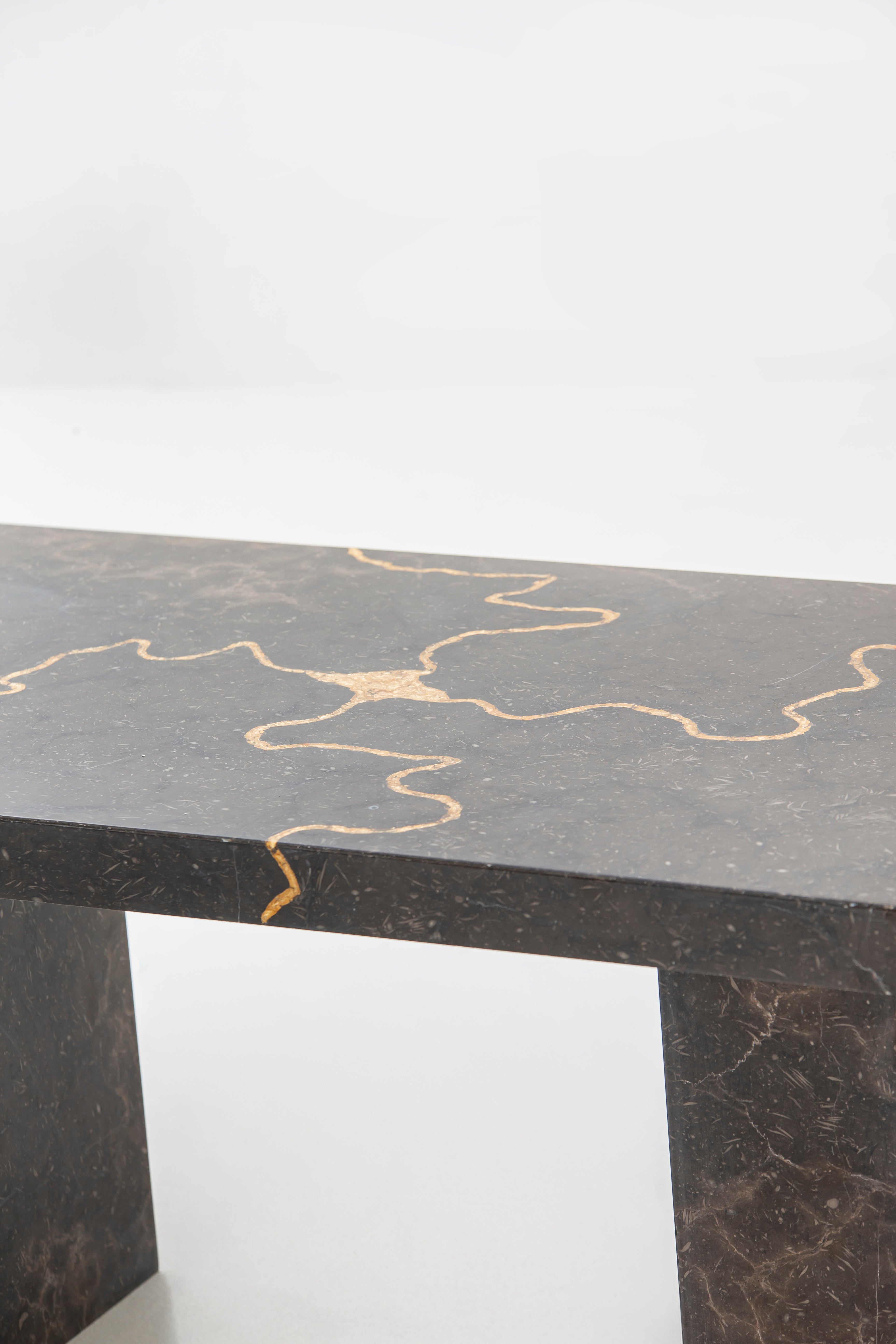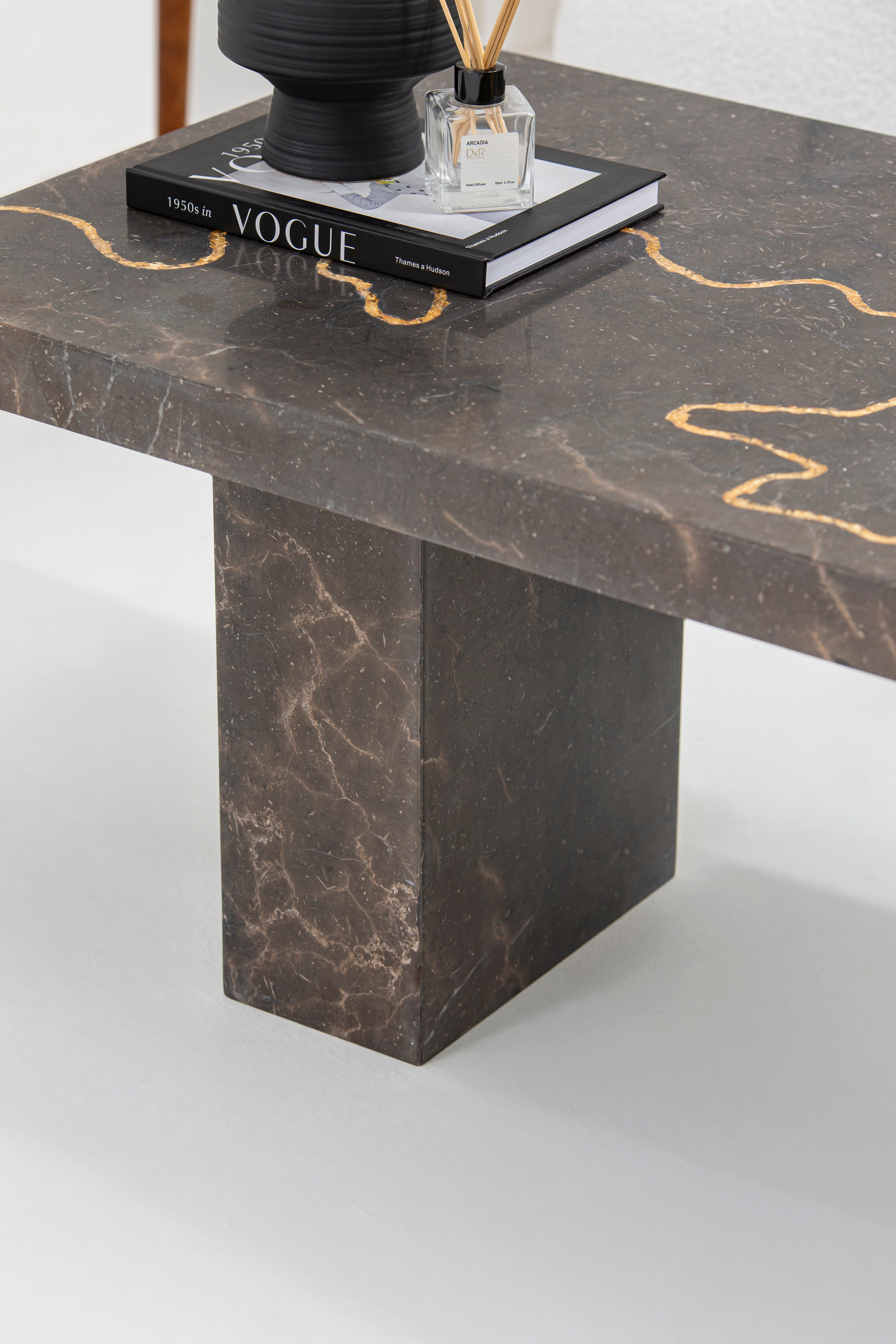 A striking centerpiece that transforms your living space. Crafted from rich Bietra Brown marble with dramatic gold engraving, this sculptural rectangular coffee table exudes elegance and timeless appeal. Its bold, block-style legs and polished surface showcase natural stone texture and contrasting veining, offering both strength and artistry. Whether styled in a modern, minimalist, or classical interior, this marble table invites you to anchor your space with confidence and sophistication.