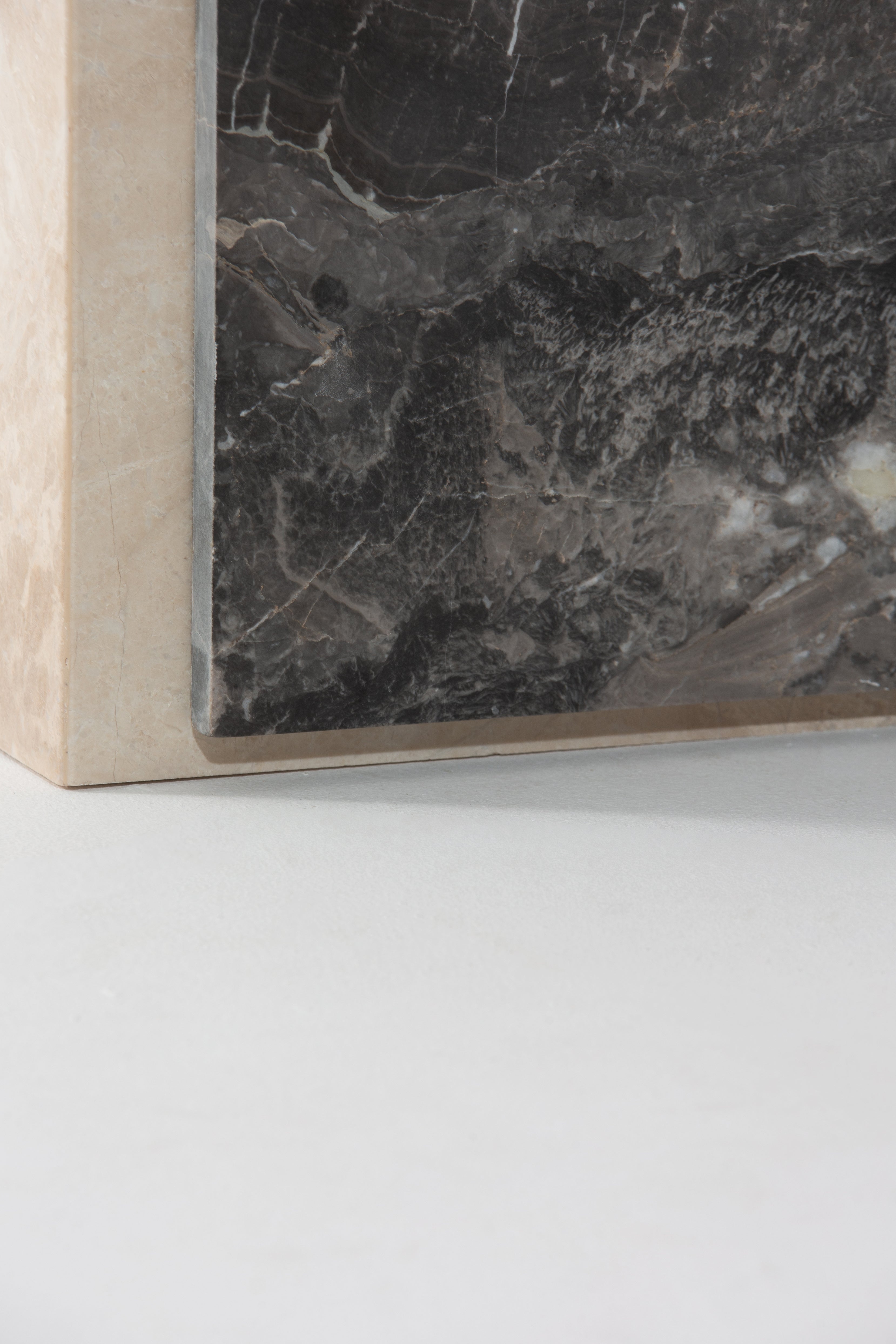 A refined expression of contrast and craftsmanship, this Orobico Grey & Brecia Beige Marble Coffee Table blends rich materiality with architectural balance. The base is constructed from warm-toned Brecia Beige marble, known for its subtle veining and creamy undertones, while the striking Orobico Grey marble slab rests above it like a sculptural crown, showcasing dramatic patterns and deep charcoal swirls. The layered effect adds depth and dimension, transforming this piece into more than just a surface—it’s a bold centerpiece for modern, minimalist, or luxe interiors. Perfectly scaled for living rooms or lounge spaces, this coffee table delivers timeless beauty with modern sensibility.