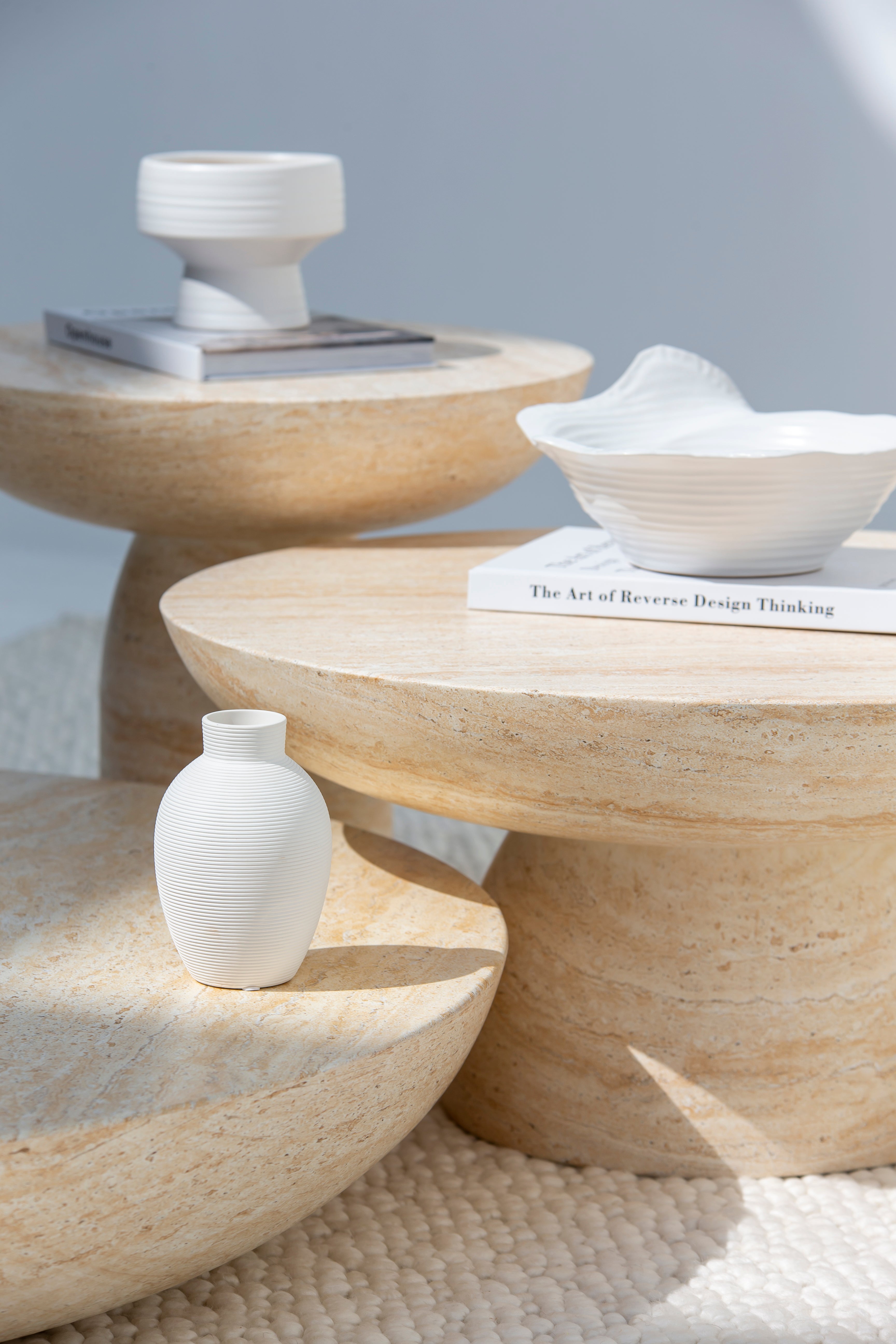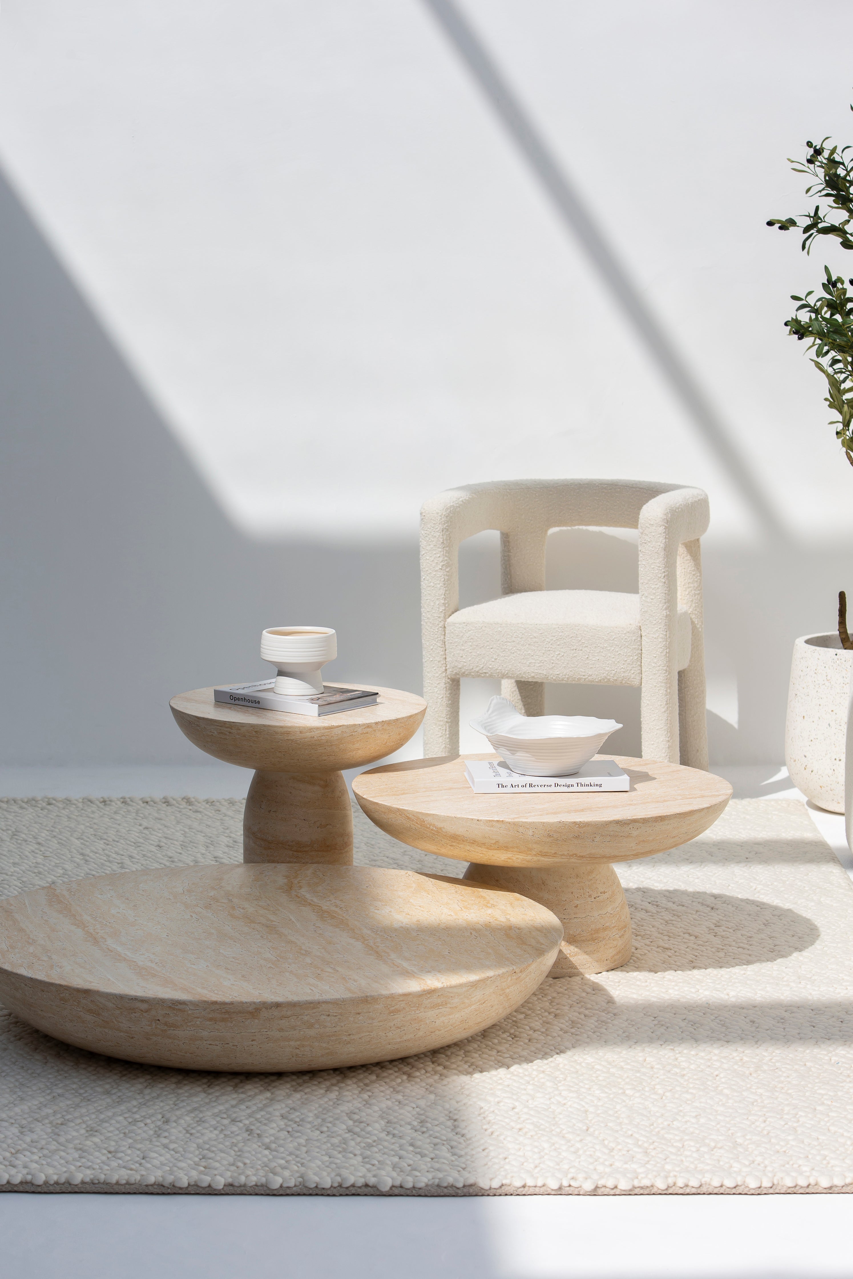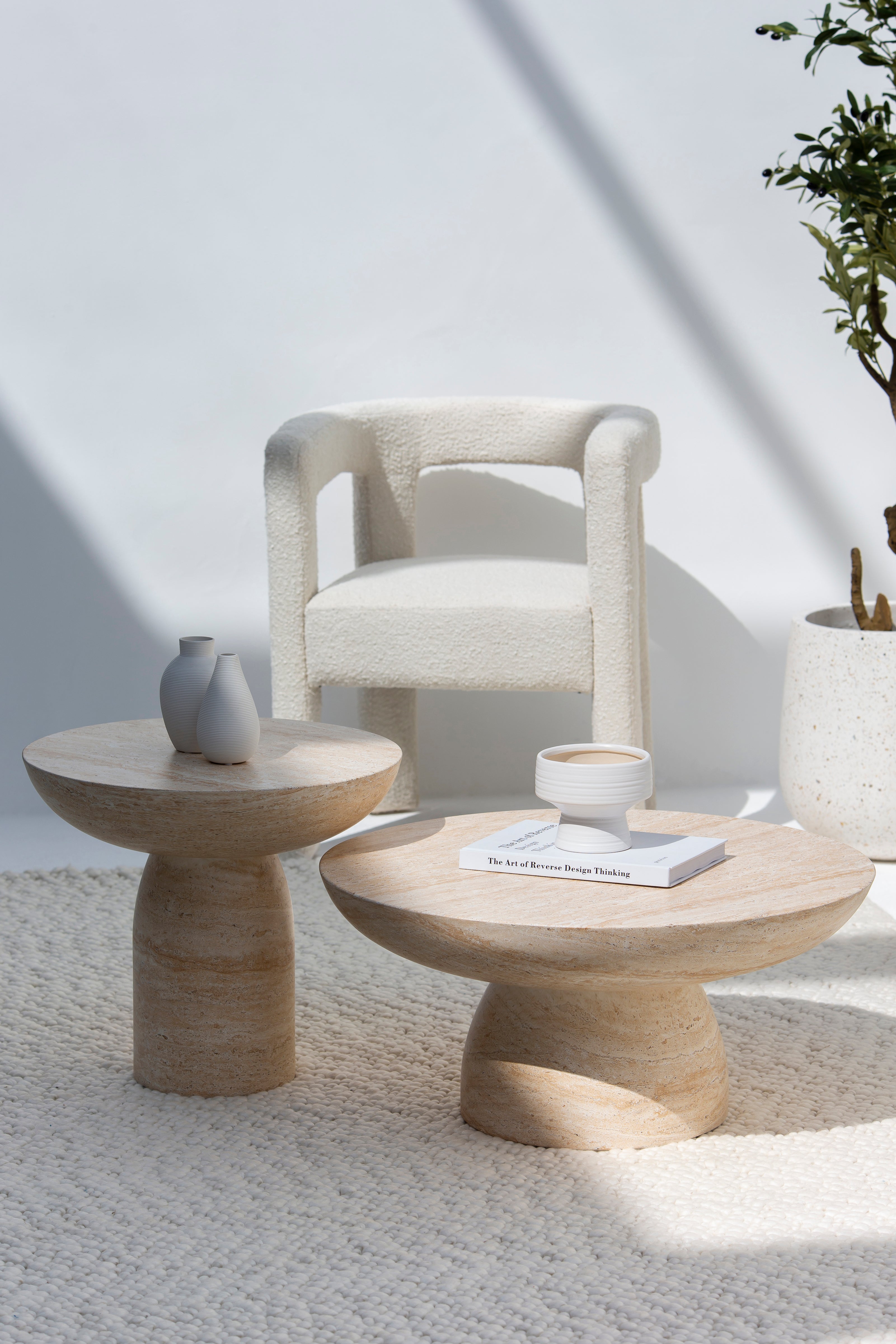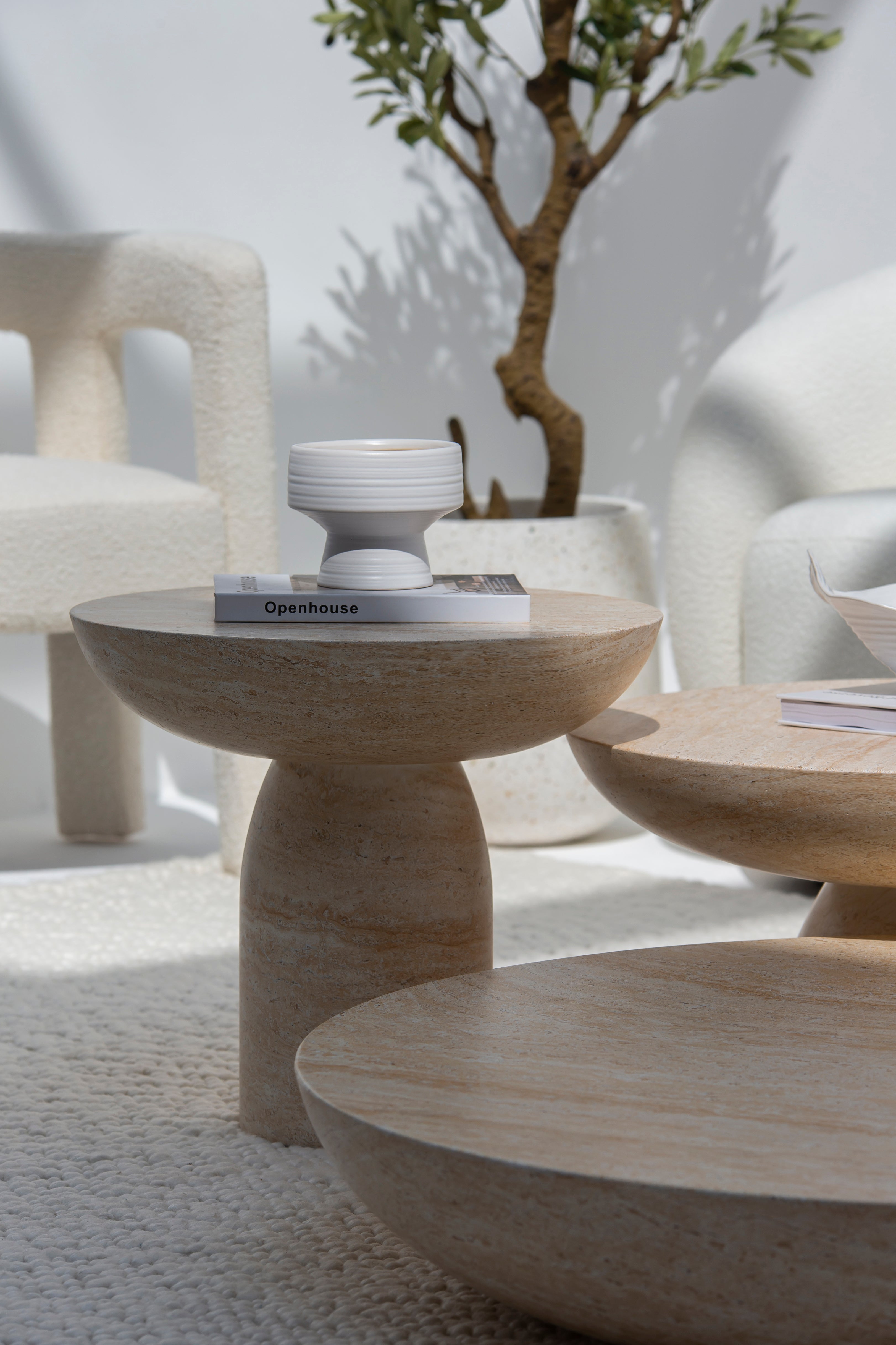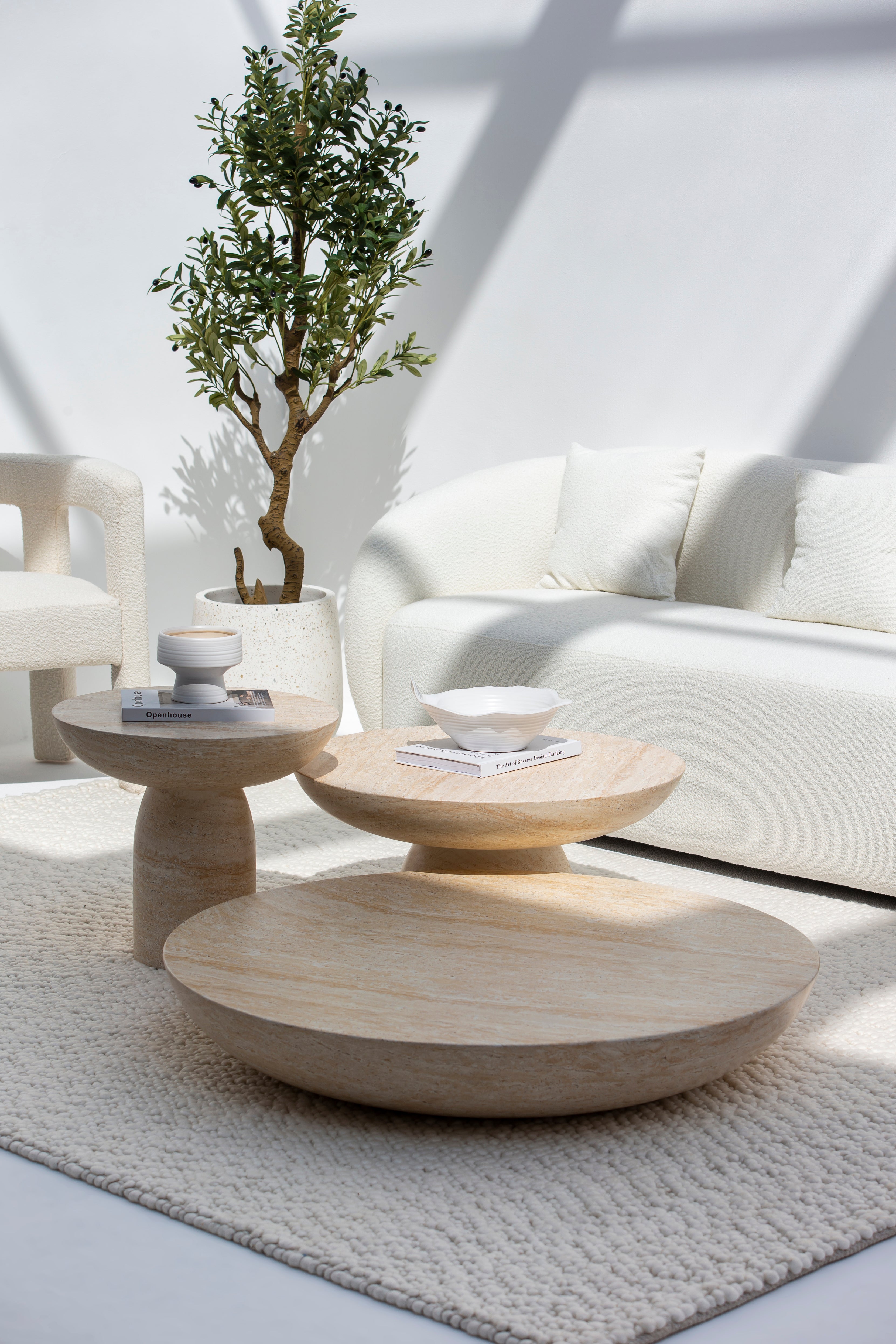 Mondo Travertine Finish Concrete Coffee Table Set