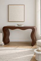 Rich mocha tones and fluid sculptural legs create a striking focal point that elevates your interior with warmth and movement. The softly contoured silhouette adds artistic depth while grounding your space in modern European elegance, making your entryway or living area feel curated, calm, and intentionally styled.