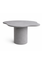 Bring sculptural calm to your indoor dining space with an irregular top finished in ash grey microconcrete for a soft, modern statement. The organic shape feels artful and effortless, while the solid pedestal base adds grounded presence and clean architectural balance. A matte, stone like texture creates quiet depth that pairs beautifully with warm woods, crisp whites, and tonal ceramics. Designed for everyday meals and elevated hosting, it turns gathering into a refined ritual with understated luxury.