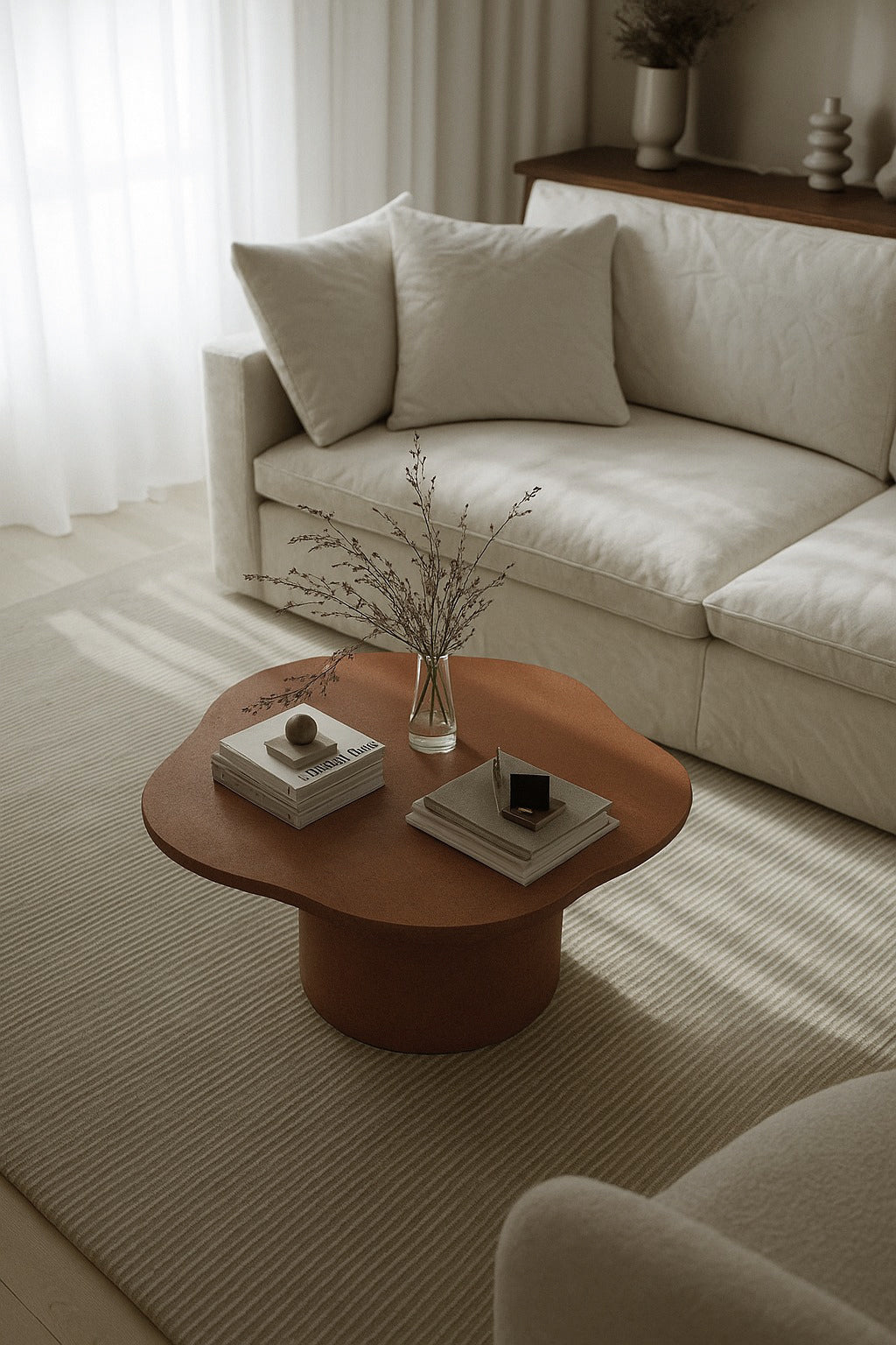 Step into your living space and instantly elevate the ambiance with this striking irregular-top micro concrete coffee table, defined by its sculptural silhouette and rich mocha brown finish. The organic, free-flowing shape adds artistic flair, while the smooth micro concrete texture showcases a refined, earthy surface that beautifully complements soft, neutral furnishings. Its bold, rounded curves create a grounding focal point, making it the ideal centerpiece for modern, minimalist, and contemporary interiors. Designed to anchor your room with understated luxury, this handcrafted piece is visually captivating and crafted for everyday durability. Imagine styling it with your favorite décor—books, ceramic accents or dried botanicals—to create a warm, curated aesthetic that reflects your personality.