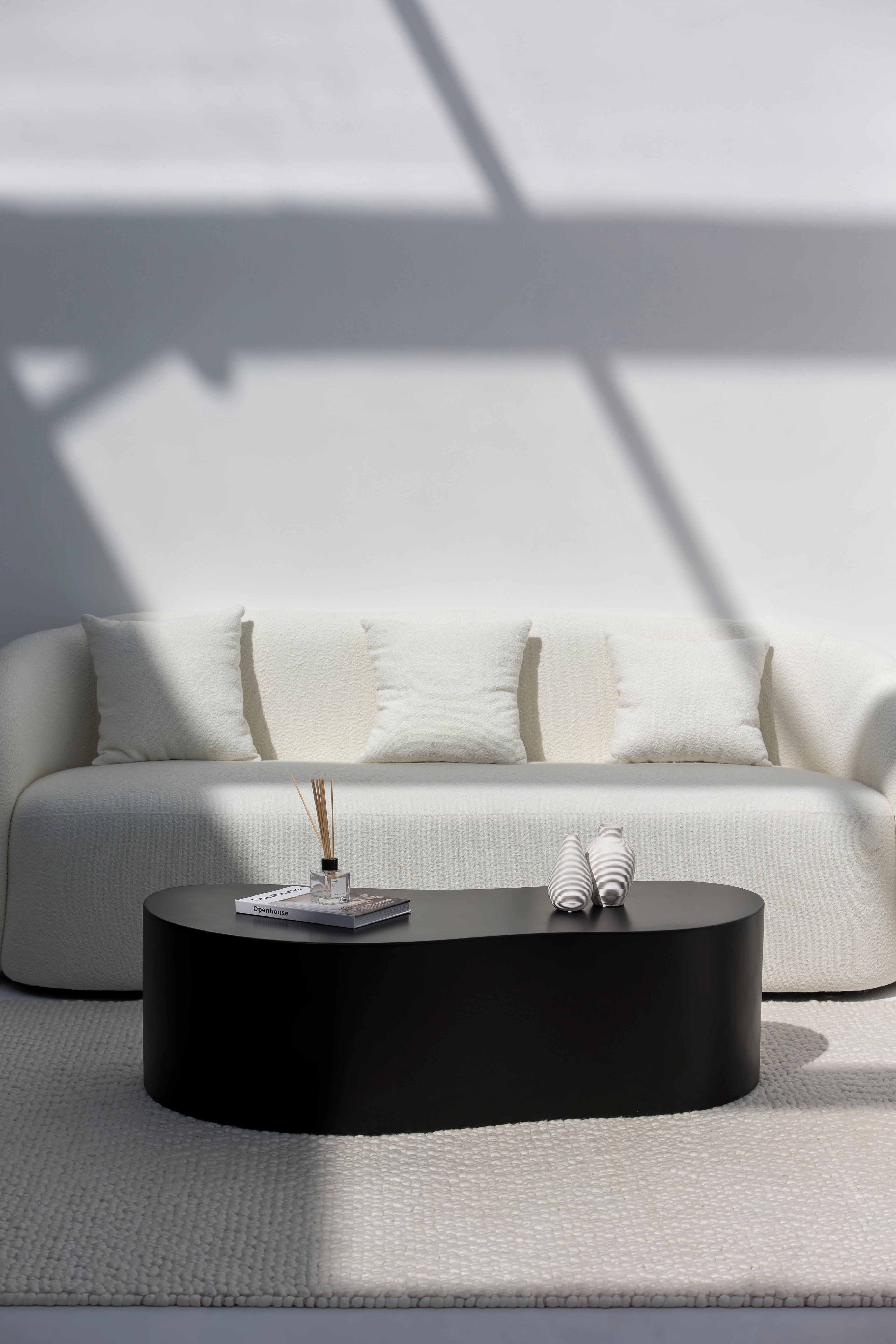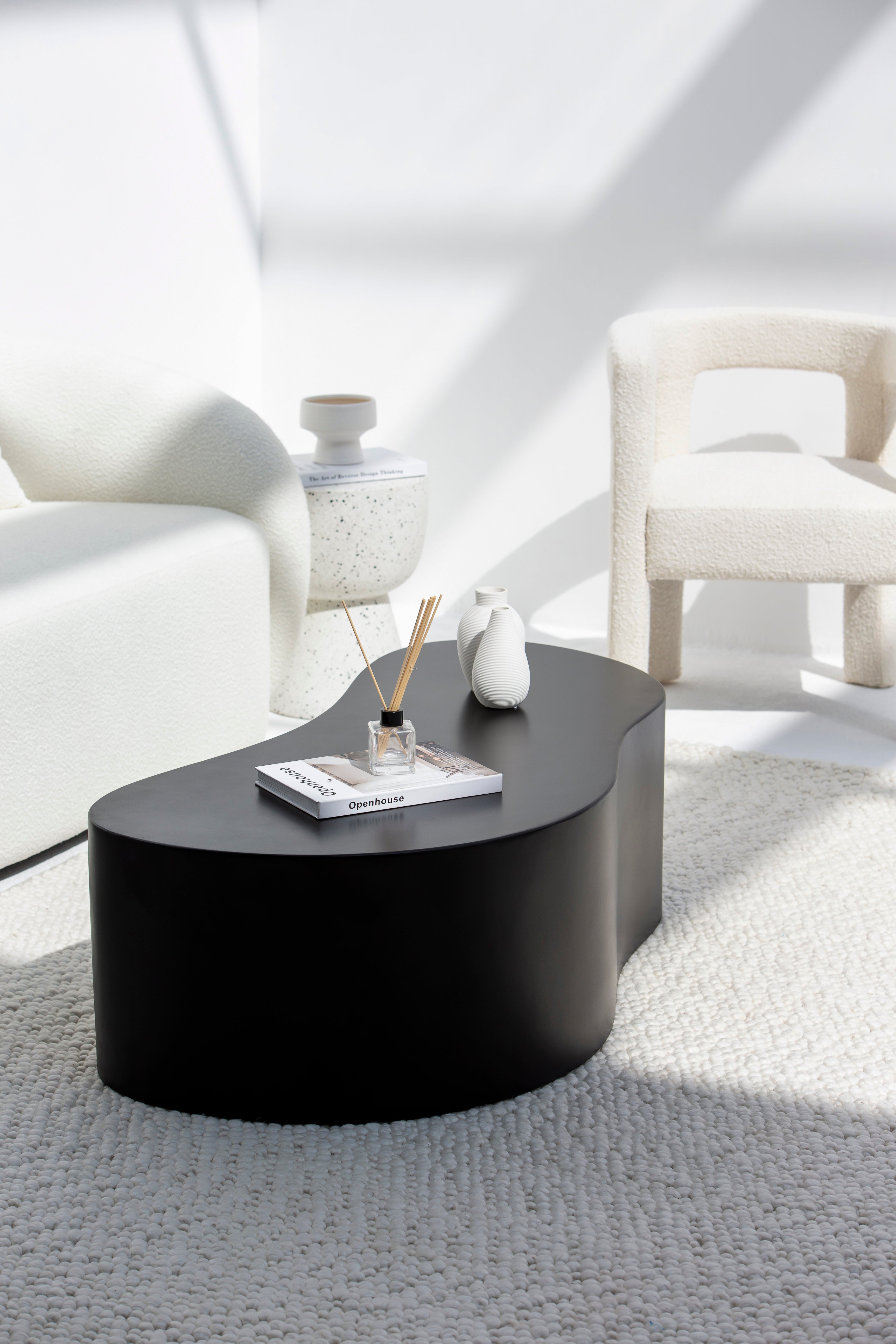 The Marina Black Concrete Coffee Table offers a sleek, modern profile with a smooth, organic shape reminiscent of soft curves. Crafted from GRC (Glassfibre Reinforced Concrete), this statement piece features a rich black finish, exuding both contemporary elegance and durability. The texture is smooth to the touch, providing a refined surface perfect for minimalistic décor or stylish accent pieces.