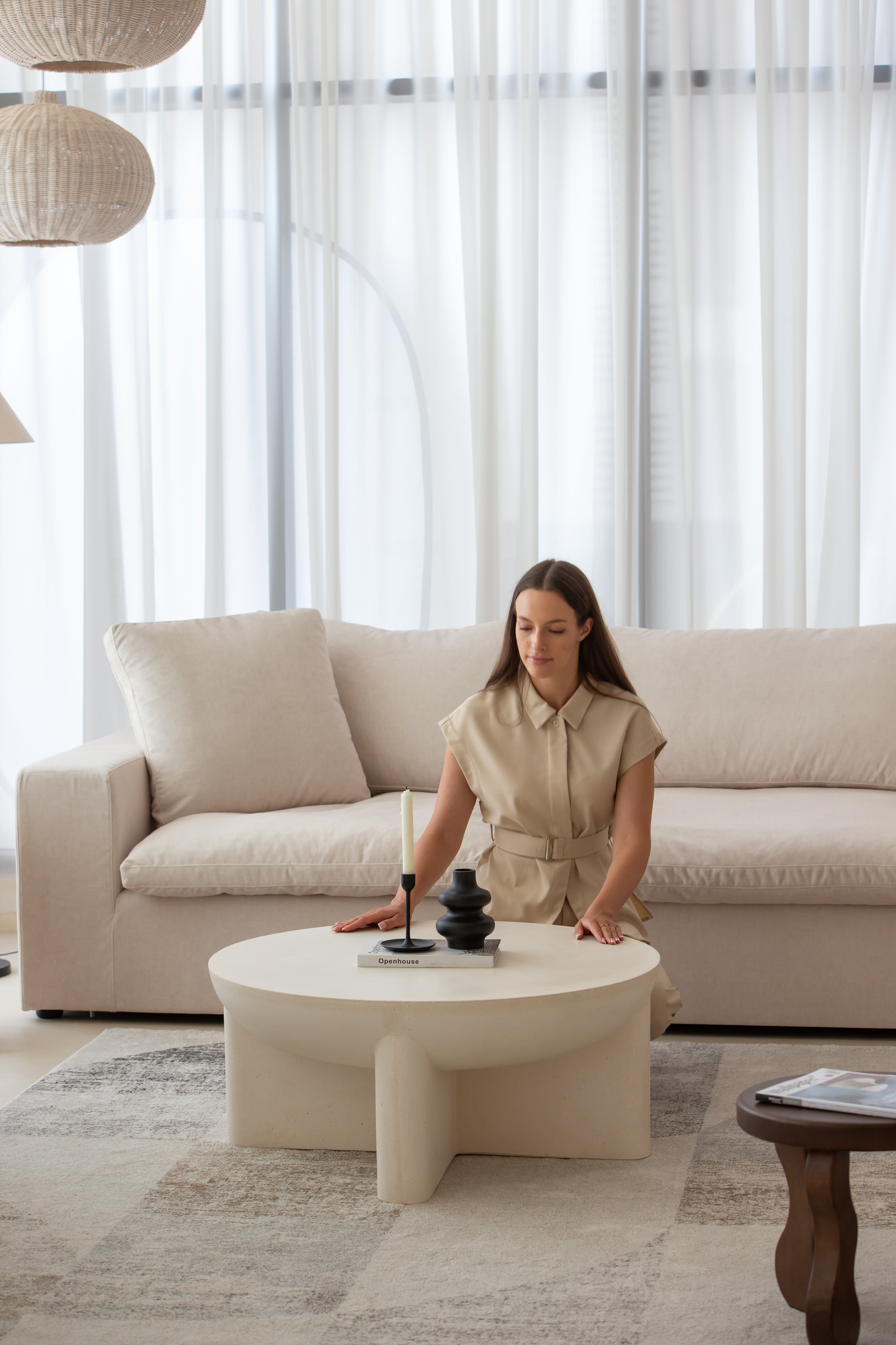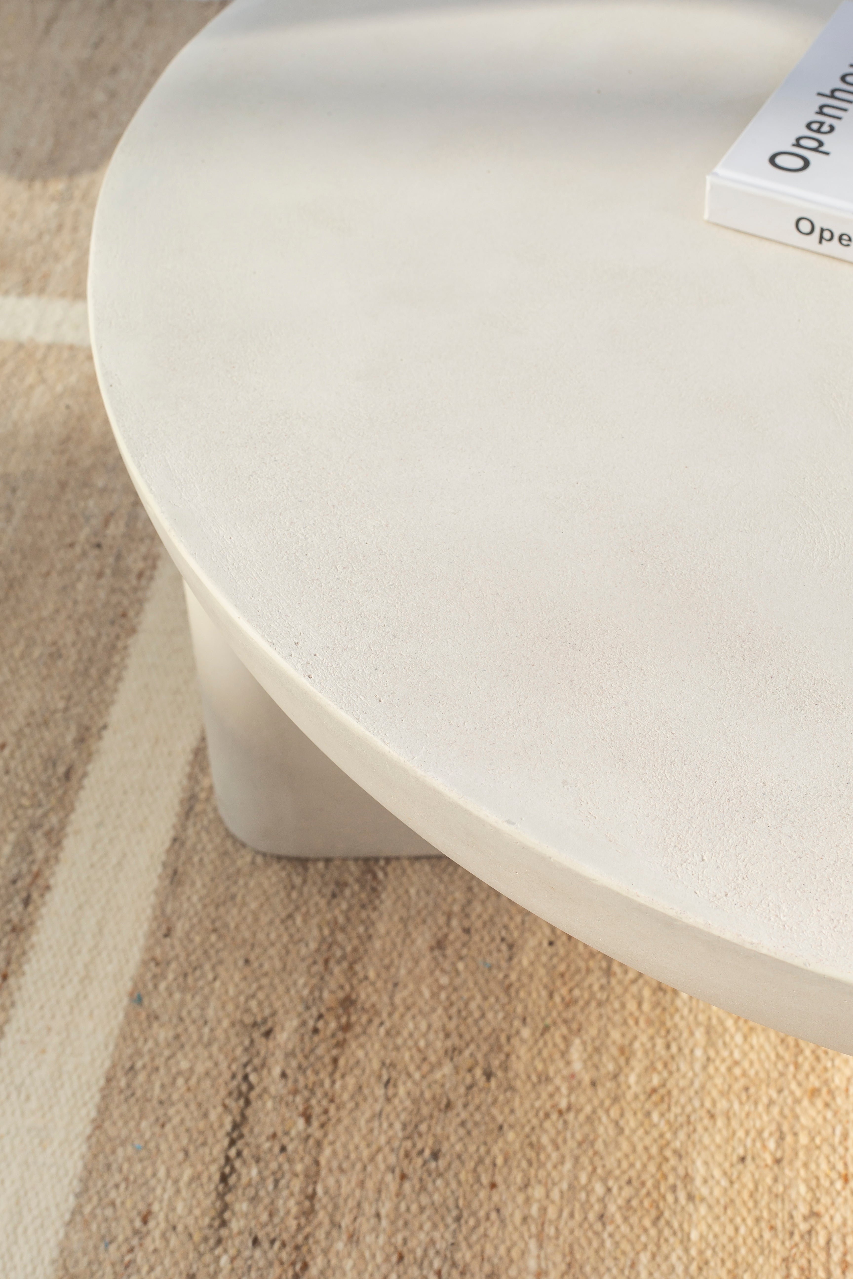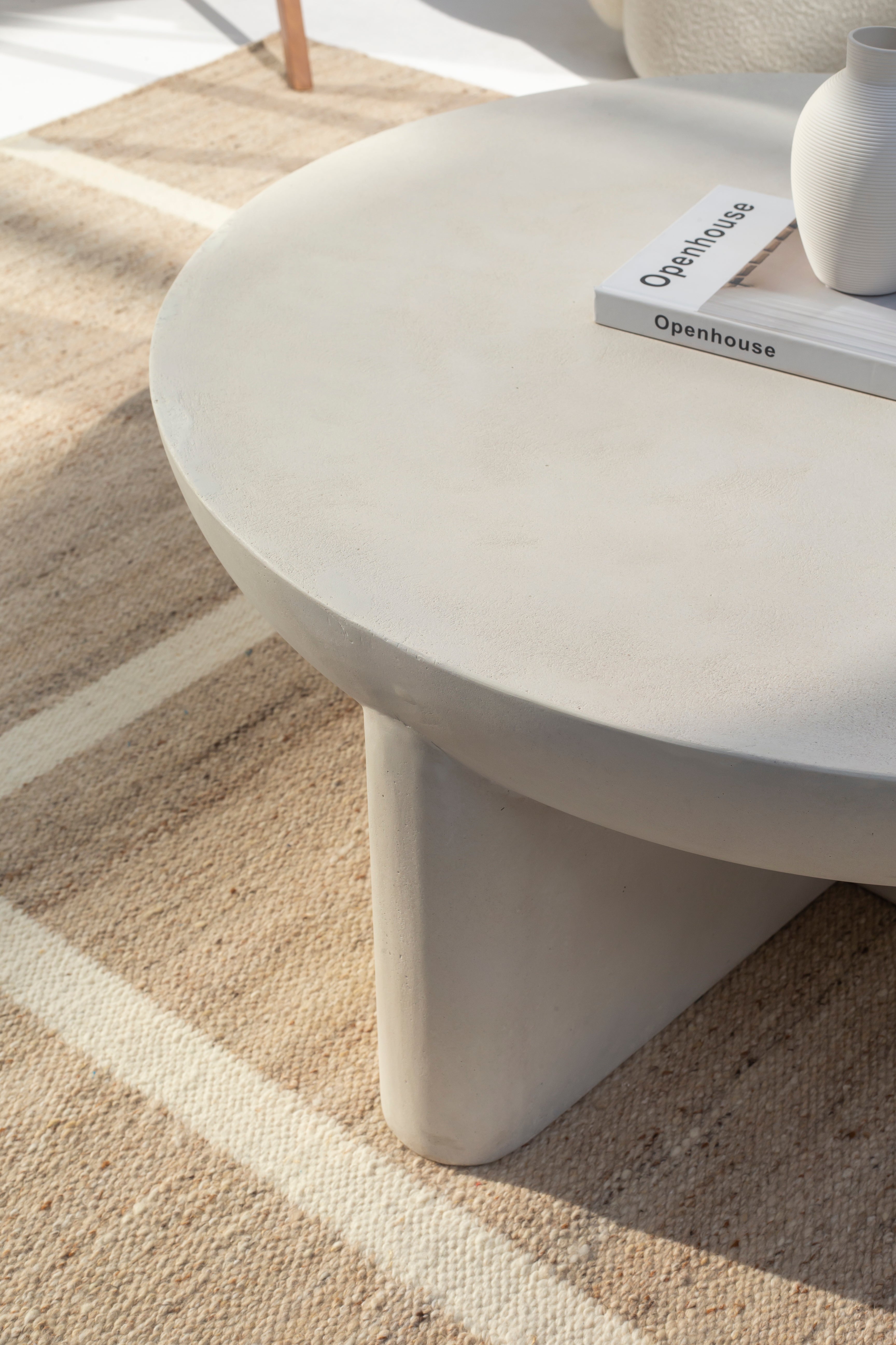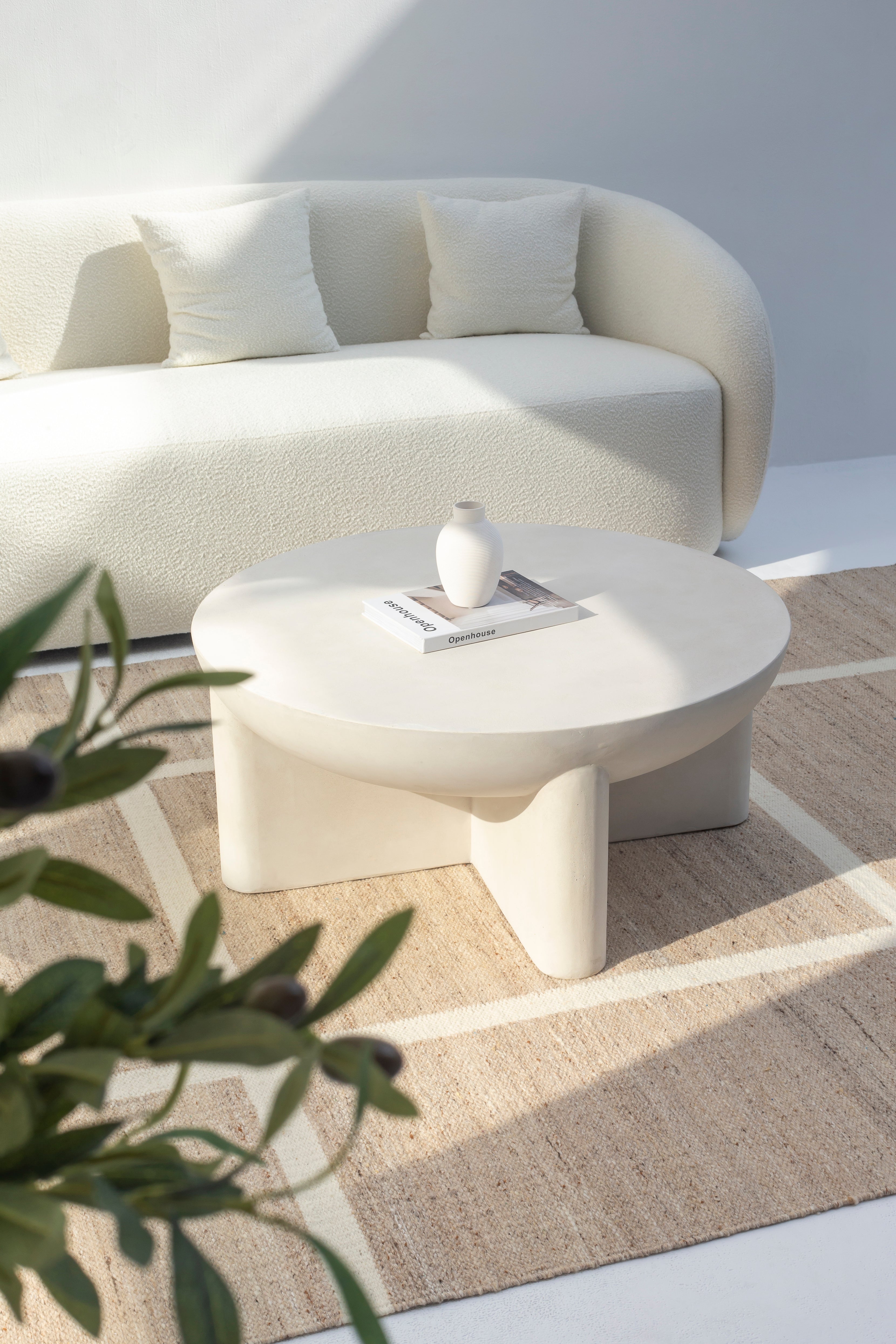 The Morrison Cream Concrete Coffee Table exudes modern minimalism with its rounded top and sculptural base, creating a bold, architectural statement for any living space. The smooth cream-toned GRC (Glass Reinforced Concrete) surface showcases a refined texture, bringing a touch of contemporary elegance while maintaining unmatched durability. Its substantial, geometric legs add structural balance and artistic appeal, making it a focal point for gatherings or serene lounging.