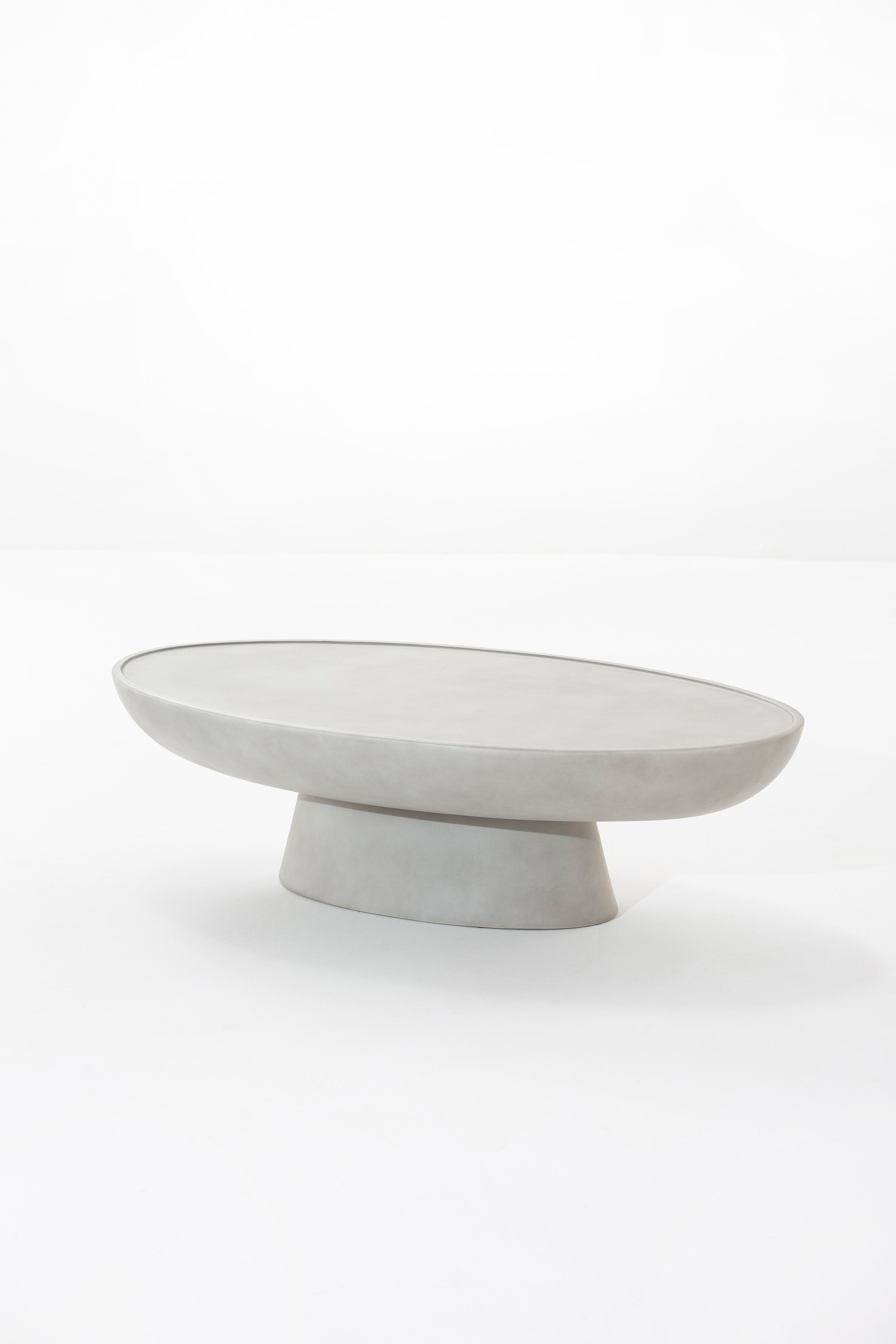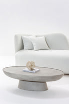 Elevate your living space with this sculptural, modern concrete coffee table. Featuring a soft oval silhouette and a sleek, smooth surface, this centerpiece table blends minimalist aesthetics with industrial charm. The hand-finished concrete body provides durability and a timeless appeal, making it a versatile addition to both modern and Scandinavian interiors. Its low-profile base ensures stability, while the neutral tone complements a wide range of color palettes. Whether placed in front of a plush boucle sofa or atop a textured rug, this table creates a serene focal point in any setting. Ideal for design-forward homes, boutique hotels, and curated interiors.