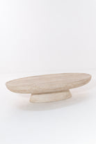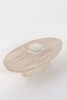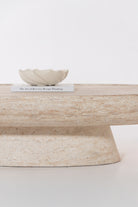 The Vista Travertine-Finish Concrete Coffee Table features a smooth, elongated oval top and an elegant pedestal base, crafted for modern sophistication. The travertine-inspired finish offers warm, earthy tones and a textured surface, capturing the timeless allure of natural stone. This table's seamless curves and balanced proportions create a refined focal point, ideal for contemporary and transitional living spaces.