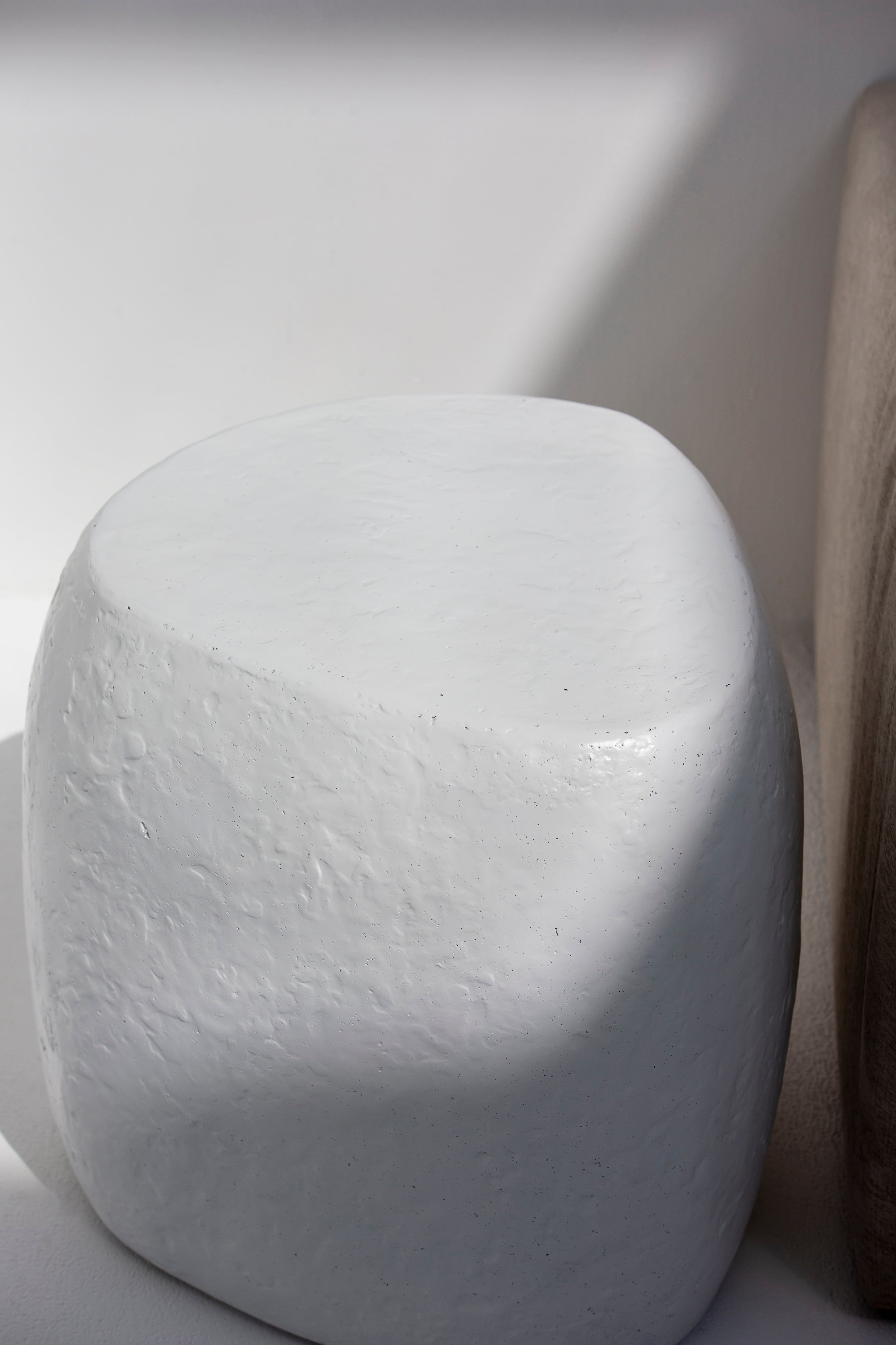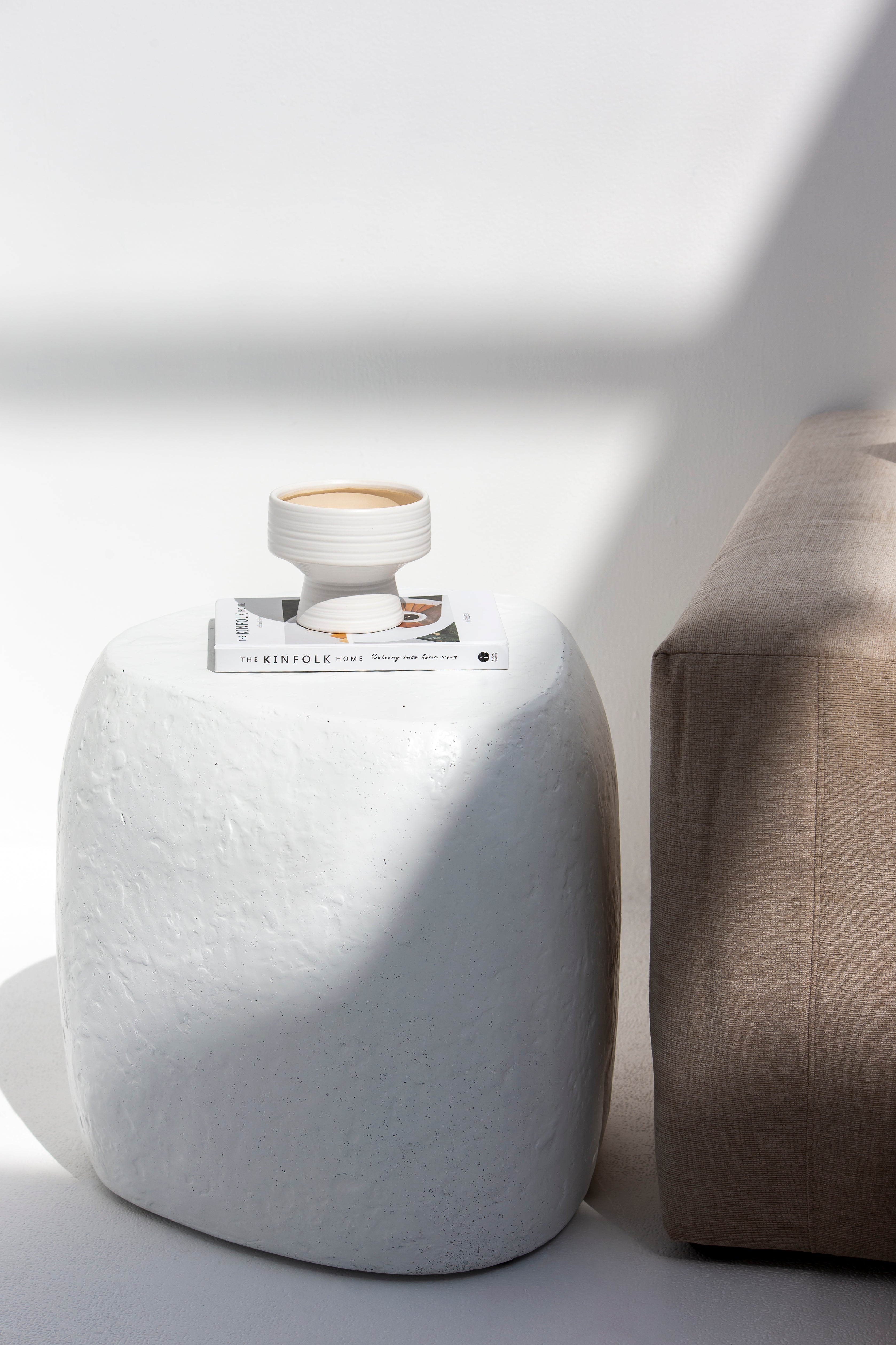 The Sandra White Concrete Side Table blends form and function with its sculpted, organic shape and crisp white finish. Its curved silhouette exudes minimalist charm, while the hand-applied textured surface adds depth and visual intrigue. Ideal for modern and contemporary settings, this side table serves as a versatile accent piece, effortlessly elevating living rooms, bedrooms, or outdoor spaces with its clean aesthetic.