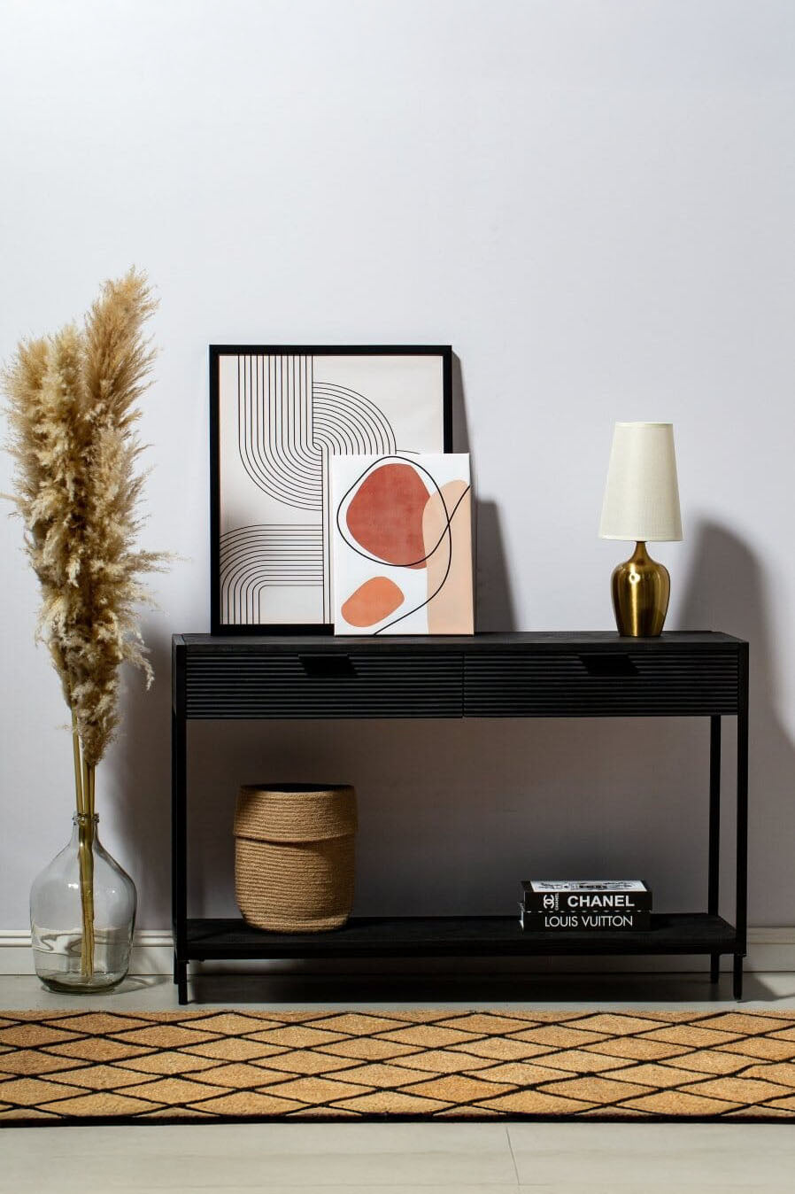 This black two drawer console is ideal for your entrance, hallway, living room, dining room, or bedroom, especially if you're into modern dramatic interiors. This Mango Wooden console will surely fund its ideal space in your home. It is equipped with 2 drawers and an upper and lower surface to place utensils or pretty decorative objects.