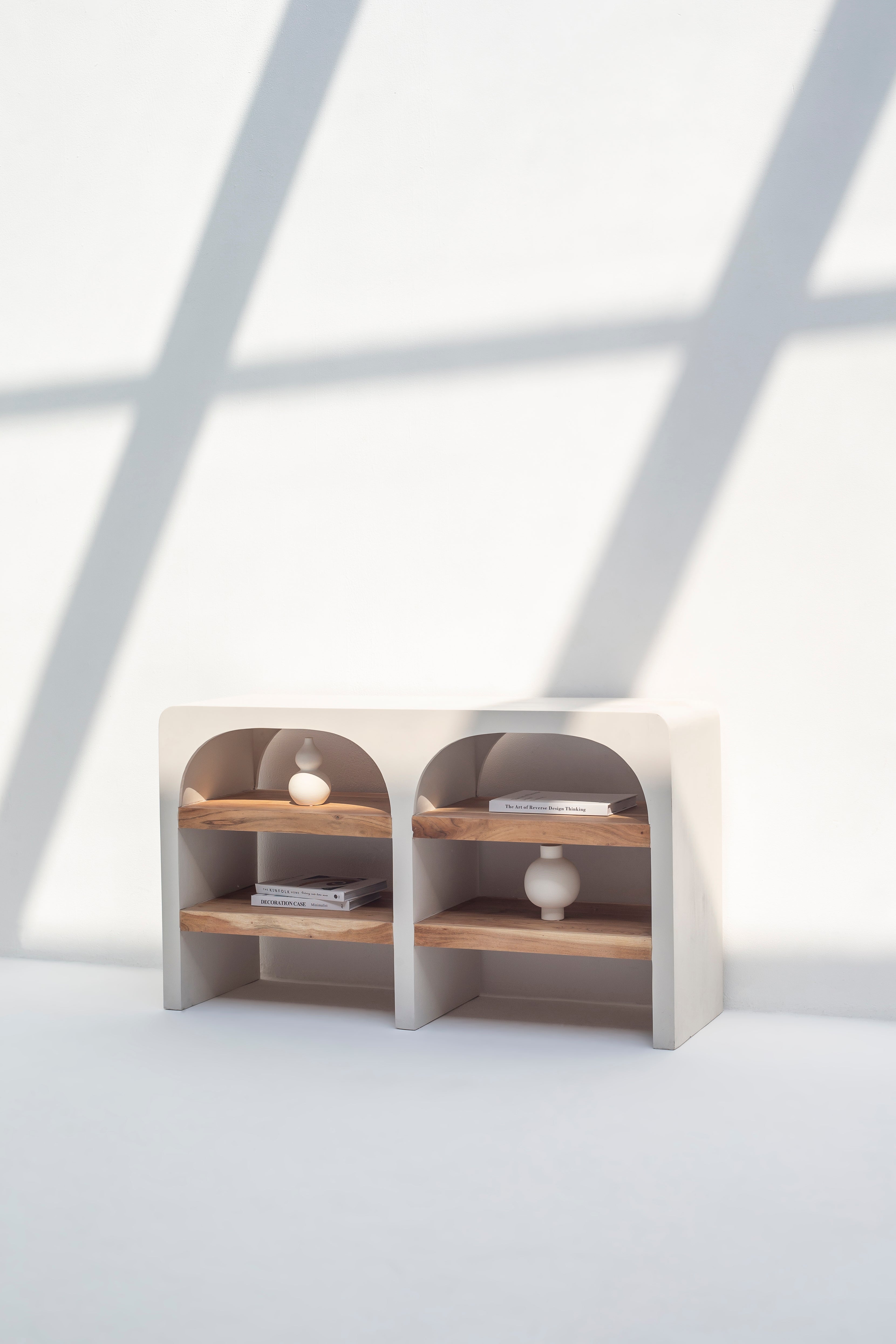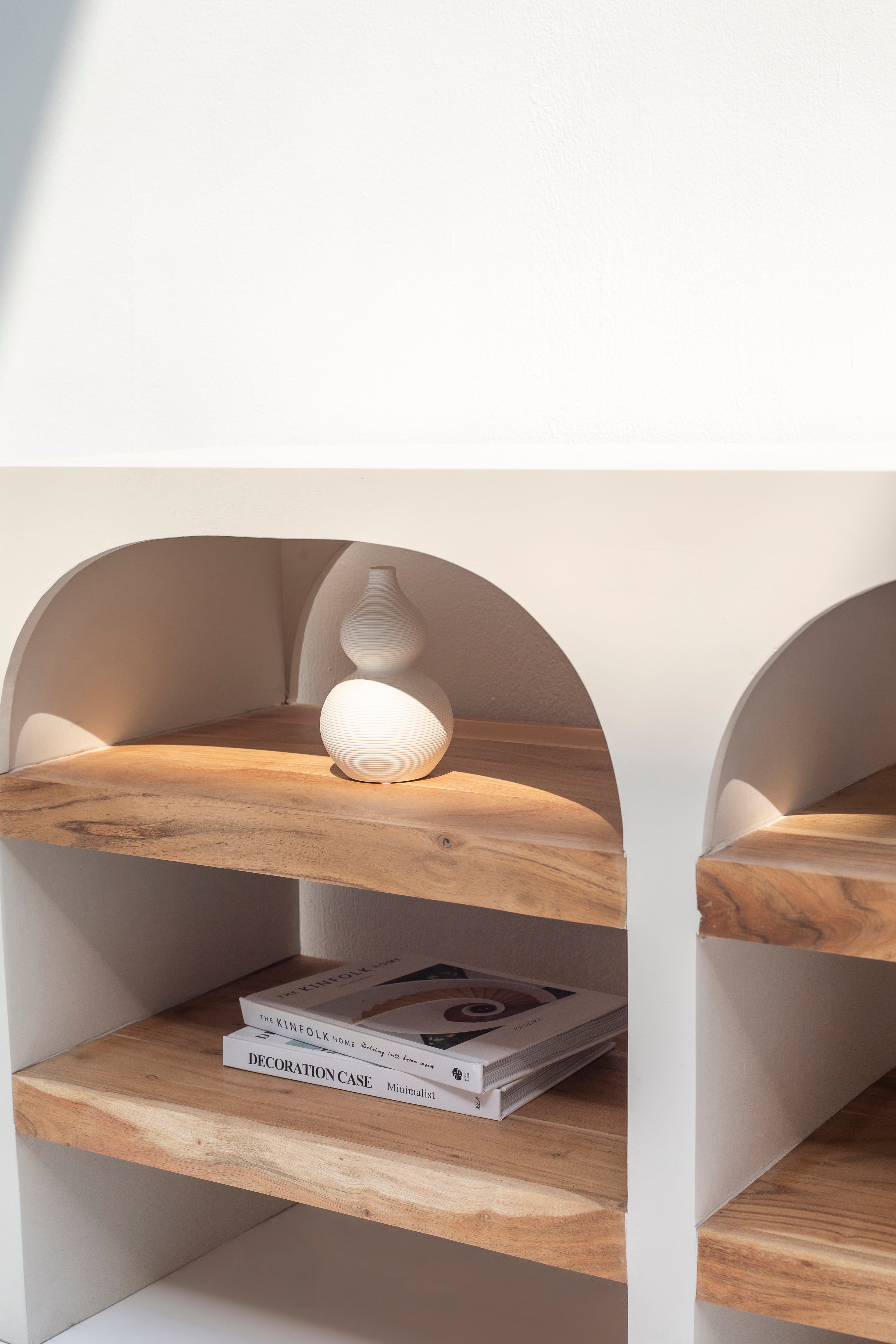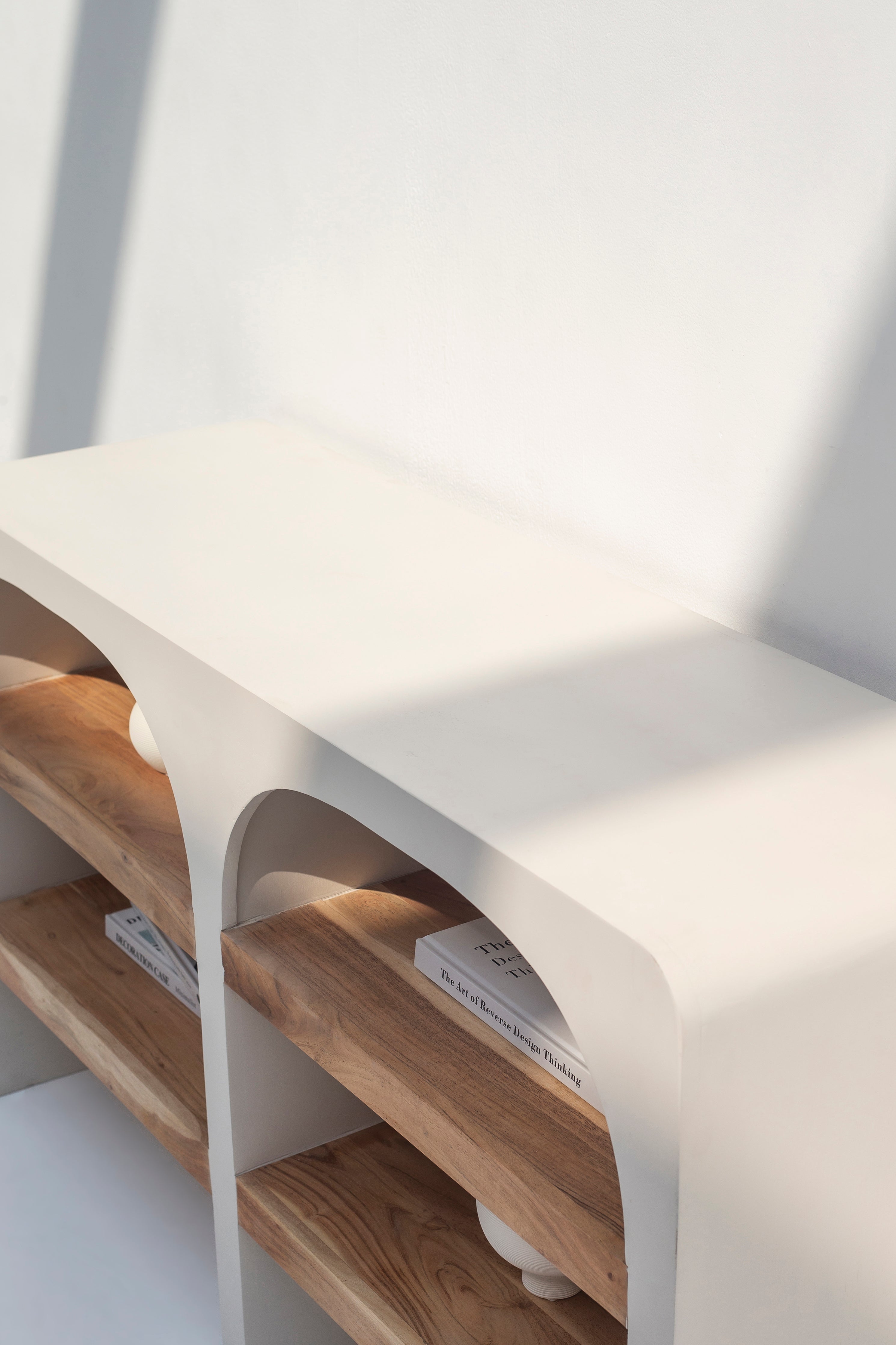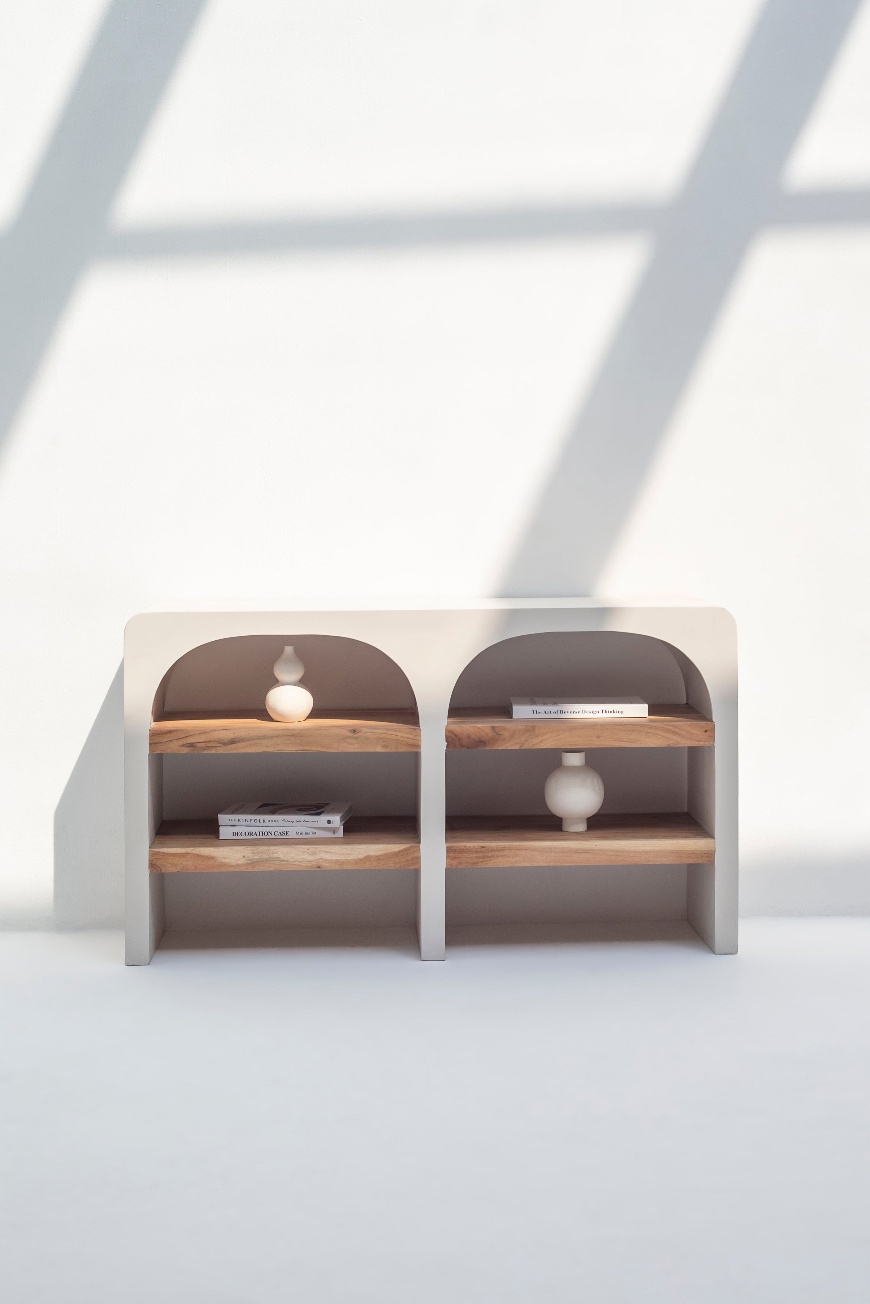 The Violaine Wooden Display Console beautifully combines the natural elegance of acacia wood with a soft, painted frame for a contemporary touch. The warm, natural grain of the wooden shelves contrasts harmoniously with the smooth, painted surface, creating a perfect balance of texture and tone. The arch-shaped openings add a unique design element, offering both functionality and visual interest. Ideal for showcasing books, décor, or cherished pieces, this console brings modern sophistication to any space while celebrating the natural beauty of acacia wood.