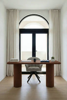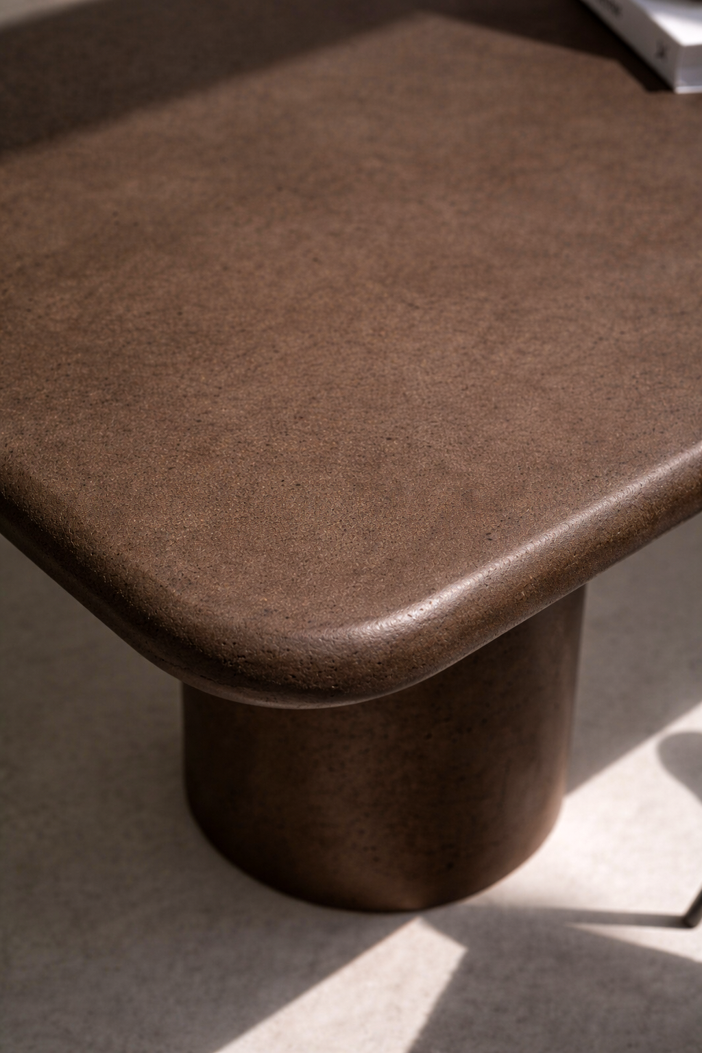 Crafted in a rich mocha toned microconcrete to bring a warm, architectural statement to your home office or creative studio. The deep mocha hue adds a sense of depth and sophistication, while the subtle natural texturing creates a beautifully tactile finish that feels both refined and timeless. Supported by cylindrical pillar legs and finished with a smooth, rounded edge top, it delivers effortless minimalist style with a grounded, gallery worthy presence.