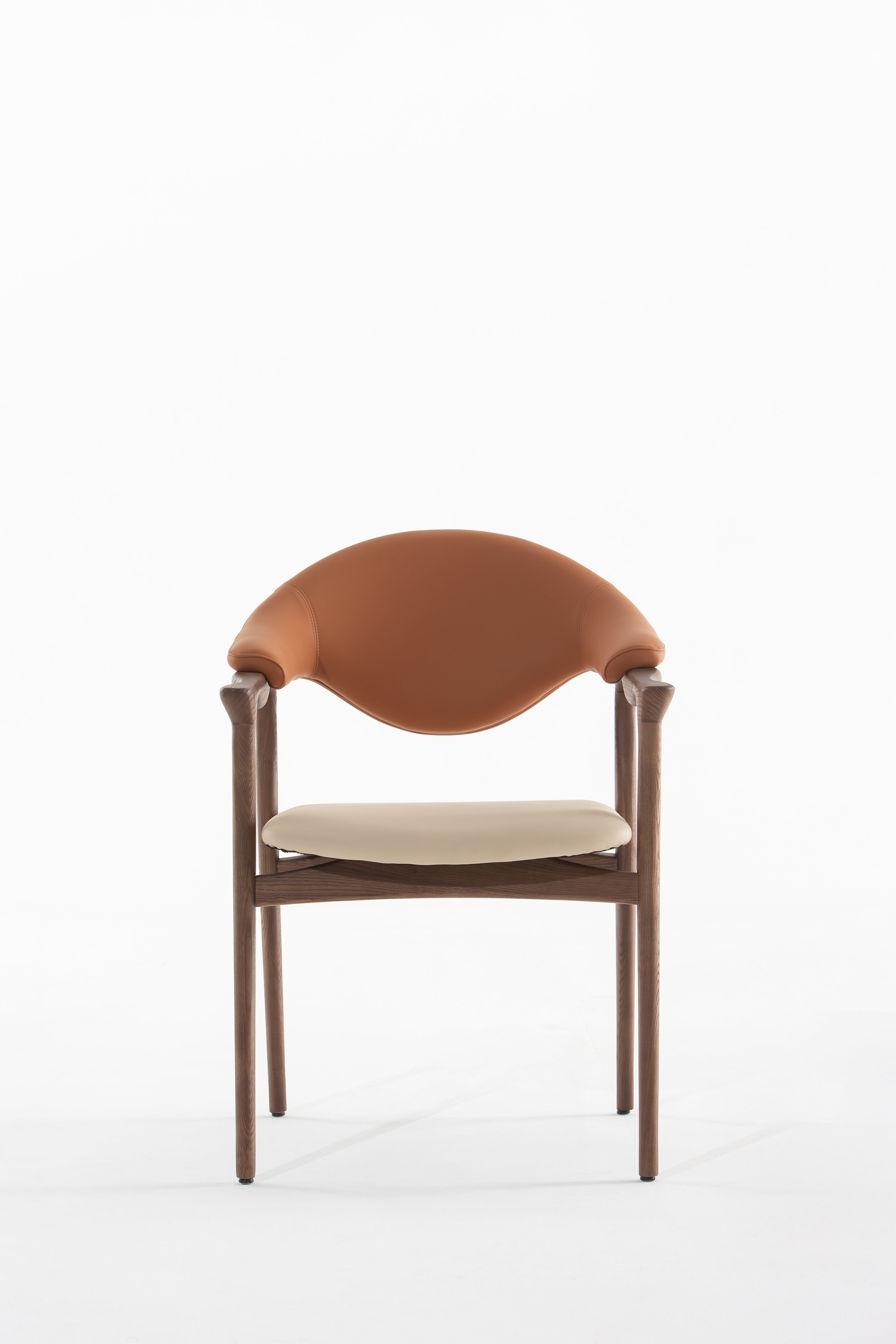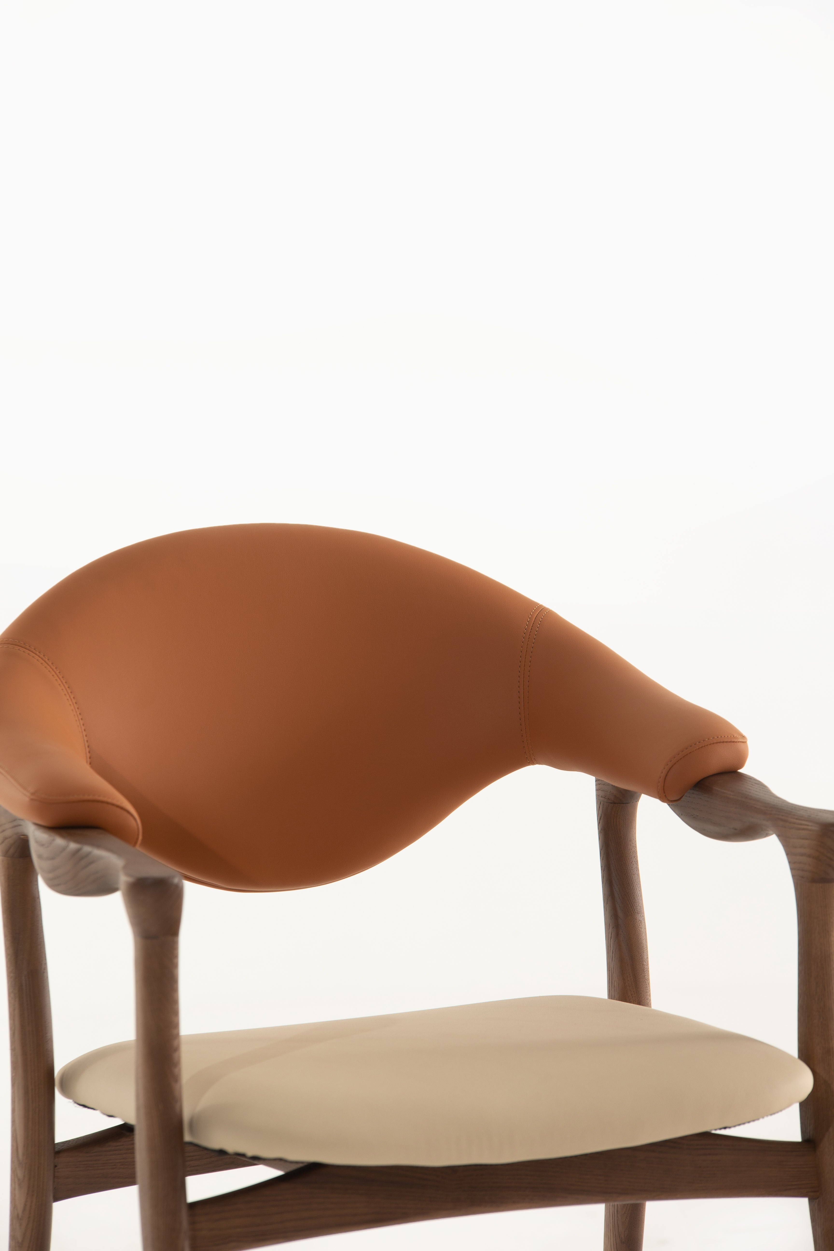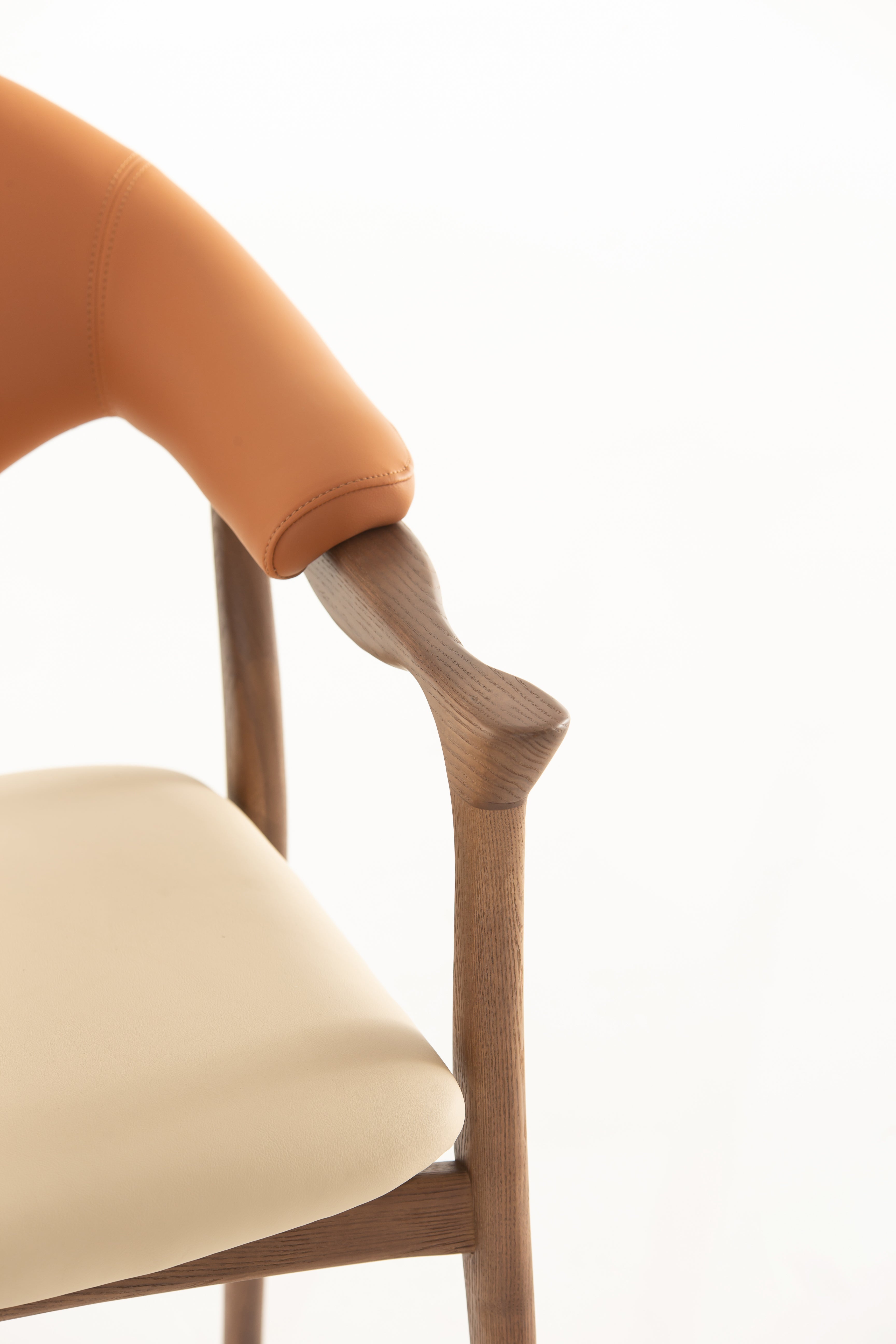 Designed to elevate your dining space, this chair features a sculpted wooden frame that seamlessly blends with its dual-tone microfiber upholstery. The smooth curves of the backrest embrace you in comfort, while the rich textures create a refined contrast. A fusion of elegance and durability, it’s the perfect addition to modern interiors.