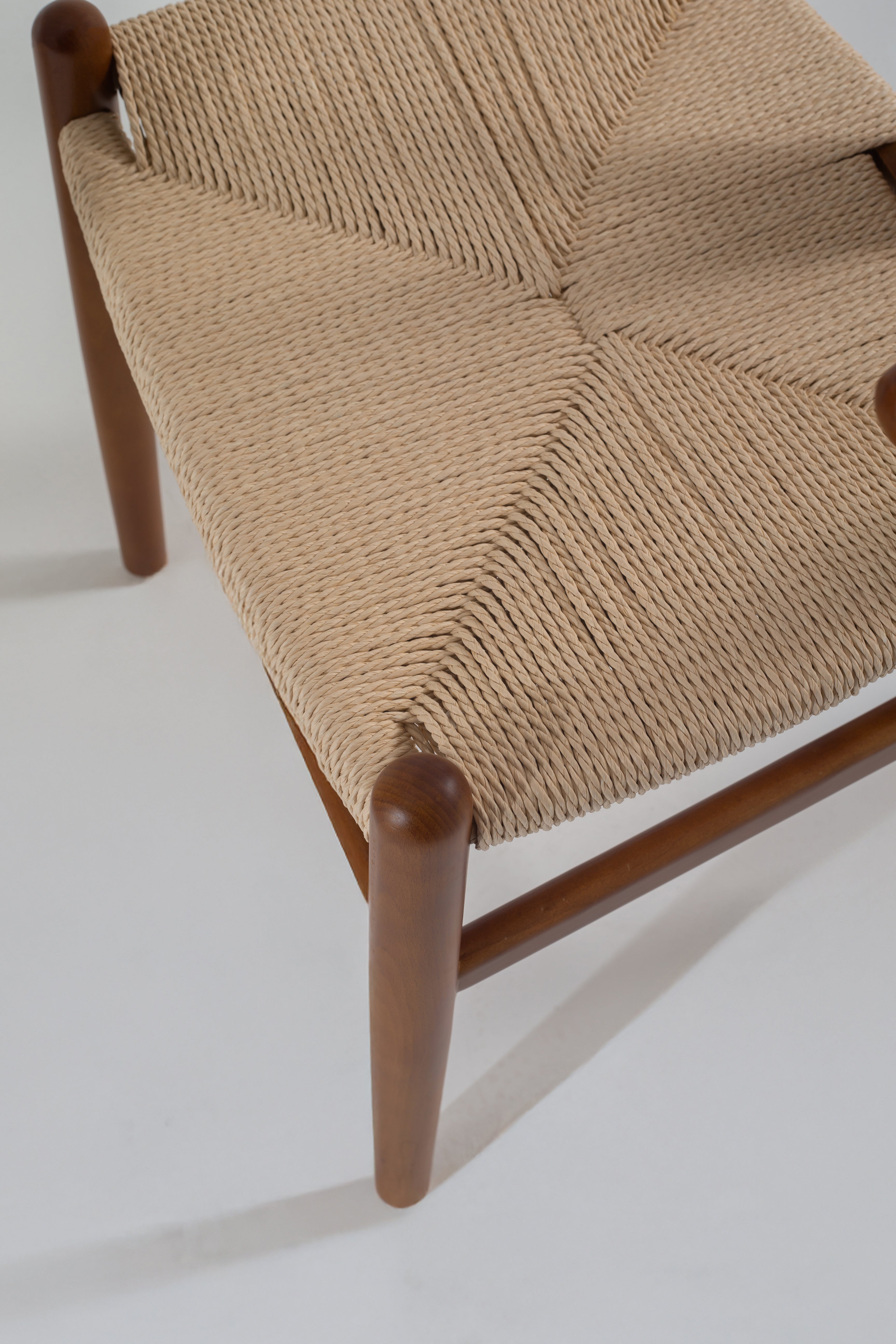 A fusion of craftsmanship and elegance, this dining chair is designed to enhance your dining space with organic charm. The curved wooden frame showcases smooth, sculpted lines, while the woven rope seat adds depth and texture for a timeless appeal. Its ergonomic backrest ensures comfort, while the sturdy construction makes it a lasting addition to any dining setup. Ideal for modern, Scandinavian, and rustic interiors, this chair seamlessly blends durability with style.