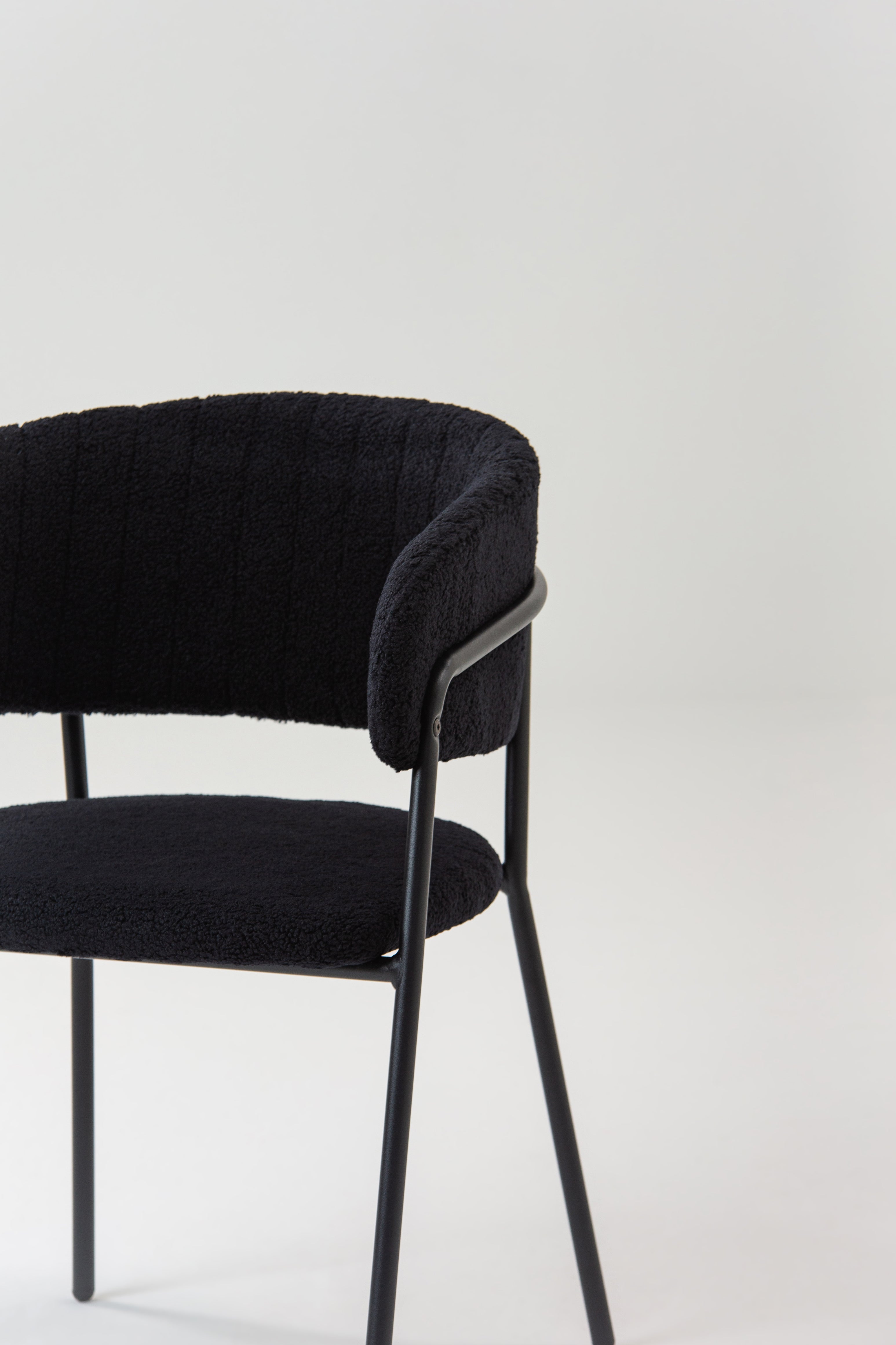 You deserve a dining chair that’s as stylish as it is inviting. Wrapped in rich black bouclé, this chair’s curved backrest and plush seat bring a refined yet cozy feel to your dining space. The sleek, powder-coated metal frame adds a modern edge, while the subtly padded armrests offer a touch of comfort. Whether you're hosting guests or enjoying everyday meals, this elegant chair transforms your dining area into a sophisticated setting. Perfect for contemporary, minimalist, or monochrome interiors, it’s the statement piece your space has been waiting for.