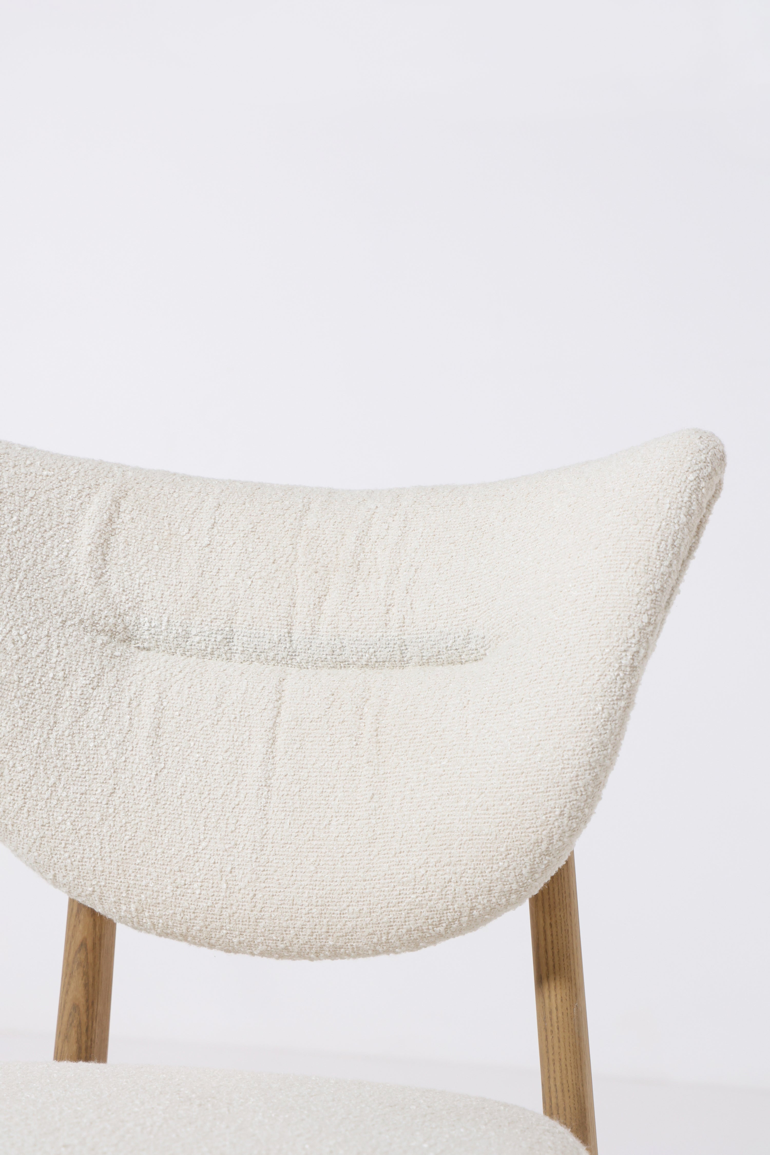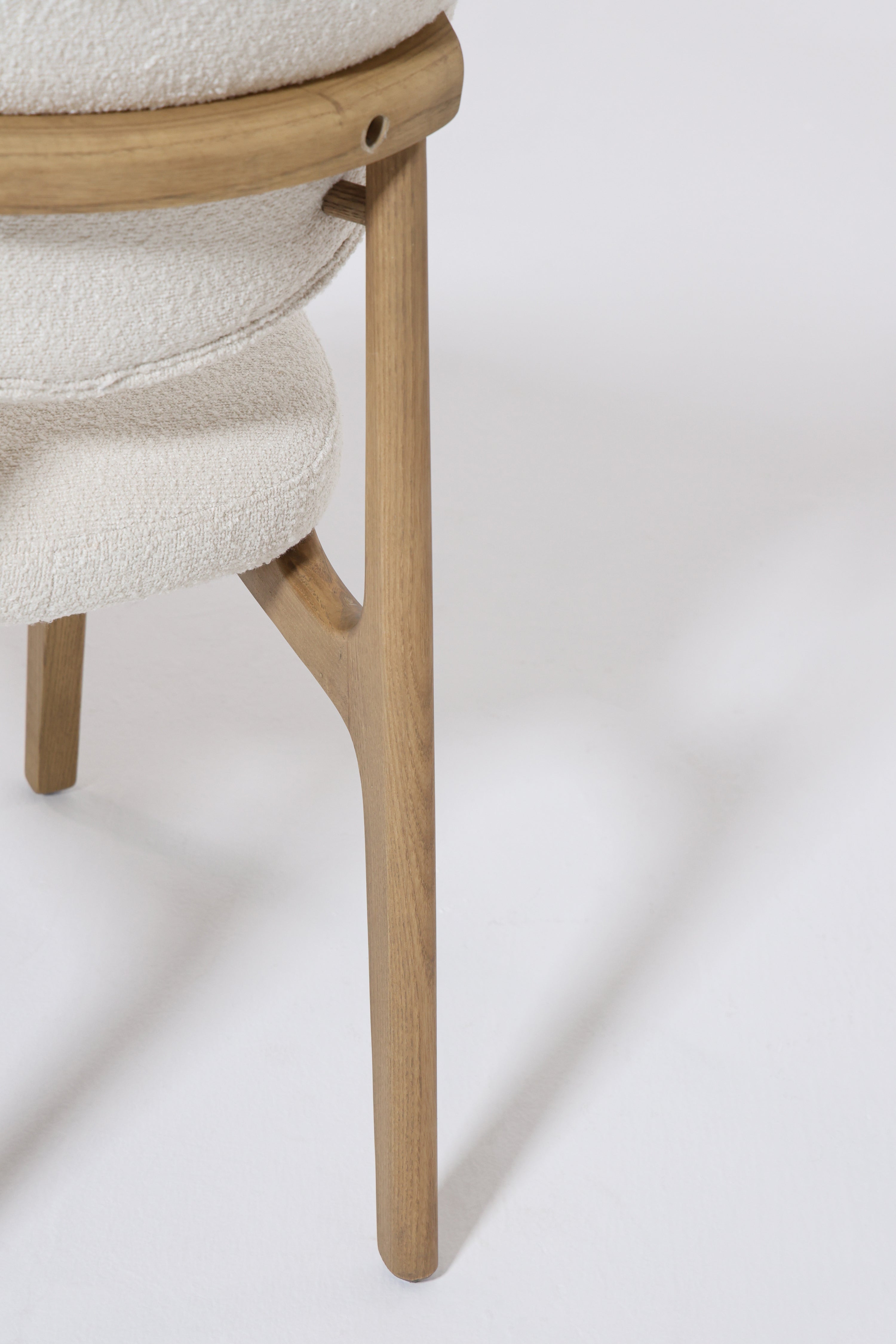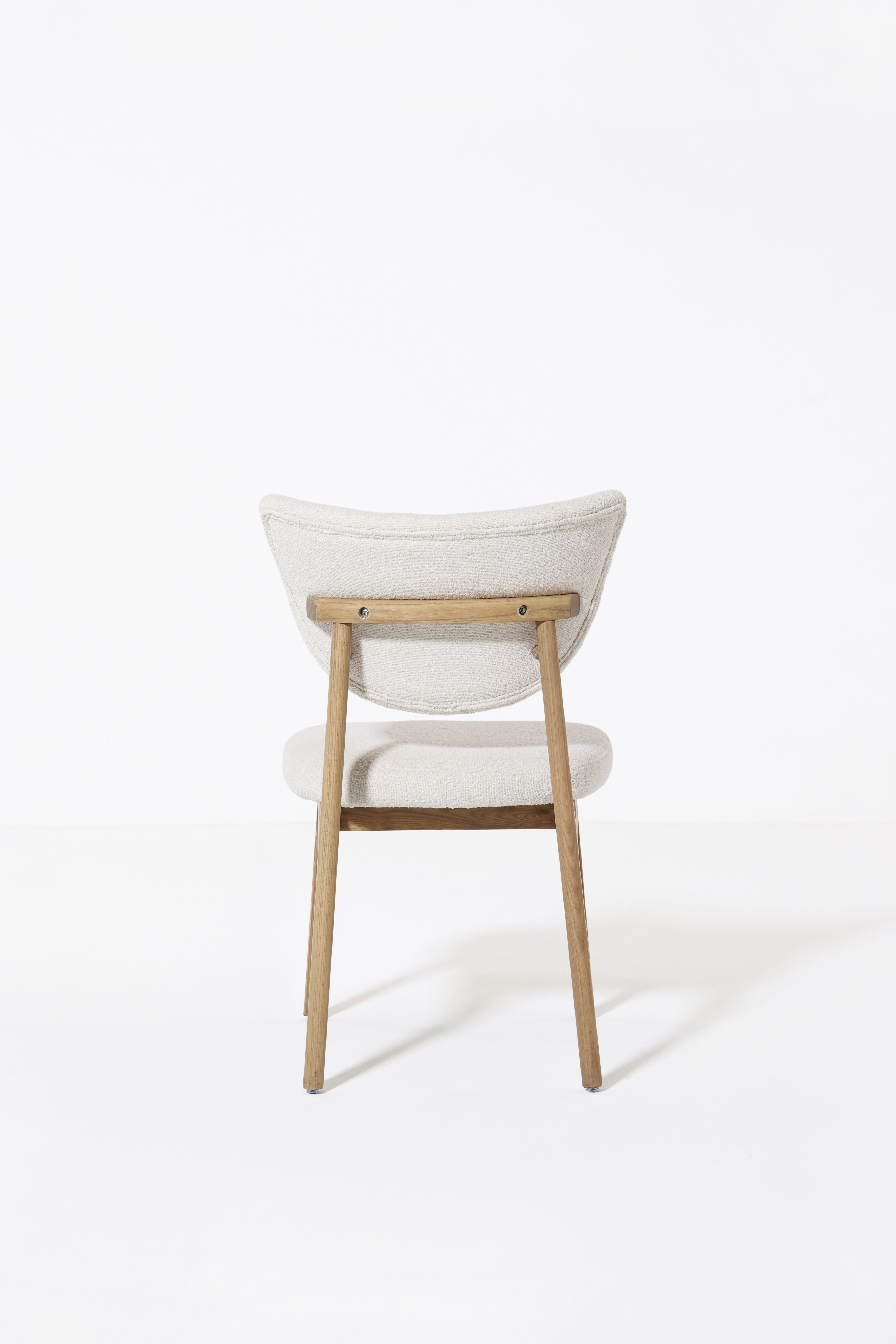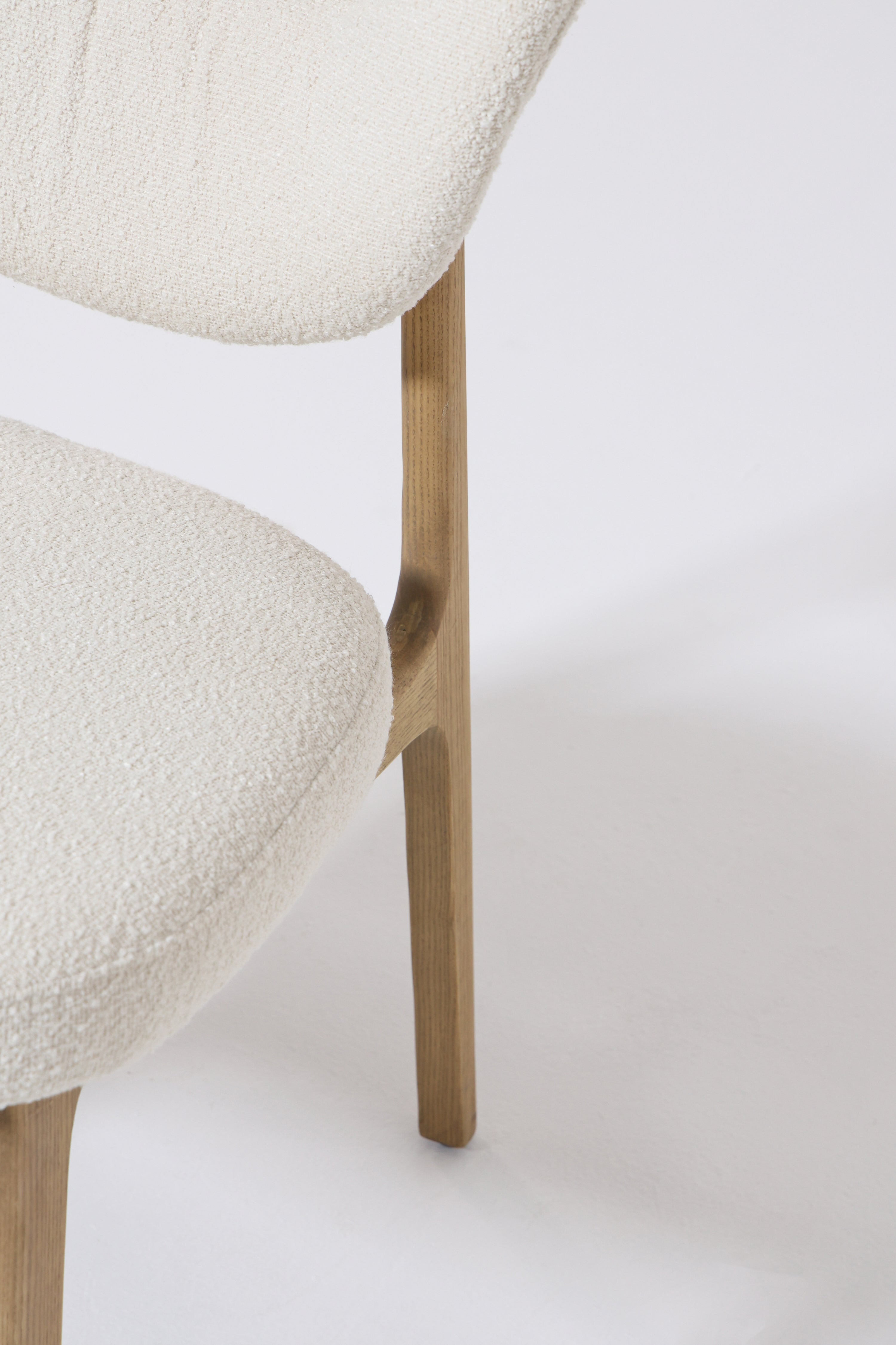Bring elegance and comfort to your dining space with a chair designed to blend modern minimalism and timeless warmth. The natural wooden frame in a light oak finish showcases clean, sculpted lines, while the upholstered seat and curved backrest in soft off-white fabric provide support and sophistication. Its refined silhouette and versatile neutral tones make it the perfect companion for both contemporary and classic interiors, transforming every meal into a stylish experience.