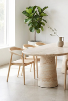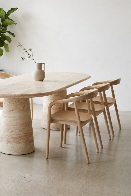 Crafted in a smooth natural wood finish, this dining chair features a beautifully curved backrest and arm frame that flows seamlessly into its slender legs, creating a clean sculptural silhouette inspired by minimalist Japanese design. The gently contoured wooden seat offers comfortable support, while the light organic tone highlights the natural grain and craftsmanship of the wood. With its airy profile and refined simplicity, it complements modern, Scandinavian, and Japandi interiors, bringing warmth, balance, and everyday functionality to any dining setting.