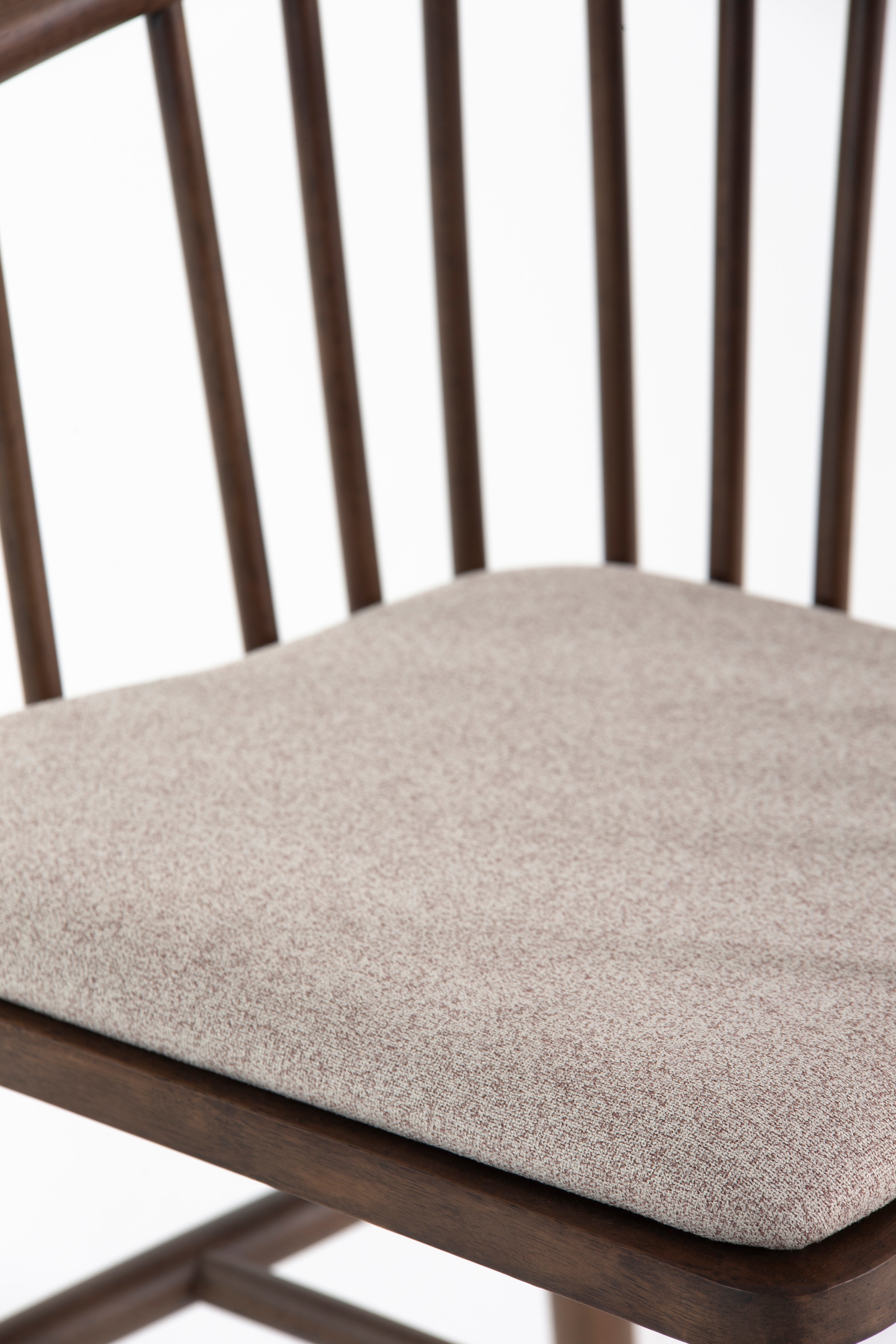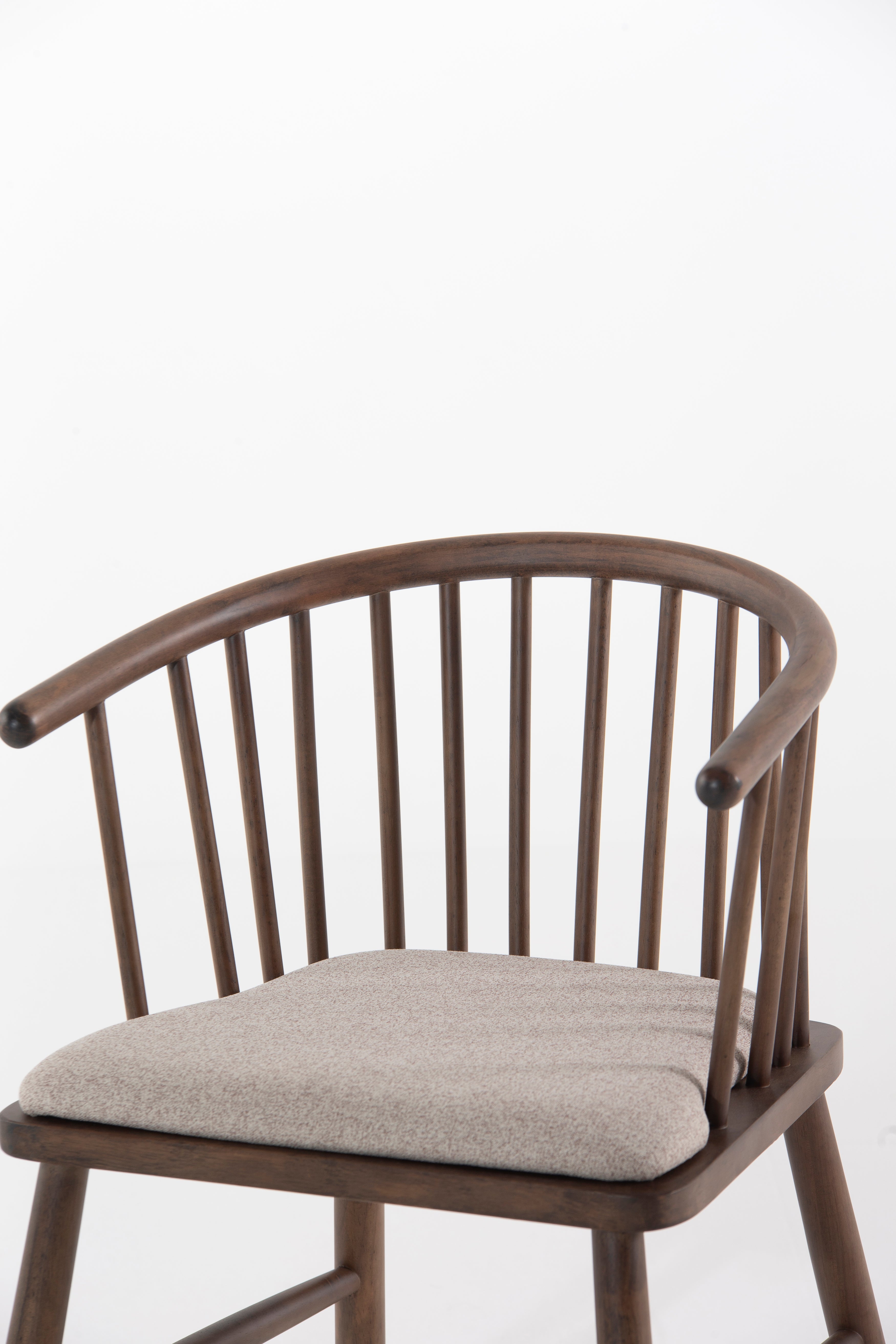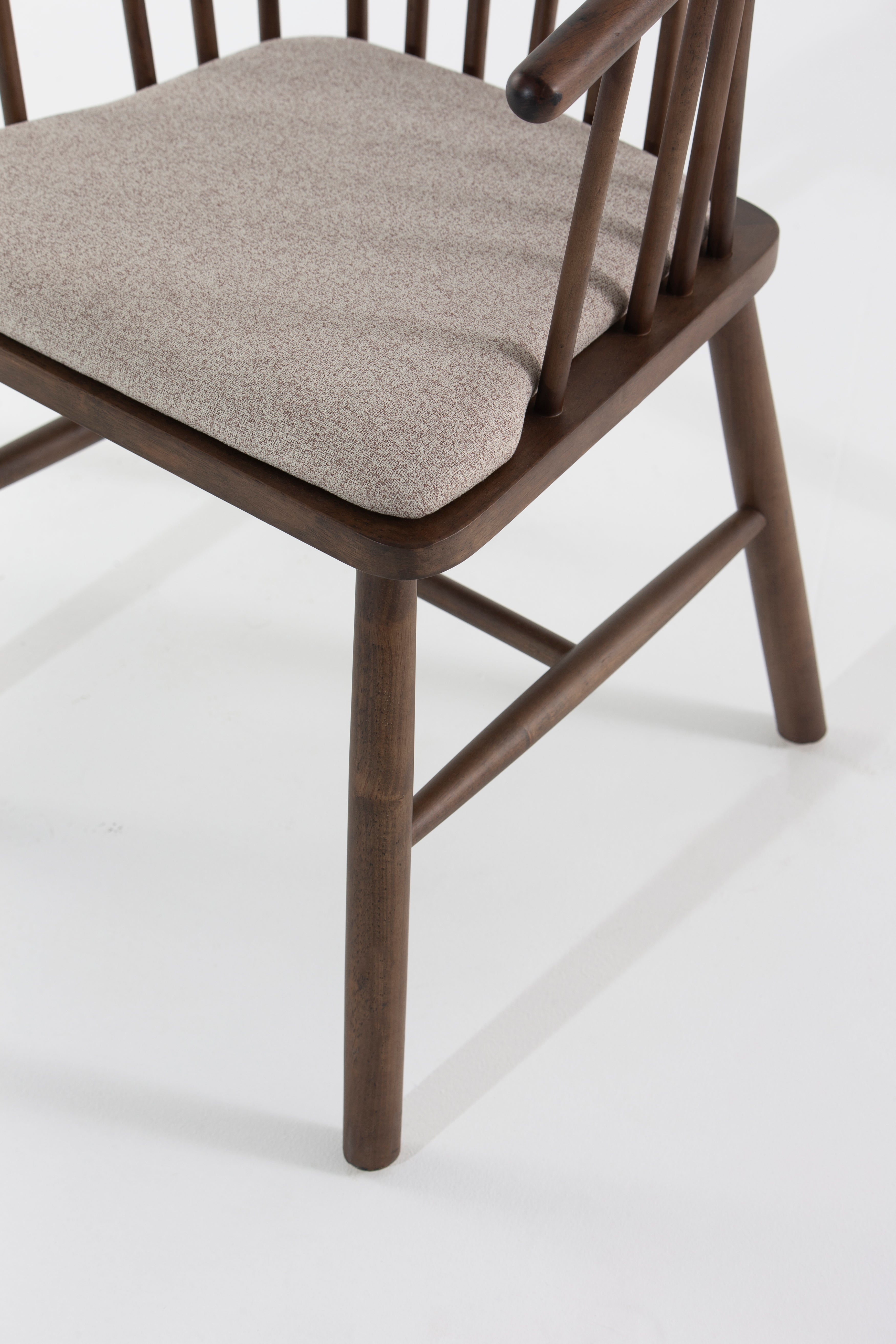 Elevate your dining space with this beautifully crafted dining chair, blending mid-century charm with modern comfort. The curved spindle backrest in rich brown wood offers a timeless aesthetic, while the plush upholstered seat in neutral beige fabric ensures a cozy dining experience. Sturdy wooden legs provide stability, making it a perfect addition to contemporary, rustic, or Scandinavian interiors. Ideal for dining tables or accent seating, this wooden dining chair combines durability, style, and ergonomic design for everyday elegance.