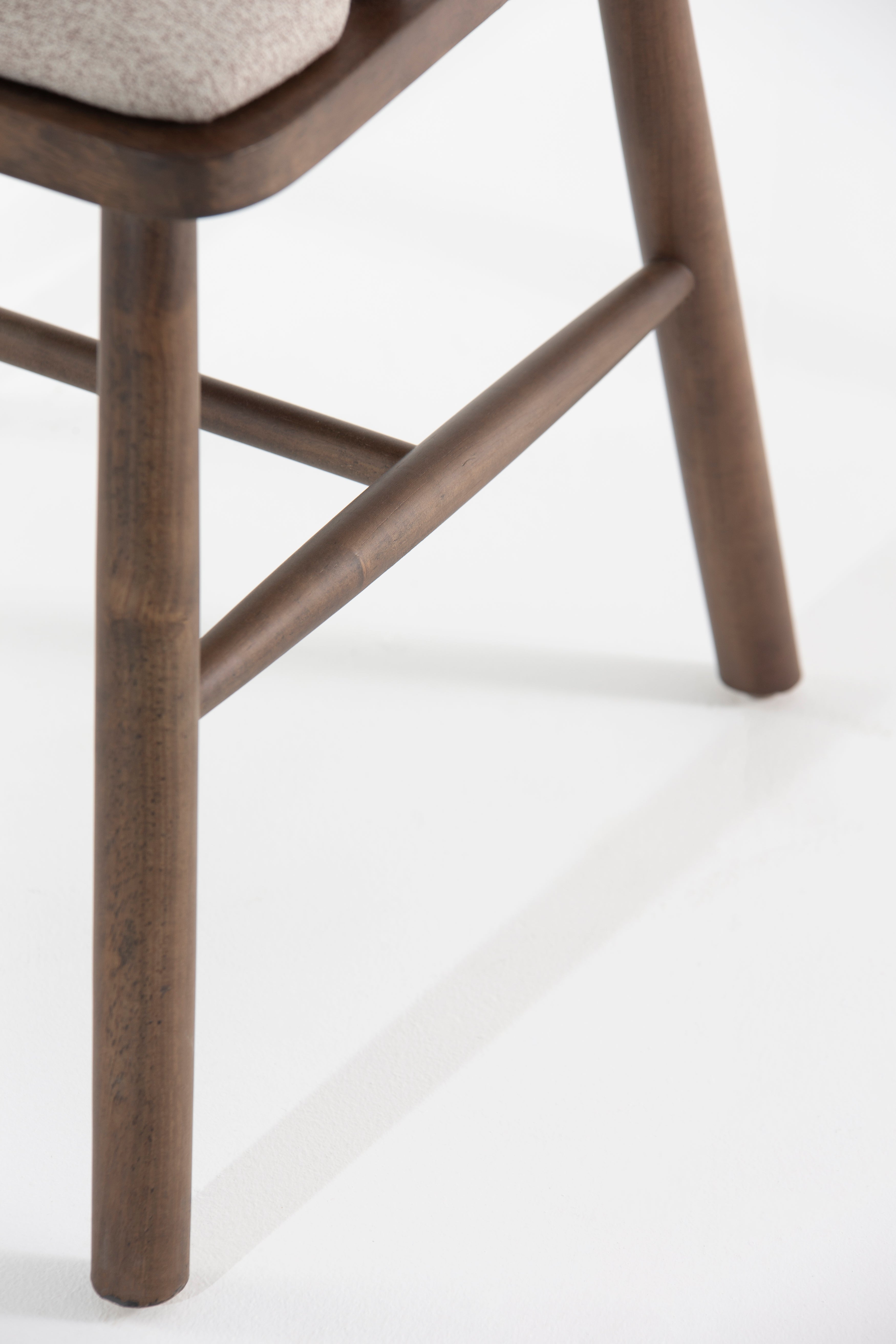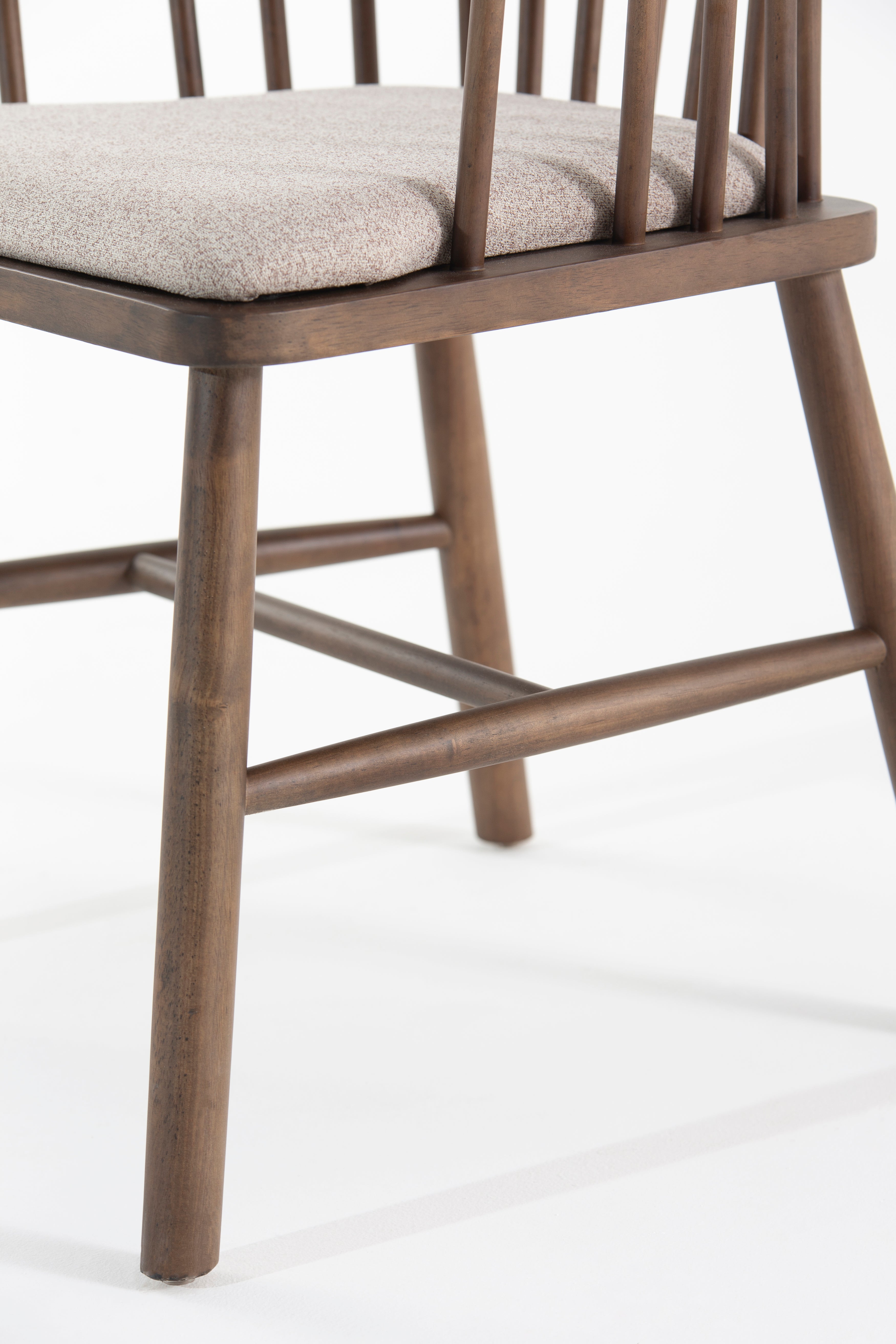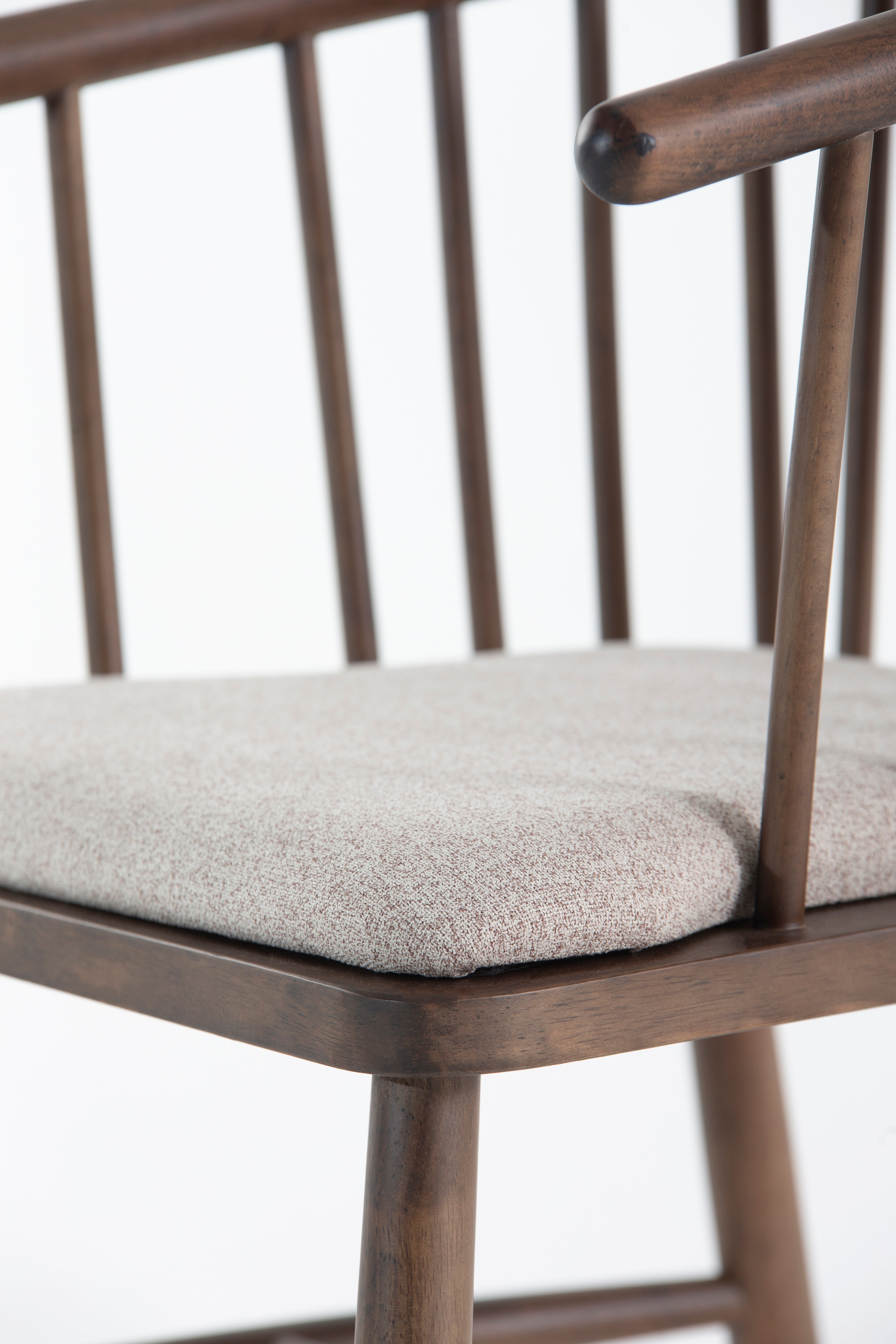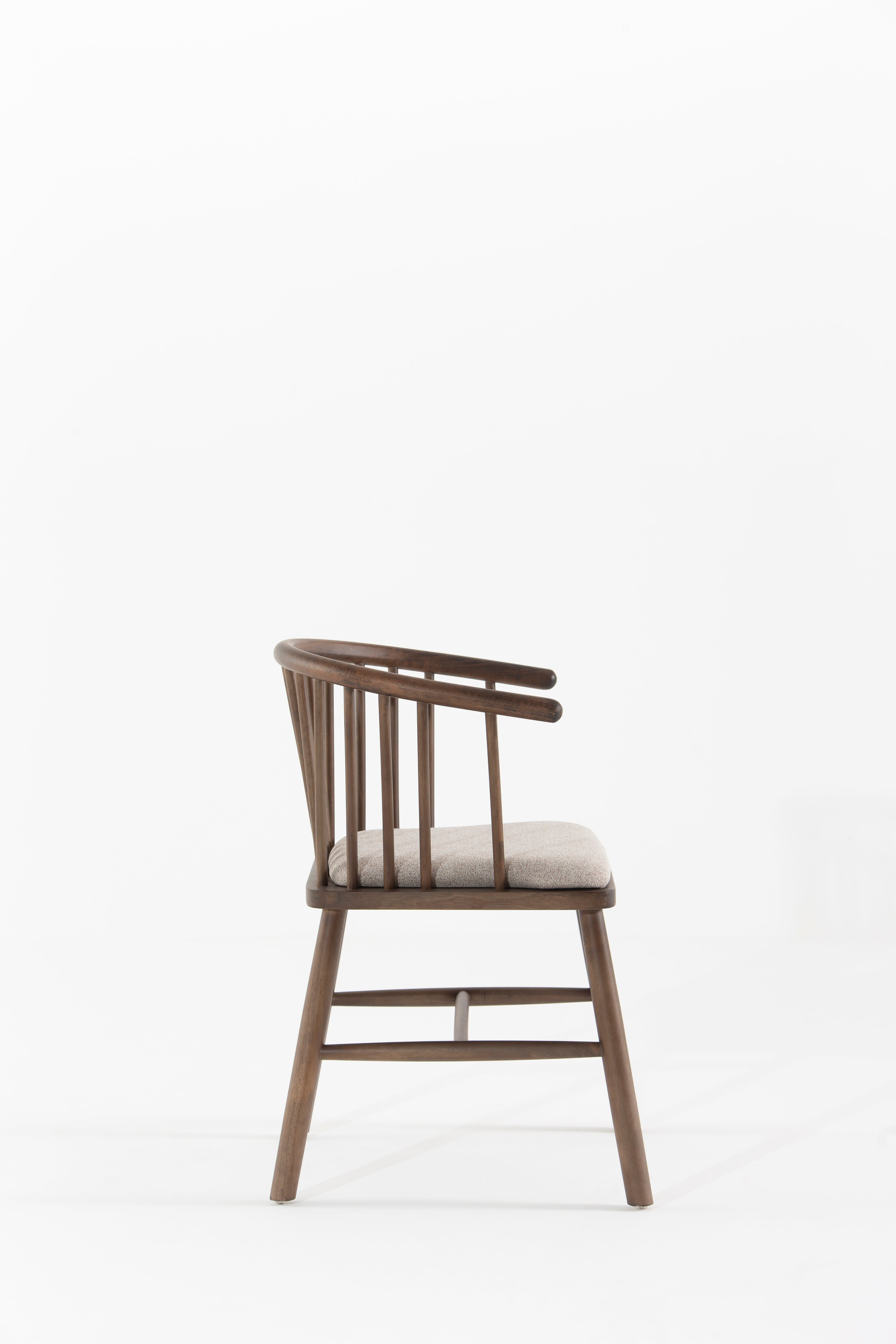 Elevate your dining space with this beautifully crafted dining chair, blending mid-century charm with modern comfort. The curved spindle backrest in rich brown wood offers a timeless aesthetic, while the plush upholstered seat in neutral beige fabric ensures a cozy dining experience. Sturdy wooden legs provide stability, making it a perfect addition to contemporary, rustic, or Scandinavian interiors. Ideal for dining tables or accent seating, this wooden dining chair combines durability, style, and ergonomic design for everyday elegance.