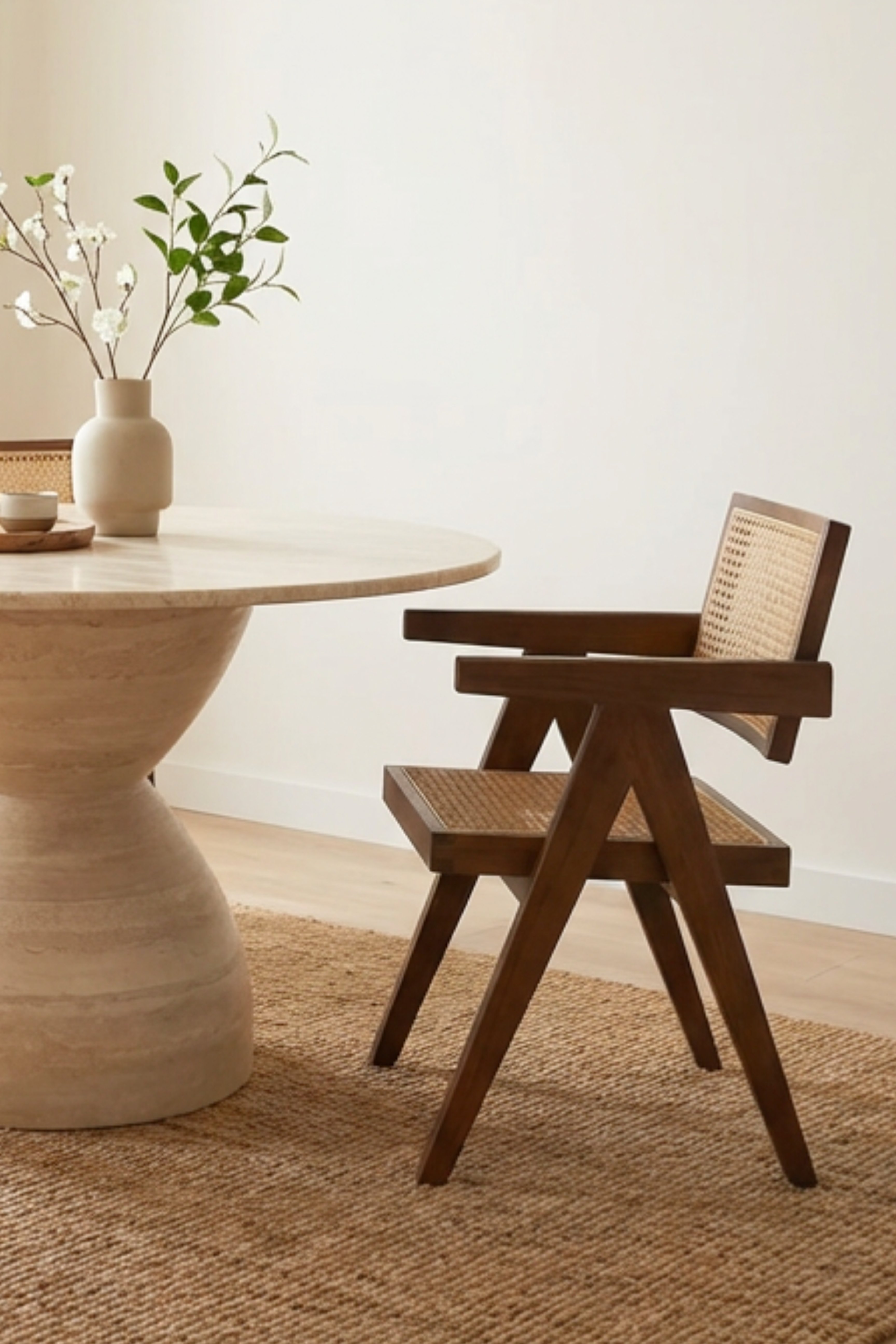 Botanical Accents: Introduce botanical elements such as a vase of fresh flowers or potted plants to bring a touch of nature into your dining space, complementing the organic design of the rattan backrest.