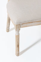 The "Vicky Dining Chair" is complemented by an off-white seating cushion, designed for both style and comfort. The cushion offers a plush surface, inviting you to sit back and indulge in extended meals or engaging conversations with family and friends. The neutral off-white hue complements the wooden frame, effortlessly integrating into different decor themes.