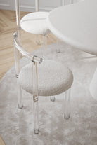 Elevate your dining area with our exquisite Off-White Bouclé Dining Chair, featuring a unique acrylic clear frame with an elegant arch back. This chair seamlessly merges contemporary design with timeless charm. The sumptuous off-white bouclé upholstery not only offers unparalleled comfort but also adds a touch of opulence to your dining space. The clear acrylic frame with its gracefully arched backrest creates a captivating visual impact, blending effortlessly with any interior style while infusing a modern edge.
