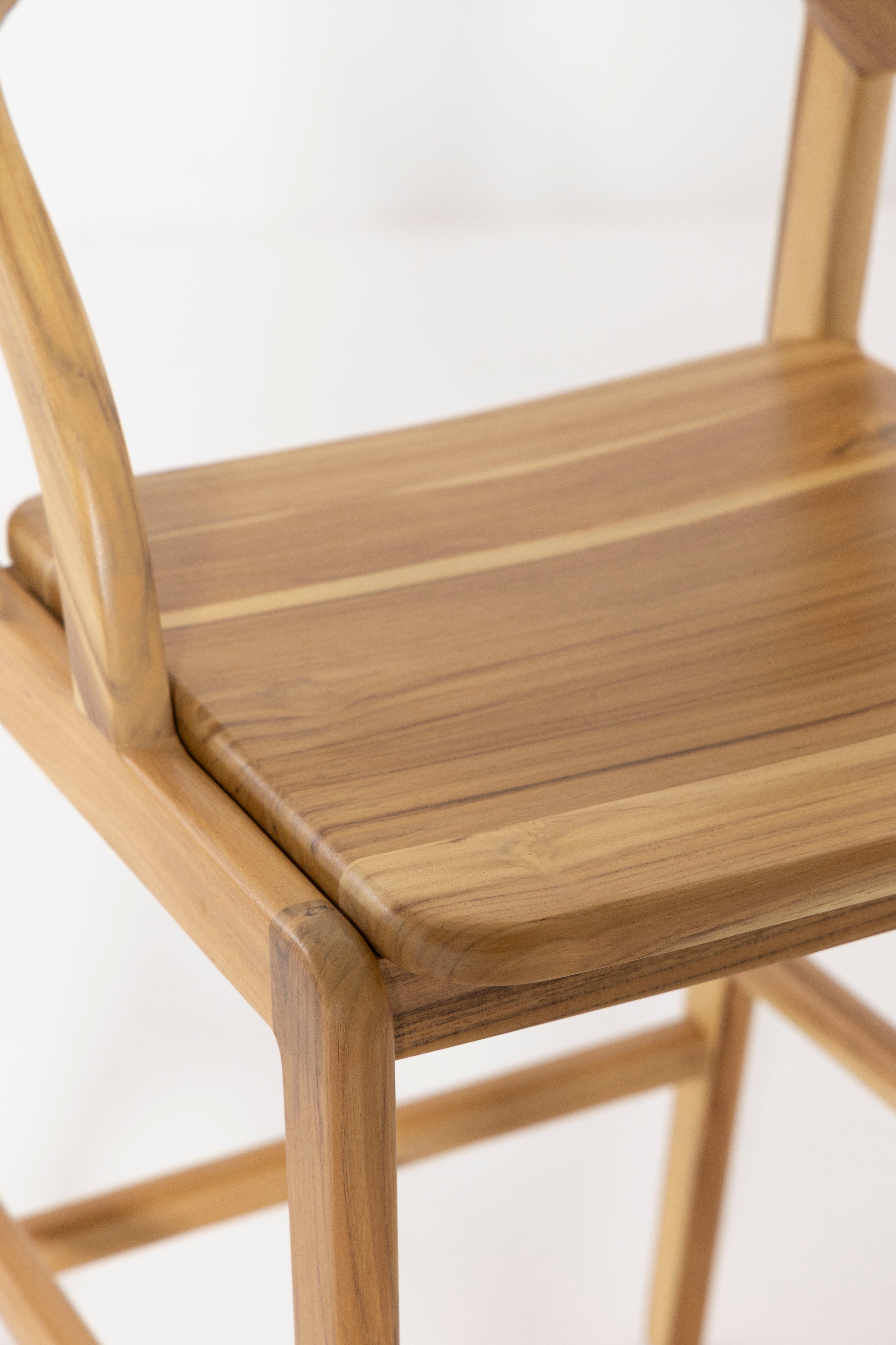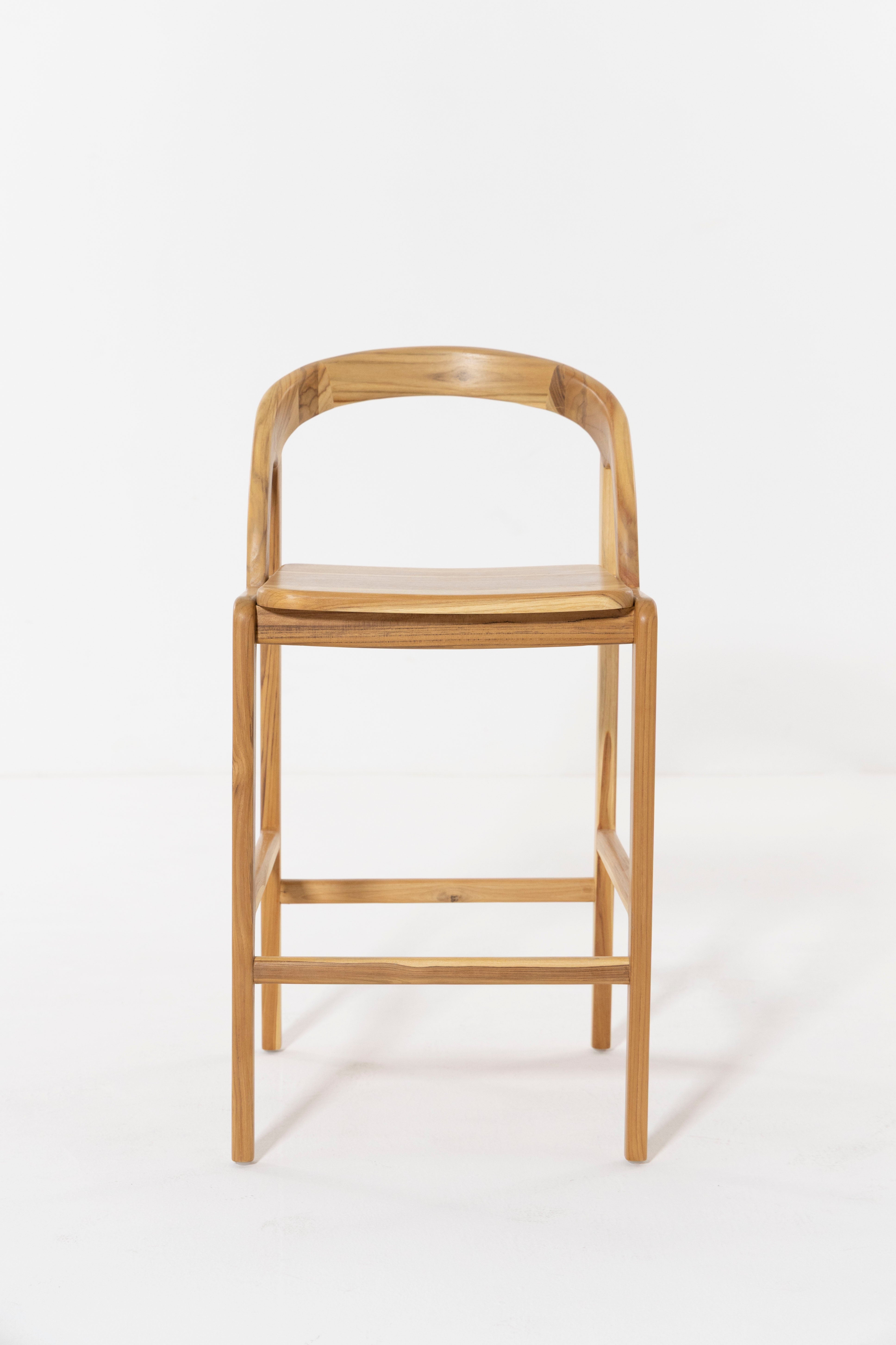 Crafted with a clean natural wood finish, this counter stool brings effortless warmth and artisanal charm to any space. The smooth curved backrest flows seamlessly into gently rounded arm supports, offering both comfort and sculptural appeal. Its sturdy solid wood frame and balanced proportions create a supportive seat ideal for kitchen counters, breakfast nooks, or casual bar areas. The woven seat adds texture and durability, while the light airy silhouette blends beautifully with modern, Scandinavian, and relaxed contemporary interiors. Designed for everyday ease, it delivers style, comfort, and lasting craftsmanship in one inviting piece.