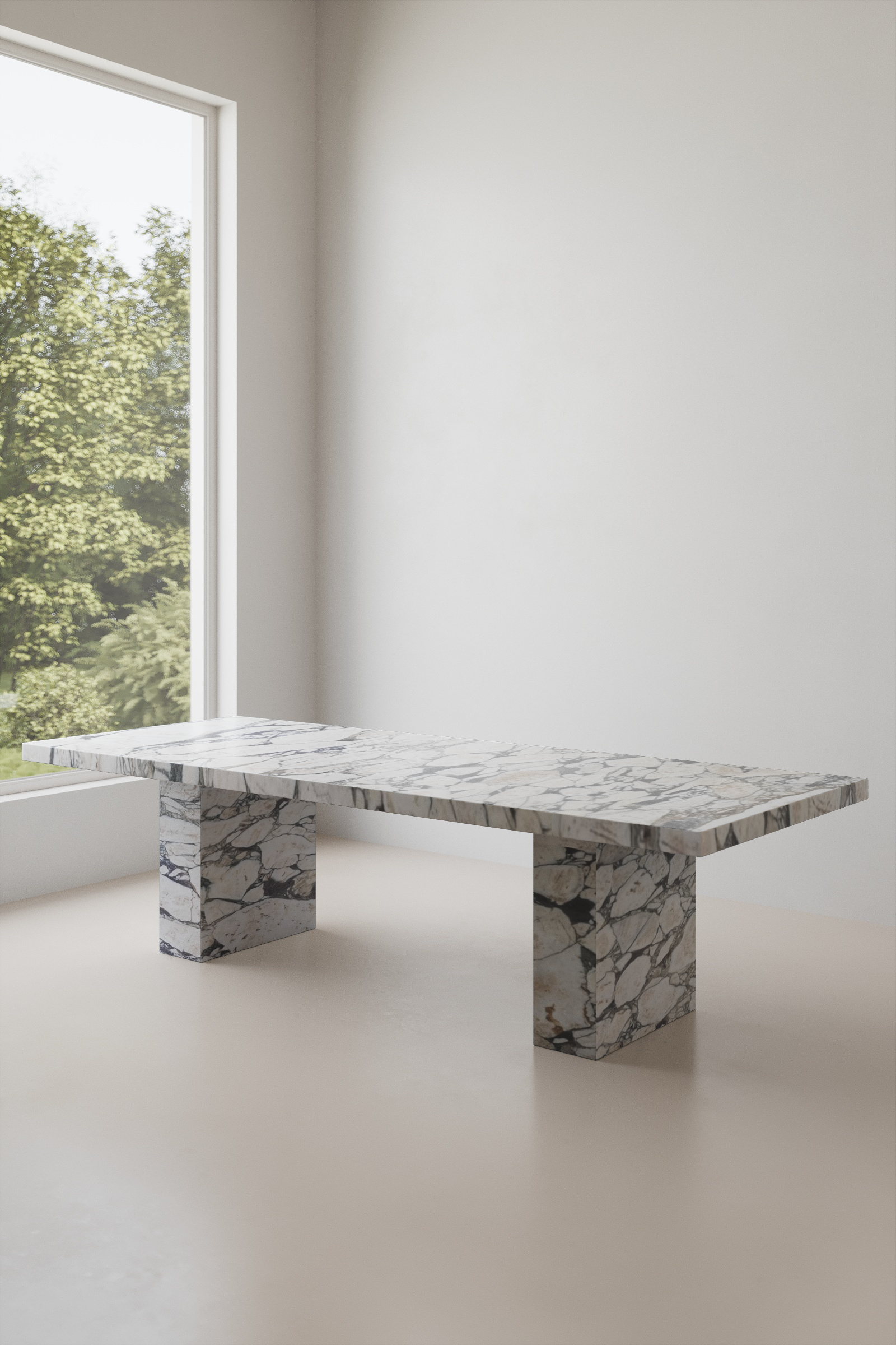 Transform your dining space with a statement of luxury and craftsmanship. This marble dining table becomes the heart of your gatherings, its bold rectangular top showcasing striking natural veining that makes every meal feel special. The sturdy block legs provide both balance and sculptural elegance, while the polished stone surface reflects your refined taste. Designed for modern, minimalist, and contemporary interiors, this table invites conversation, style, and lasting quality into your home.