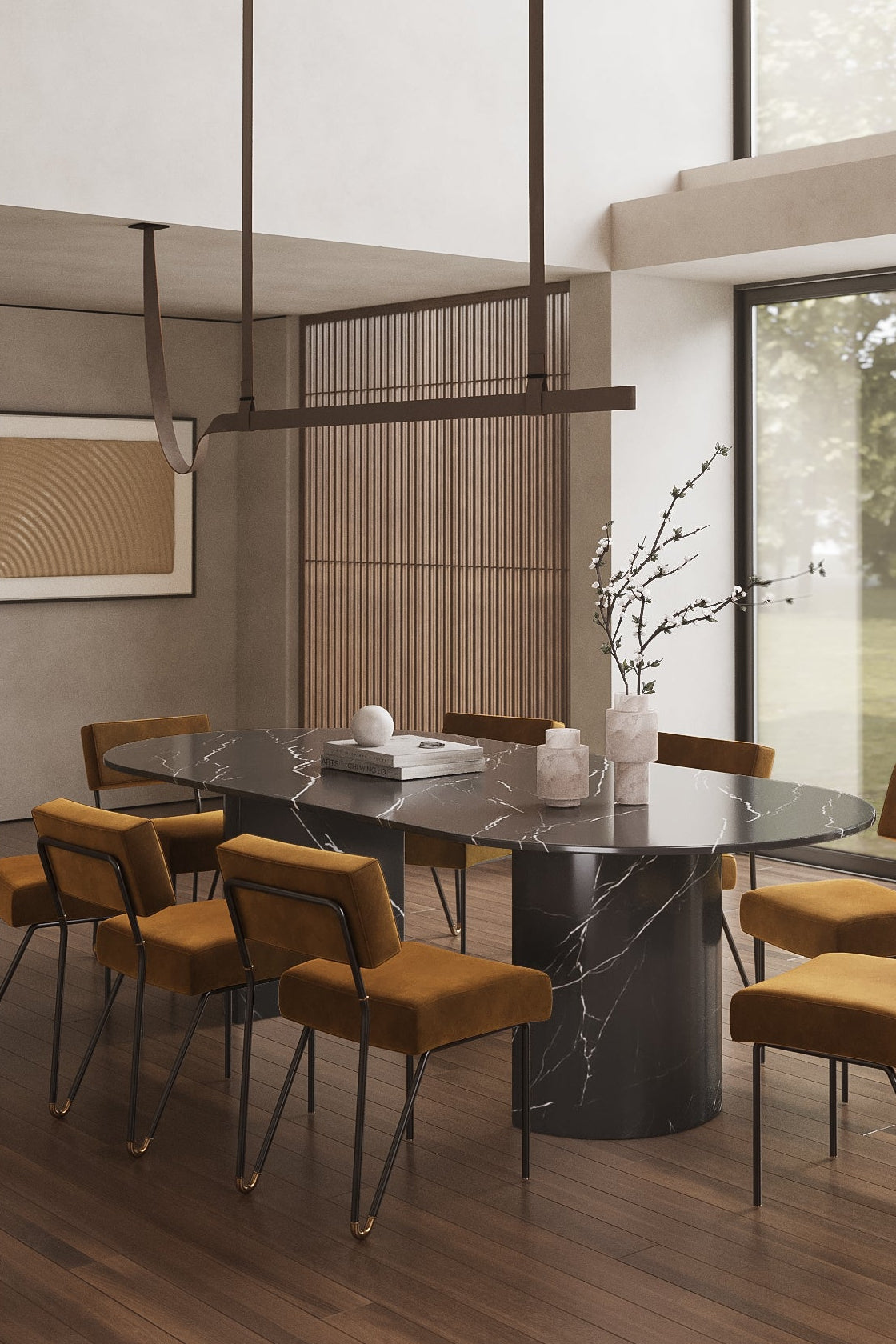Dakota Black Marquina Dining Table with Half Moon Legs
