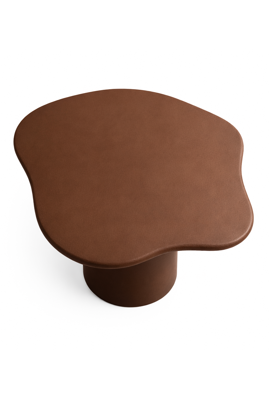 Add warmth and sculptural elegance to your dining space with an irregular top finished in mocha microconcrete, bringing earthy depth and quiet luxury to every gathering. The organic silhouette feels like a curated design piece, while the solid pedestal base grounds the look with modern balance and confident presence. Its matte, stone like texture pairs beautifully with creamy linens, warm woods, and tonal ceramics for a layered, inviting mood. Designed for everyday meals and elevated entertaining, it turns your indoor dining area into a refined retreat.