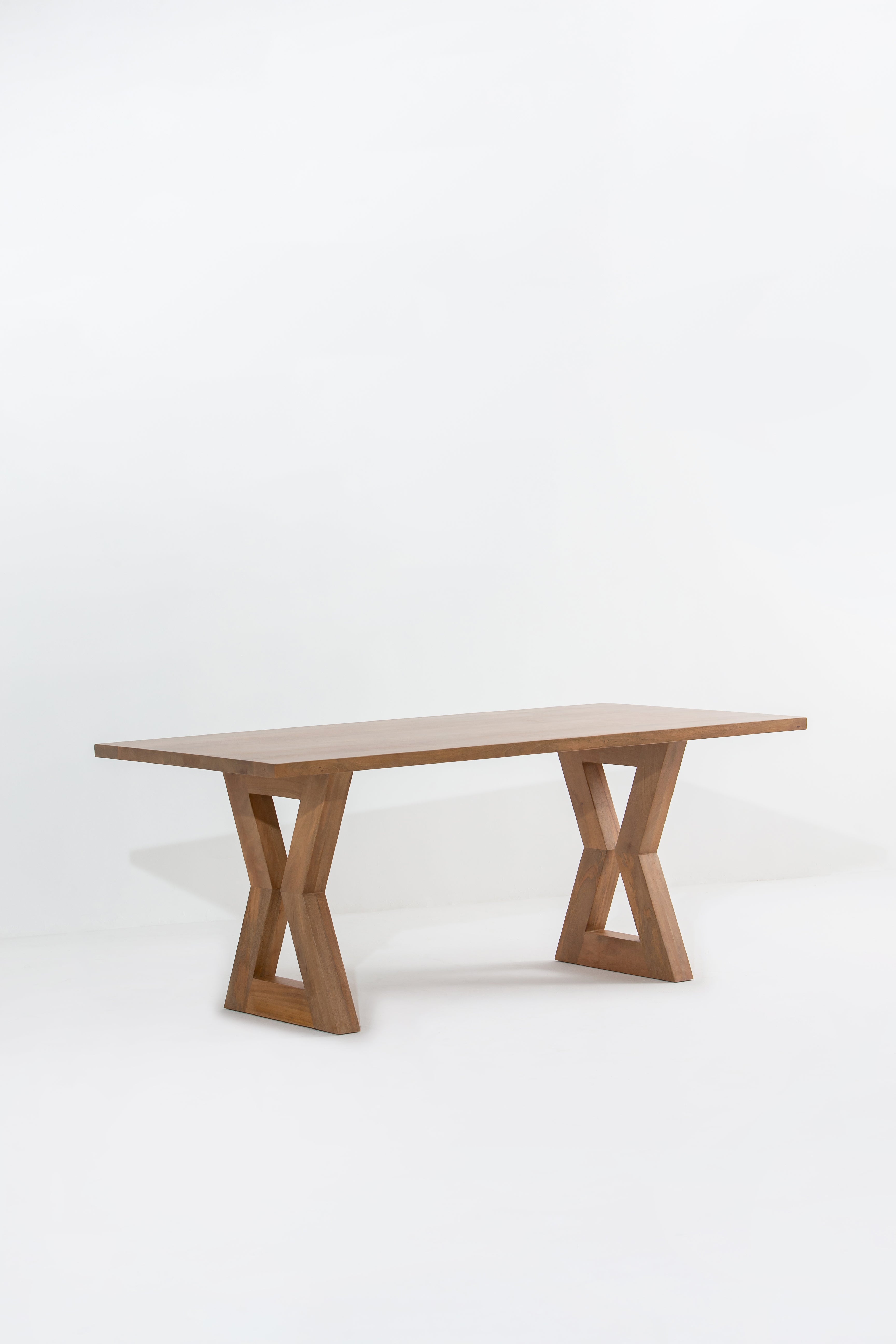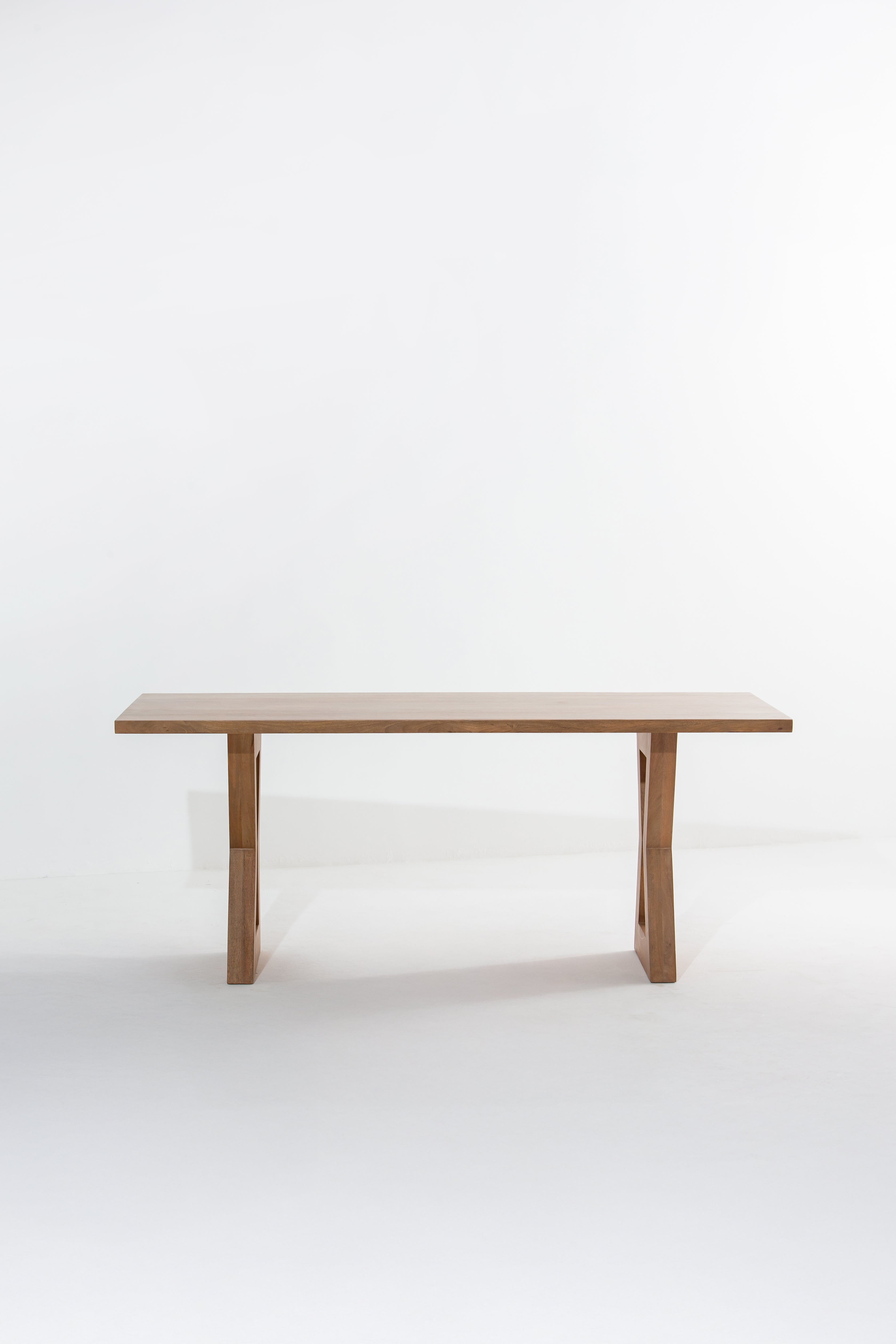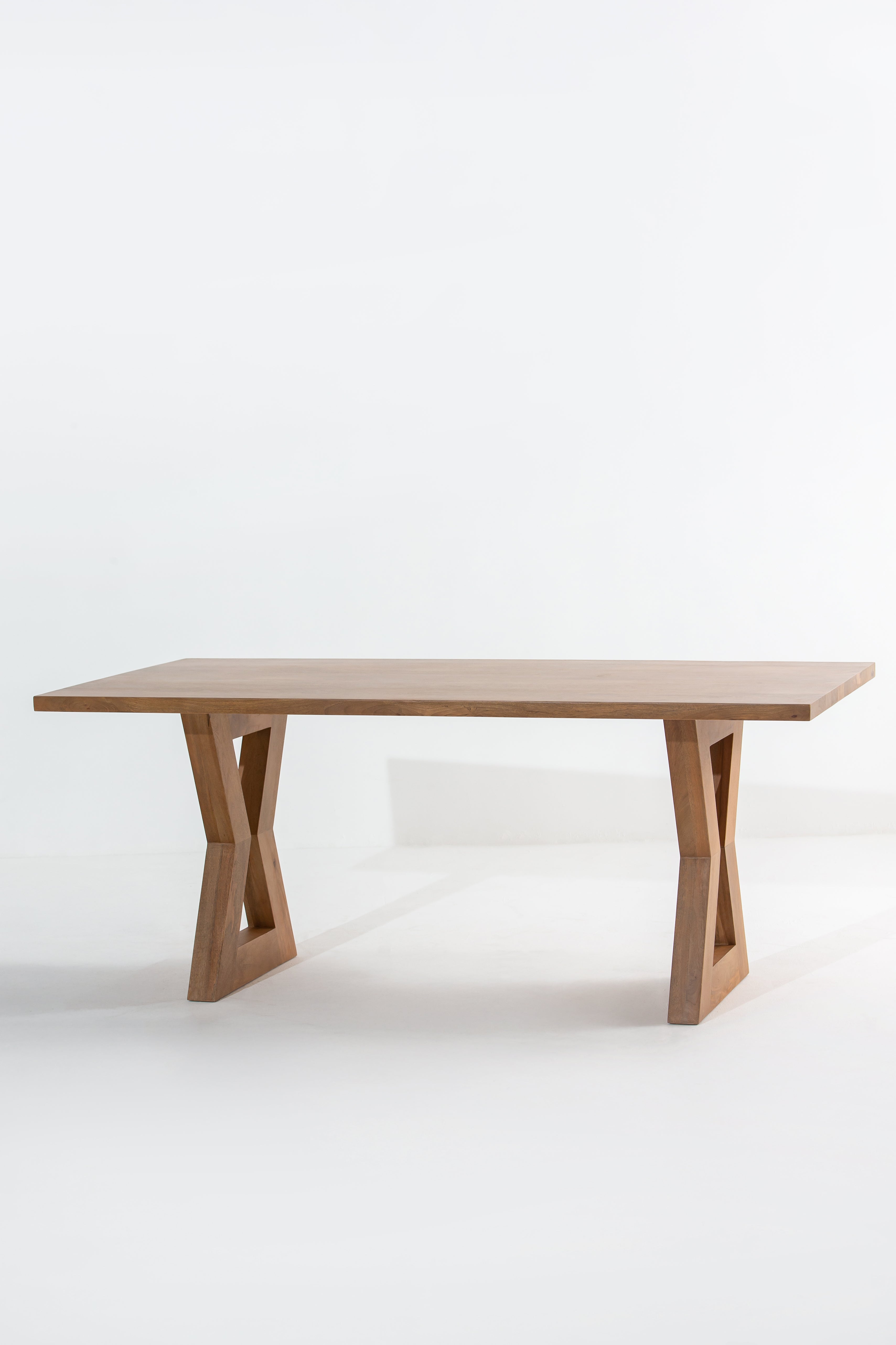 Bring natural beauty and architectural elegance into your dining area with this solid Mindi wood dining table, designed to be a lasting centerpiece for your home. The striking base delivers a sculptural and sturdy foundation, adding both character and balance to the minimalist rectangular top. Crafted from richly grained Mindi wood, its warm tone and smooth finish evoke a sense of rustic sophistication. Perfect for hosting everything from family dinners to festive gatherings, this table complements a variety of interior styles including farmhouse, Nordic, and transitional spaces. Durable, timeless, and visually captivating—this is a dining table made to impress and endure.