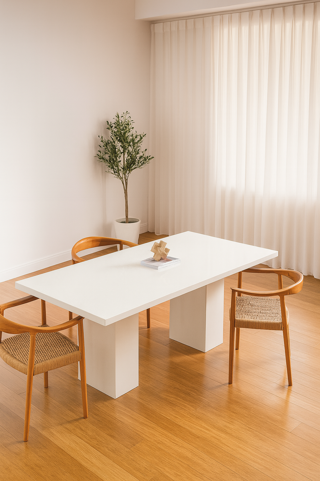 A refined fusion of modern minimalism and luminous elegance. Crafted from durable porcelain, its crisp white finish and polished surface reflect light with a subtle sheen, instantly brightening any contemporary interior. The sleek rectangular top is supported by bold block legs, combining sculptural beauty with solid stability. Whether hosting elegant dinners or casual gatherings, Solare delivers a clean, sophisticated aesthetic that transforms everyday dining into a serene and stylish experience.