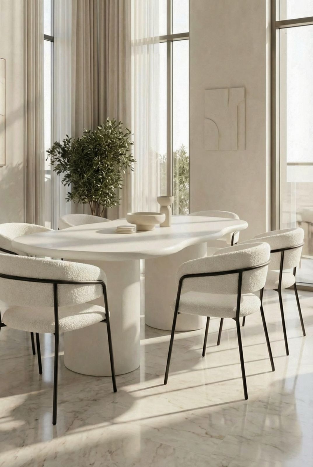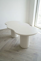 A minimalist statement piece, finished in smooth light beige microconcrete that brings soft warmth and modern elegance to your space. Its sculptural irregular top adds an artful, organic touch, while the sturdy rounded legs create a grounded presence with refined simplicity. The clean, seamless surface blends effortlessly into contemporary, minimalist, and neutral interiors, offering an inviting setting for everyday meals and elevated entertaining. Designed for those who appreciate quiet luxury, it transforms dining into a calm, curated ritual of style and ease.