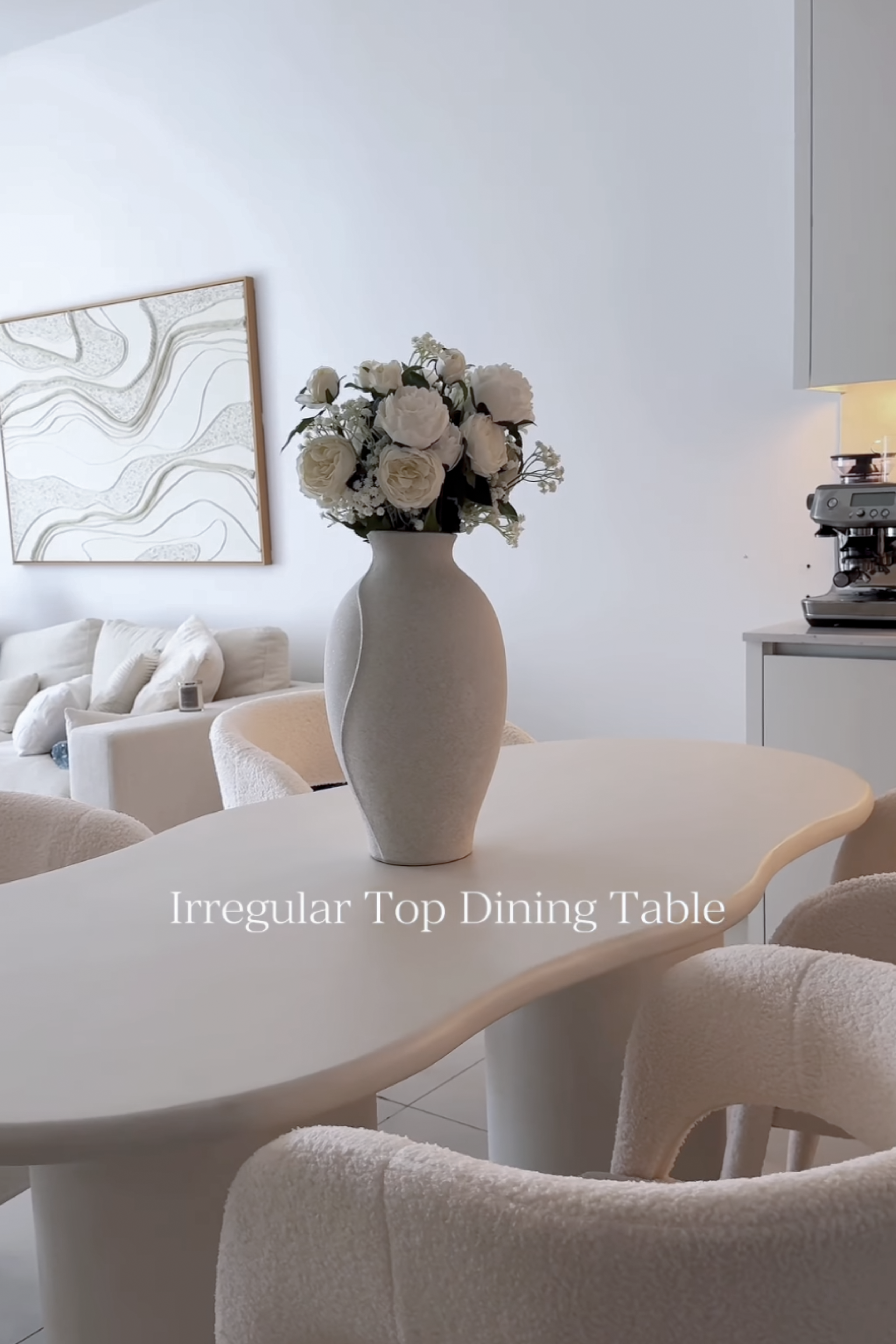 Tereza Off White Microconcrete Irregular Top Dining Table