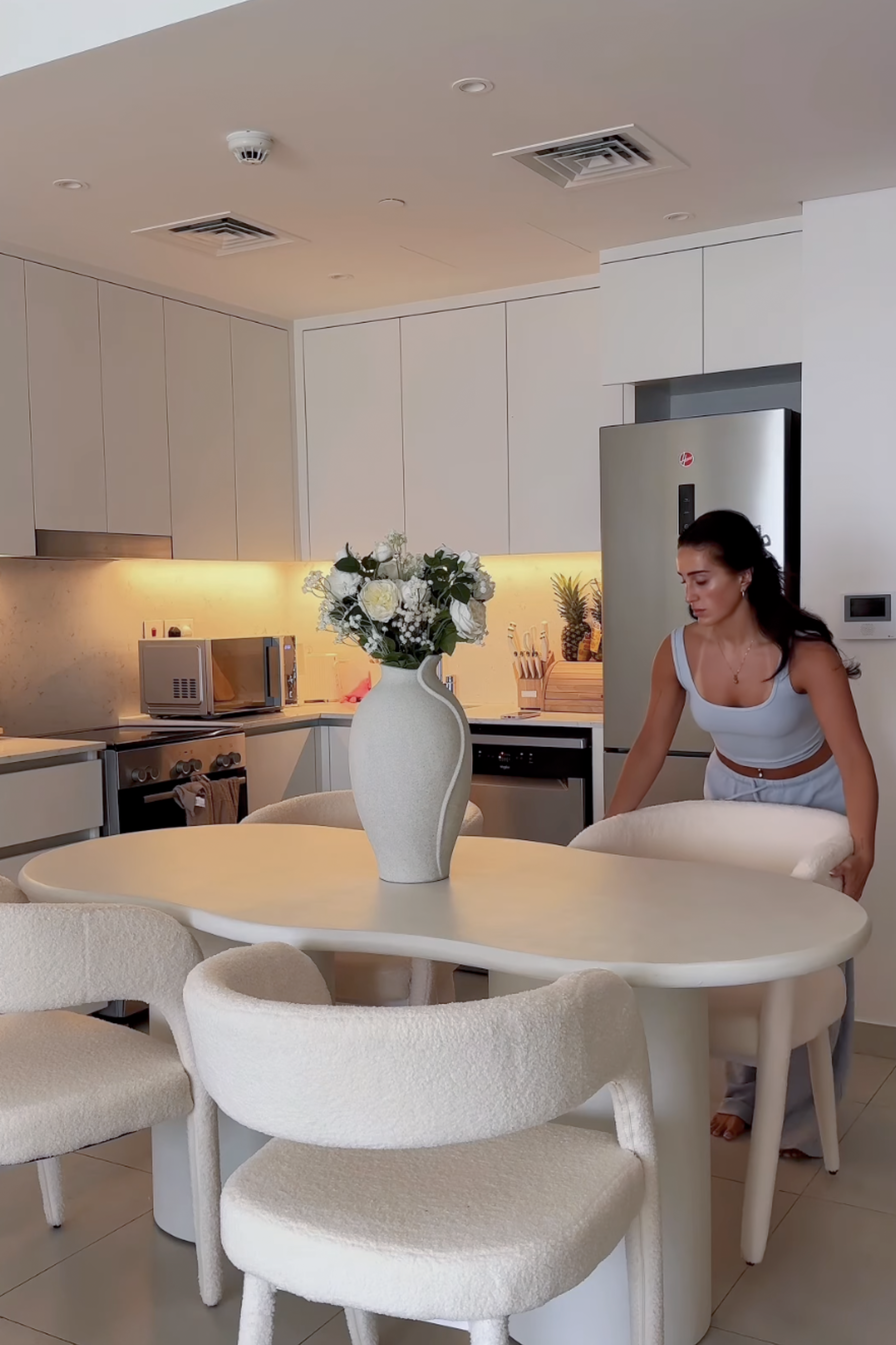 This dining table is a minimalist masterpiece, coated in a micro-concrete finish that exudes contemporary elegance. The soft, neutral hue complements any modern interior, while the robust, rounded legs provide both stability and a touch of sculptural artistry. Designed to blend seamlessly with any decor, its sleek surface offers a refined space for dining and entertaining. Ideal for those who appreciate clean lines and understated luxury, this table is more than just furniture, it's a statement of sophisticated simplicity.