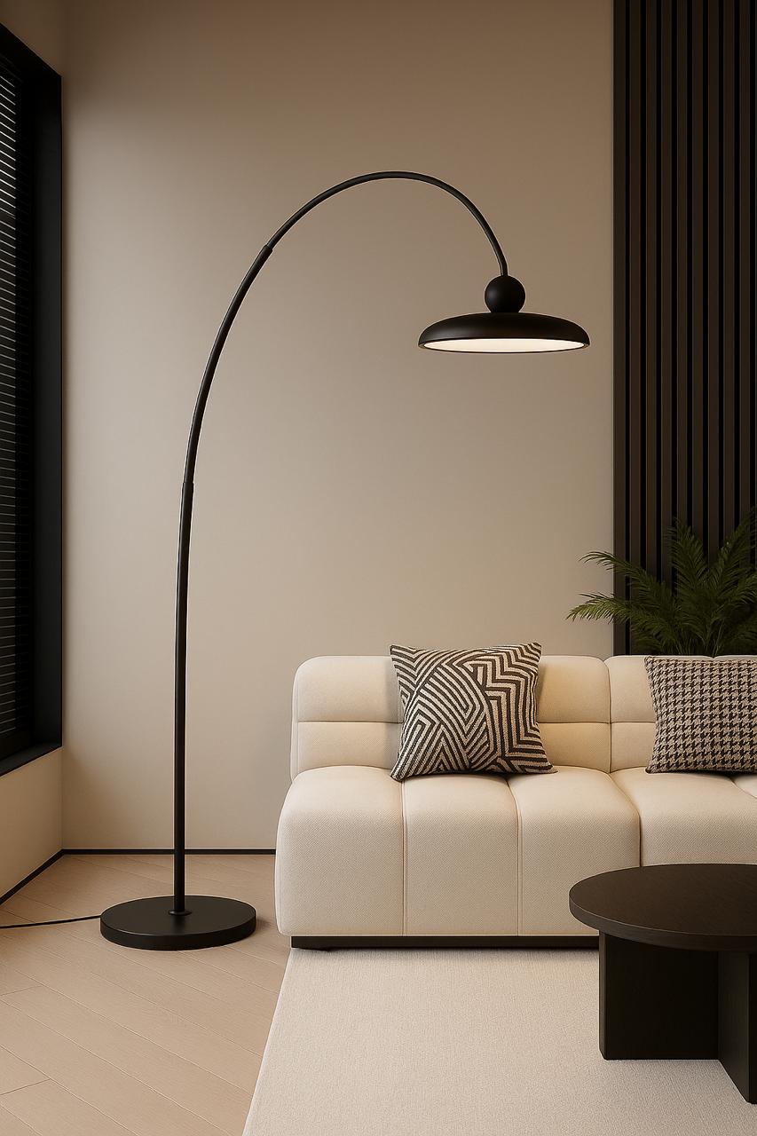 Make your space the epitome of modern elegance with this Black Floor Lamp. Its striking, minimalist design features a graceful, sweeping arch that effortlessly extends over your sofa or reading chair, making you the protagonist of your own beautifully lit scene. The smooth, matte black metal finish and the perfectly balanced round shade bring a touch of sophisticated texture and clean, sculptural shape to your living room. This modern, black arc floor lamp provides focused light exactly where you need it, transforming any corner into a stylish and functional sanctuary.