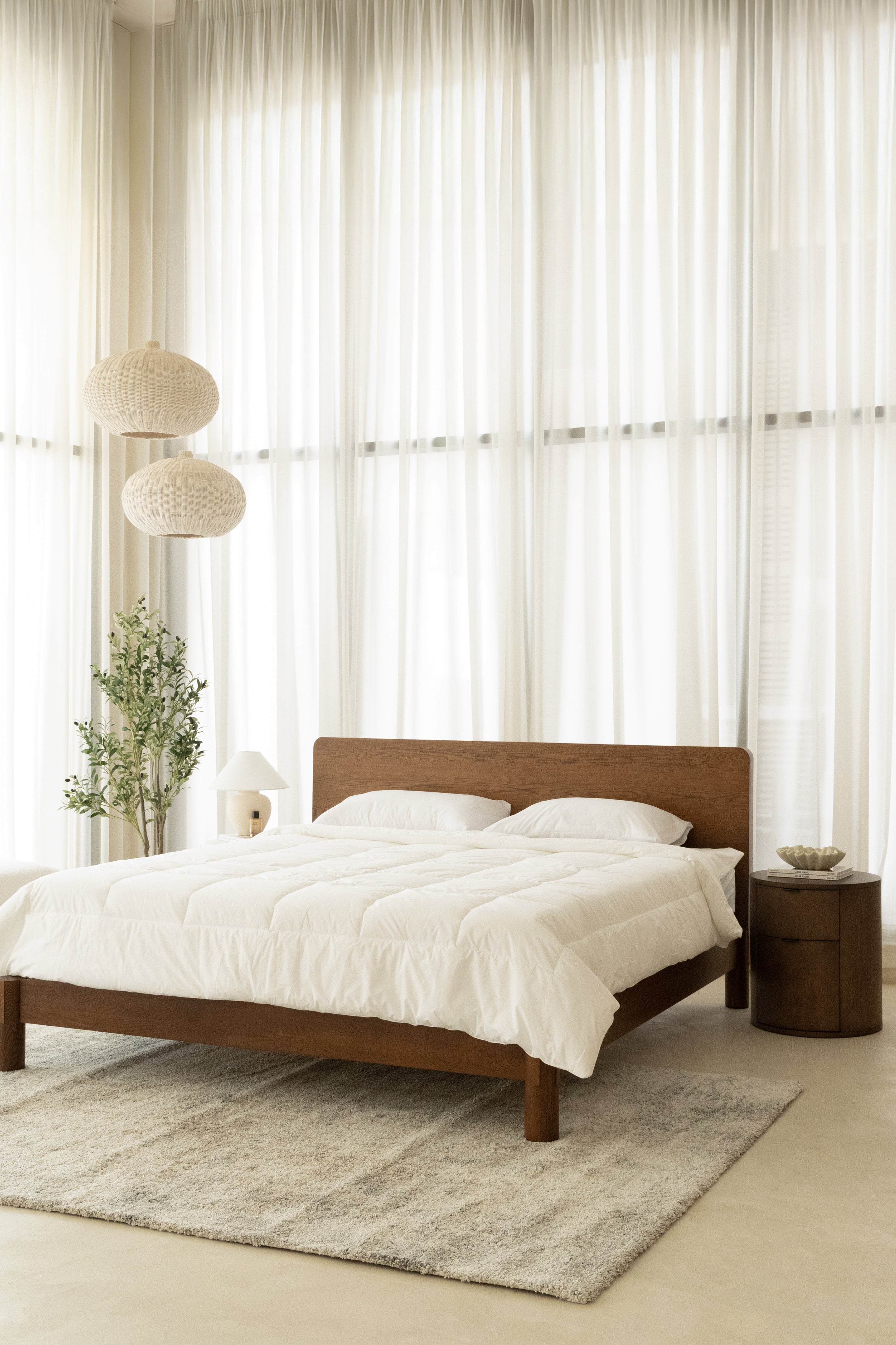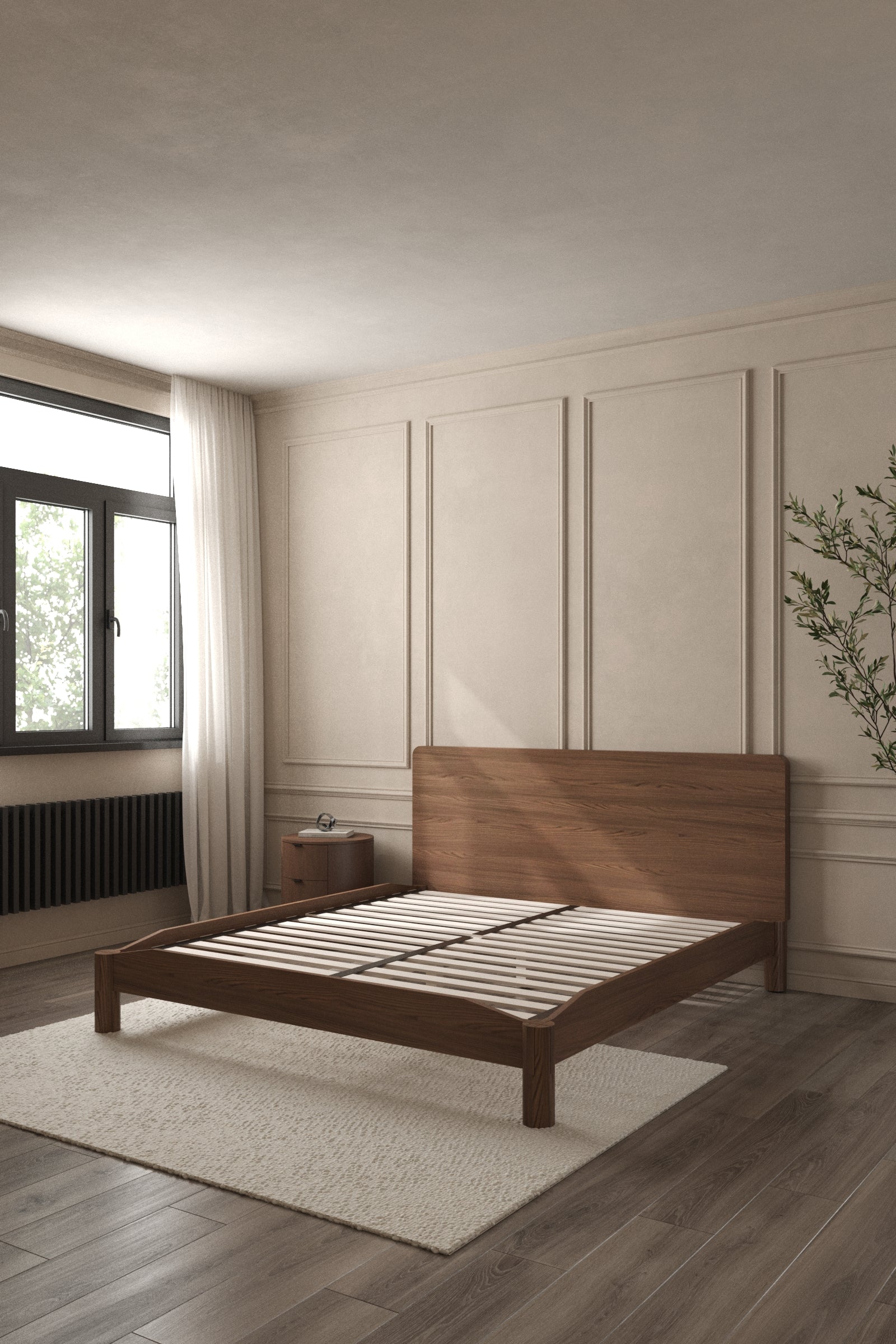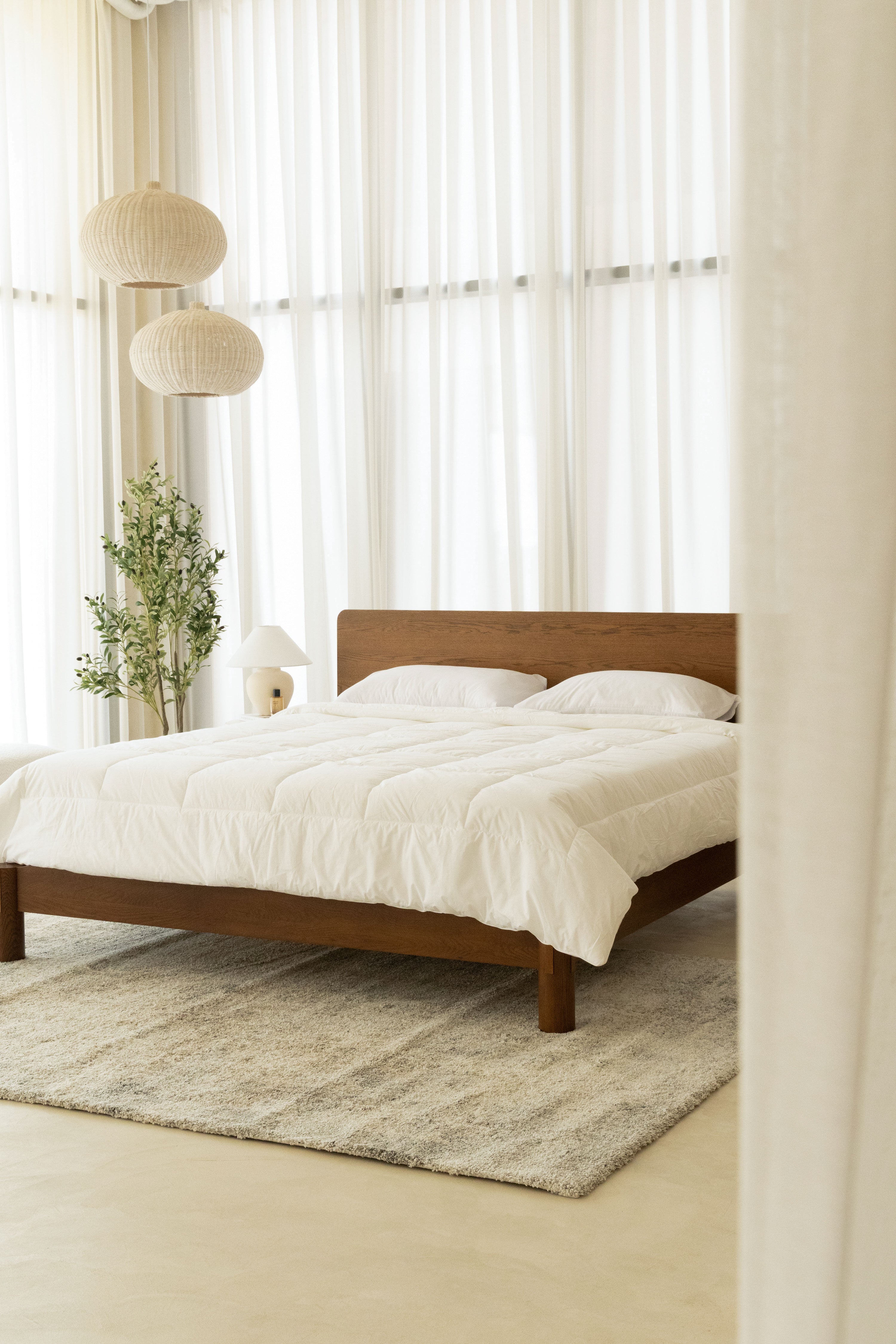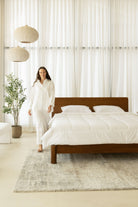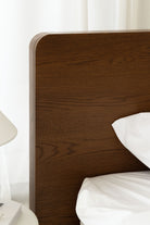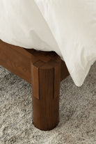 Crafted with precision and timeless elegance, this minimalist wooden bed frame showcases refined Japanese joinery that blends strength with beauty. The rich dark wood finish highlights its natural grain, adding warmth and sophistication to any bedroom. With a sleek silhouette, sturdy slatted base, and seamless edges, it offers both durability and modern comfort. Styled with crisp white bedding, soft textures, and neutral tones, you become the designer of a serene, balanced retreat where craftsmanship meets contemporary living.