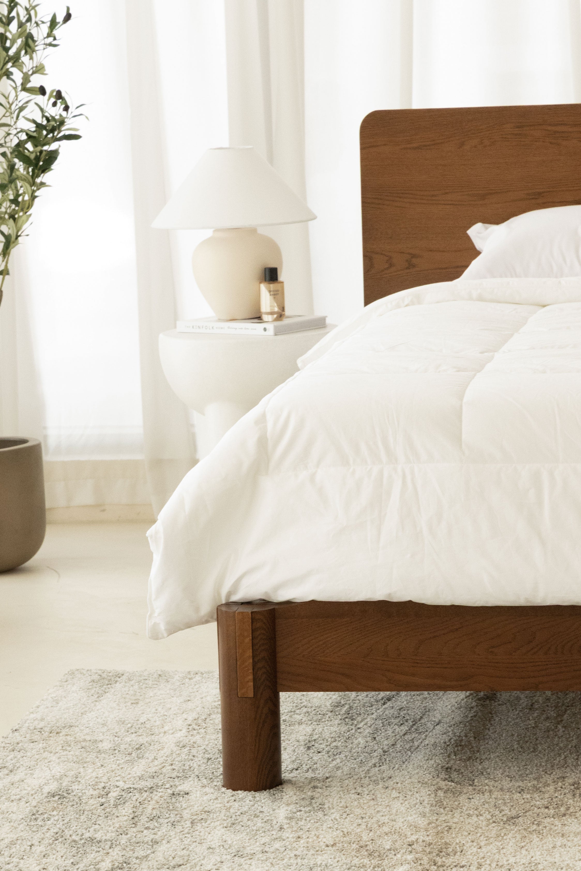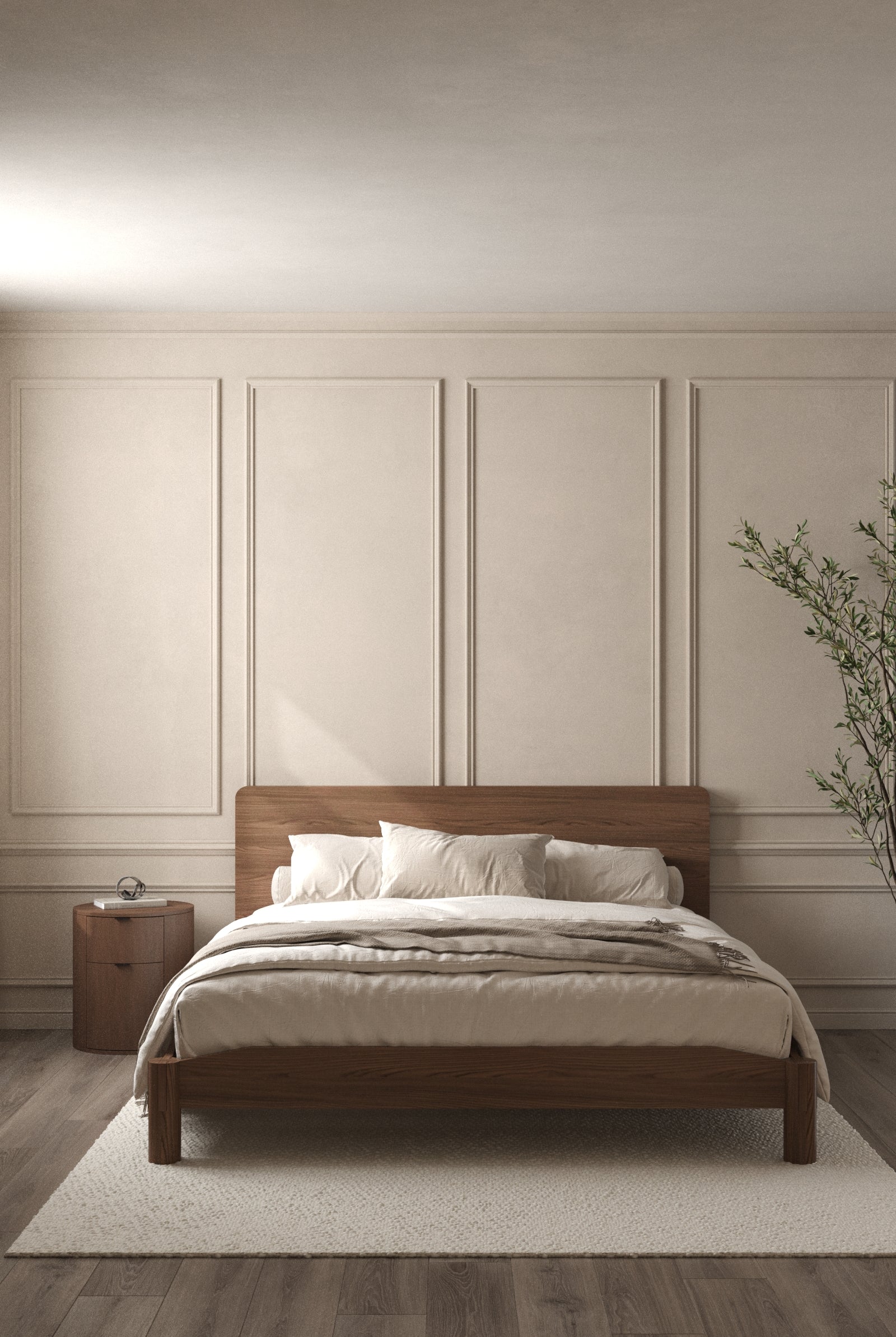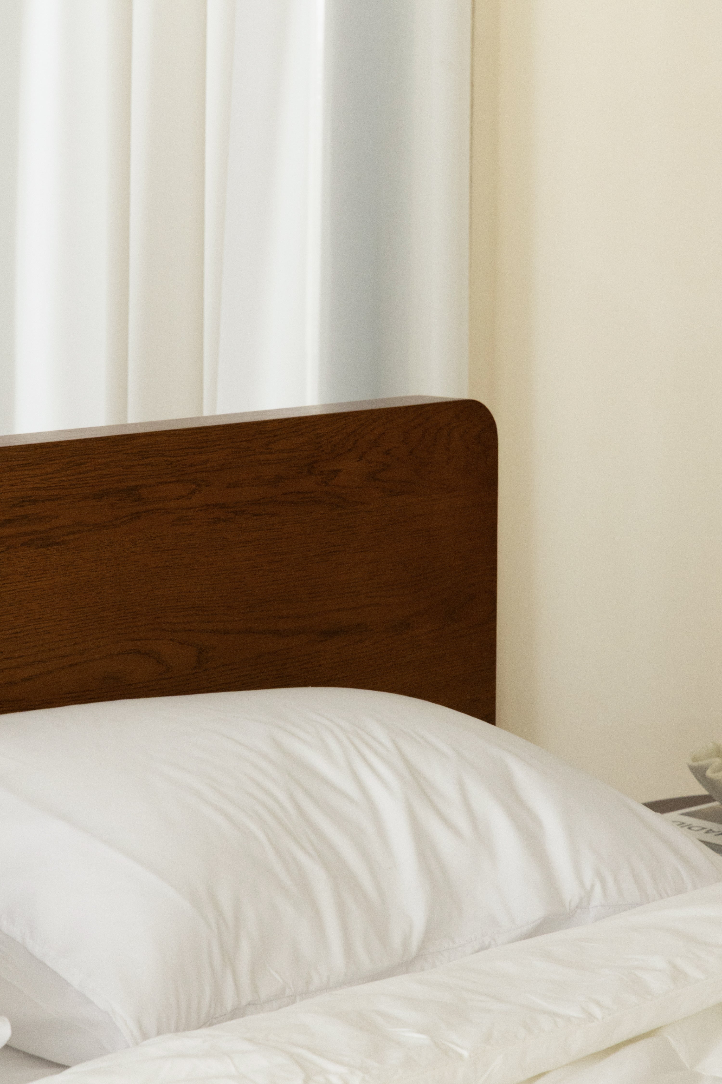 Crafted with precision and timeless elegance, this minimalist wooden bed frame showcases refined Japanese joinery that blends strength with beauty. The rich dark wood finish highlights its natural grain, adding warmth and sophistication to any bedroom. With a sleek silhouette, sturdy slatted base, and seamless edges, it offers both durability and modern comfort. Styled with crisp white bedding, soft textures, and neutral tones, you become the designer of a serene, balanced retreat where craftsmanship meets contemporary living.
