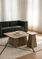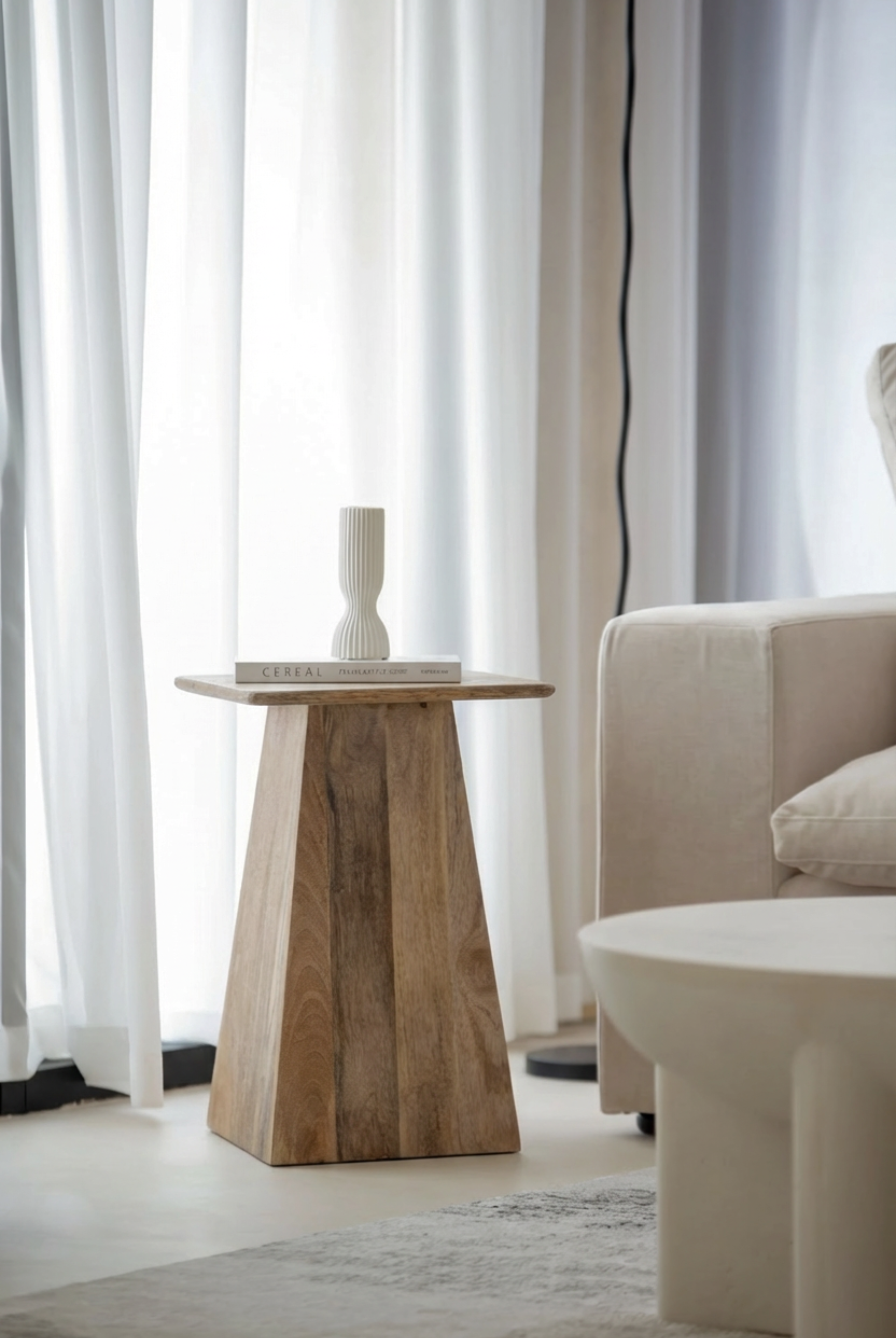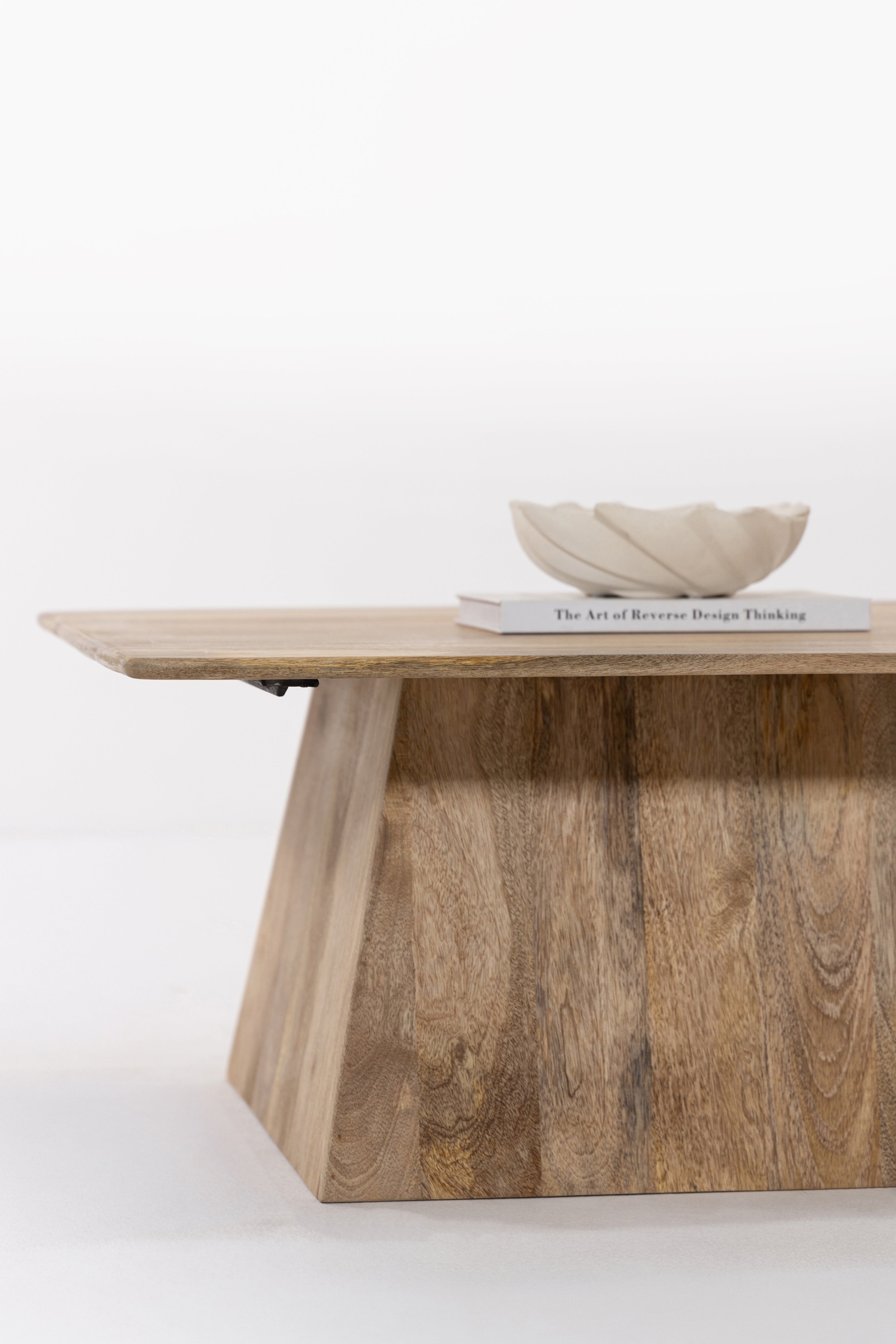 Designed as a versatile centerpiece for modern living, this center coffee table is crafted from solid mango wood and defined by a bold, sculptural form that brings warmth and presence to your space. The expansive tabletop rests on a strong pedestal base, showcasing natural grain variation that makes each piece feel unique and grounded. Balanced and substantial yet visually clean, it works effortlessly as both a coffee table and a central anchor for seating areas. Thoughtfully made for everyday use, it adds timeless character and refined simplicity to interiors that value natural materials and functional design.